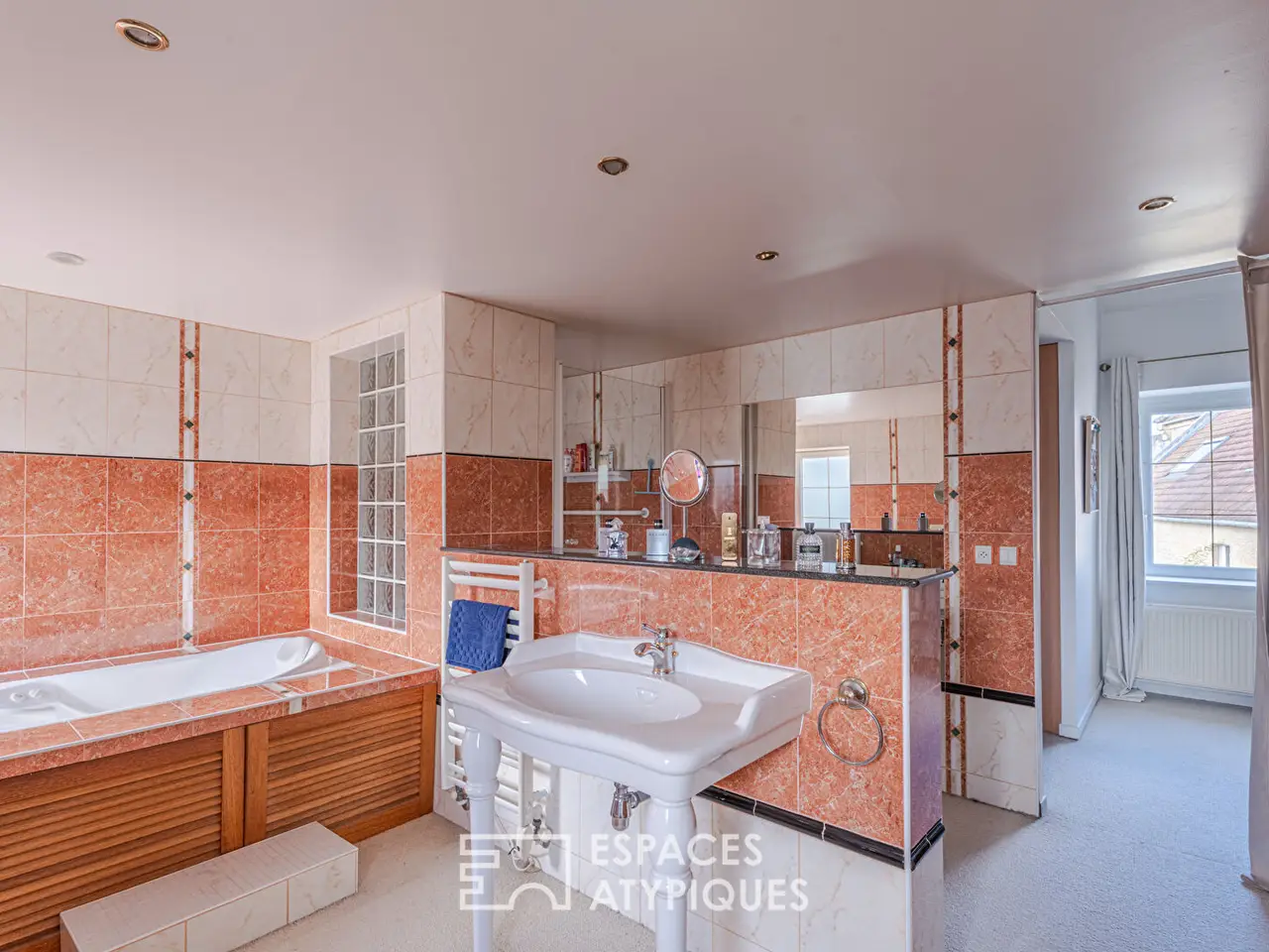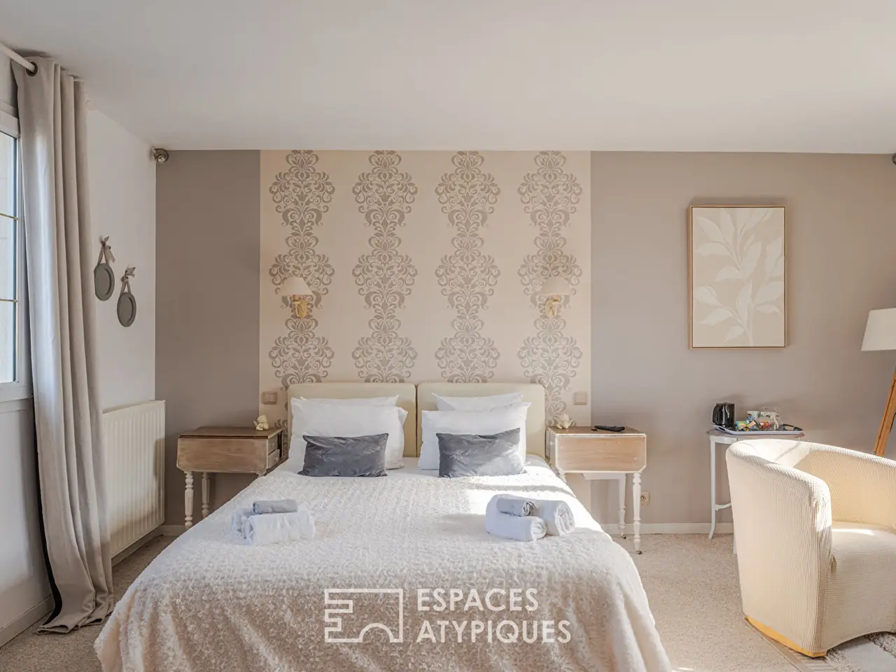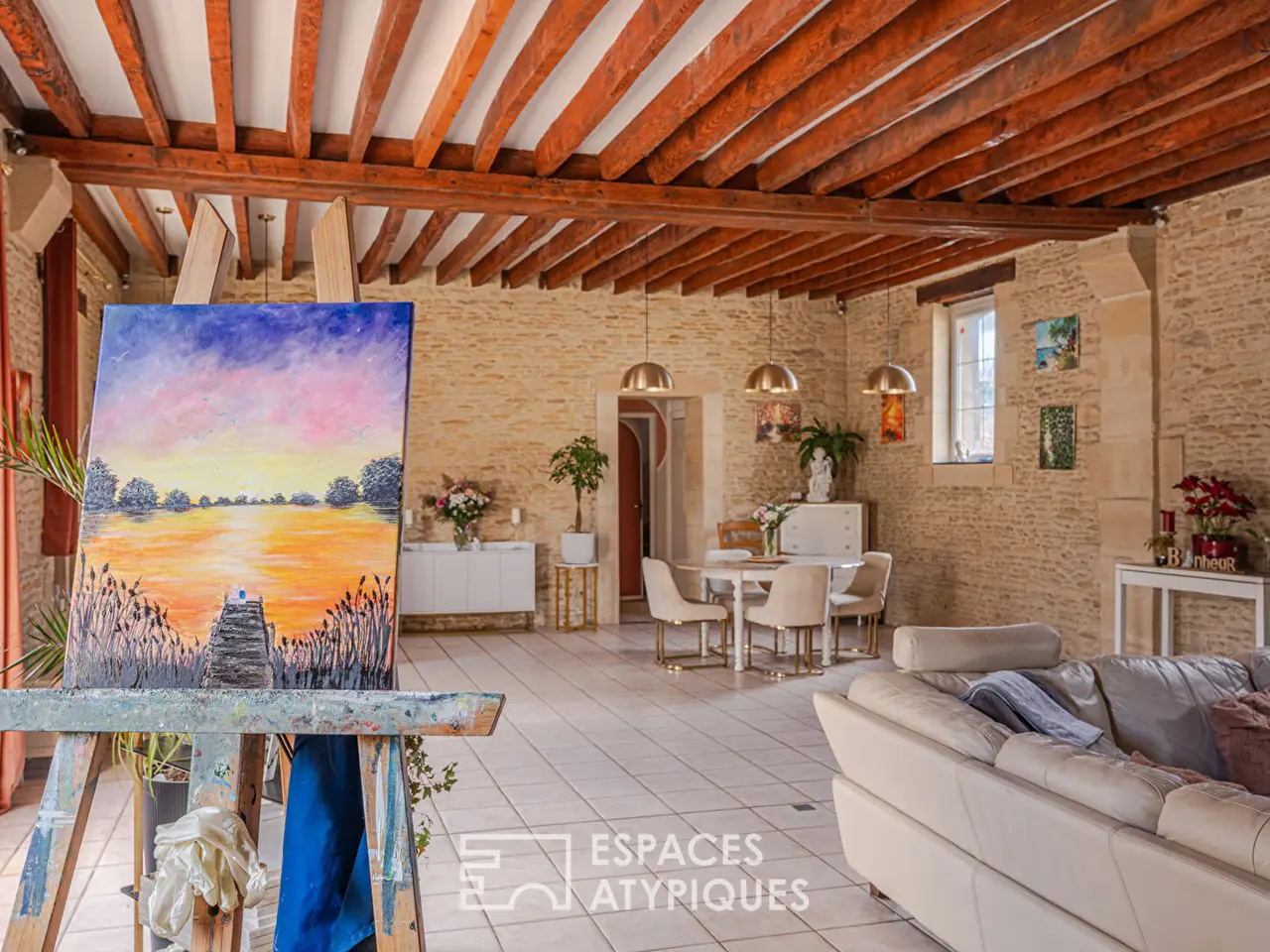 Located in the heart of a village in a popular town in Caen Nord, this renovated former inn of approximately 650 sqm (530 sqm of living space), housing a main residential house on one side and a bed and breakfast business on the other, is a real favorite! The main residence of approximately 350 sqm mixing old and modern charm is composed of a majestic living room of 82 sqm where the old stables were once located. The exposed beams, the very high ceilings and the open fireplace give a unique aesthetic to the place. This private space, quite distinct from the commercial part, accommodates three spacious bedrooms ranging from 20 sqm to 35 sqm, three bathrooms, a back kitchen and a laundry room / linen room. It is possible to reach the upper floor by a spiral staircase or an elevator. The guest room area of approximately 336 sqm is composed of a 45 sqm dining room / living room, a separate kitchen so that guests can prepare breakfast. This floor also houses a family room ideally located for waiting, next to the main entrance. Upstairs, a long corridor distributes the seven sumptuous living spaces ranging from the 22 sqm bedroom to the 70 sqm loft nestled under the eaves! The ideal location of this accommodation, halfway between Caen and the landing beaches, and the quality of the services of this mixed real estate complex make this place a unique place allowing to combine personal and professional life with fluidity. The two wings enjoy a bucolic garden, a courtyard and parking spaces combined under a carport. The mastered combination of artisanal know-how (Caen stone and original farms) and high-end services make this place an immaculate and peaceful setting. Distances: Caen city center: 15/20 minutes Cote de Nacre beaches: 10/15 minutes ENERGY CLASS: D / CLIMATE CLASS: D Estimated average amount of annual energy expenditure for standard use, established from energy prices on January 1, 2021 between: 6,750 euros and 9,200 euros. Information on the risks to which this property is exposed is available on the Georisques website: www.georisques.gouv.fr Contact: Severine ANGLIO, Independent sales agent 06.73.55.34.05 EI RSAC: 849 299 722 RCS NanterreREF. 9689Additional information* 15 rooms* 10 bedrooms* 9 bathrooms* Outdoor space : 775 SQM* Parking : 5 parking spaces* Property tax : 2 600 €Energy Performance CertificatePrimary energy consumptiond : 176 kWh/m2.yearHigh performance housing*A*B*C*176kWh/m2.year48*kg CO2/m2.yearD*E*F*GExtremely poor housing performance* Of which greenhouse gas emissionsd : 48 kg CO2/m2.yearLow CO2 emissions*A*B*C*48kg CO2/m2.yearD*E*F*GVery high CO2 emissionsEstimated average annual energy costs for standard use, indexed to specific years 2021, 2022, 2023 : between 6750 € and 9200 € Subscription IncludedAgency feesThe fees include VAT and are payable by the vendorMediatorMediation Franchise-Consommateurswww.mediation-franchise.com29 Boulevard de Courcelles 75008 ParisInformation on the risks to which this property is exposed is available on the Geohazards website : www.georisques.gouv.fr