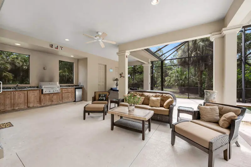Tucked behind private gates on a rare 5-acre parcel, this peaceful estate offers the space and freedom to enjoy everyday living with room to breathe. Designed for comfort and connection, the home opens up to a large screened lanai with an outdoor kitchen, pool, and plenty of spots to relax or entertain-whether you're hosting friends for dinner or just enjoying the quiet sounds of nature. Inside, the layout is thoughtful and spacious. Each guest room includes its own private bath and walk-in closet, giving everyone personal space and comfort. The game room, complete with a wet bar, adds a casual space for gathering or watching the game. Recent upgrades include impact glass on all upstairs windows and doors, a hurricane-safe room on the lanai, new water heater (Nov 2023), newer pool heater (2021), dual 5-ton HVAC units with regular service, Wi-Fi enabled gate opener (2021), and an outdoor fire suppression system. This is a property that feels tucked away, yet still practical and ready for real life. Whether you're looking for privacy, room for hobbies, or a place to welcome family and friends, this home offers a rare opportunity to own a slice of quiet Florida living.