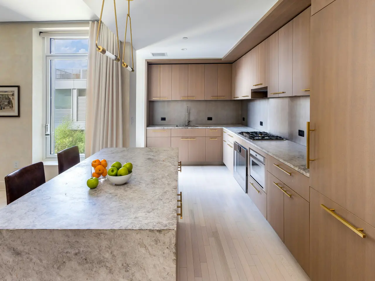 • Wide-plank whitewashed oak floors