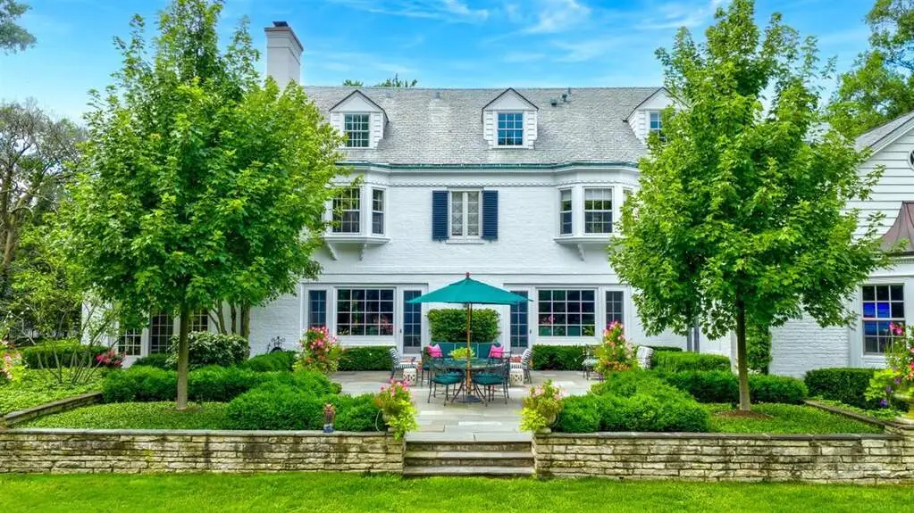 Reminiscent of the timeless white painted Colonial retreats off the East Coast of Hyannis Port, this Winnetka estate set on 1.4 acres of gracious grounds captures that same coastal charm right here in the North Shore. Set on premier Woodley Road with a beautiful natural canopy of mature trees, this 8 beds, 5.2-bath home seamlessly blends grand entertaining with casual living through a quintessential floor plan designed for modern day living. Elegance unfolds the moment you step into the grand reception foyer crowned by a cascading wrought-iron staircase serving as the gateway to the home's formal spaces. Sunlit living room, anchored by a stately FP and framed by floor-to-ceiling windows, flows effortlessly into a dreamy sunroom wrapped in grasscloth wallpaper-offering serene views of the lush backyard. Tucked off the solarium a richly paneled library with FP creating the ultimate private retreat. Elegant dining room with French doors opening to the expansive terraces sets the stage for seamless indoor-outdoor entertaining. At the heart of the home is the expansive Chef's kitchen, designed for both culinary excellence & effortless hosting. Chefs' kitchen with great space, custom cabinetry, island with breakfast bar seating, desk command center, top of the line appliances, separate breakfast area, and fully loaded butler's pantry with wine fridge, sink, and custom cabinetry. Off the kitchen, Ralph Lauren-inspired family room w/ warm chestnut paneling, FP, bay window, and French doors opening to the bluestone patio & new tasteful in-ground spa. Thoughtfully designed mudroom with custom cabinetry connects to the heated 3 car garage, perfectly positioned as a discreet backdoor drop zone. Gracious 2nd floor is anchored by the private primary suite wing-offering a serene sanctuary with a spacious bedroom, sitting room with FP, and currently set up as his-and-her baths with an additional den (or bedroom). 3 additional ensuite bedrooms on this level, one tucked away on the north wing with a light-filled art studio. Fully equipped 2nd floor laundry also on this level. Third floor with soaring ceilings, large rec space, and three oversized bedrooms with a full bath offer endless possibilities. The lower level provides even more versatility, with a spacious rec room/gym, custom wine cellar, and ample storage. From inside to out, 5 Woodley is an all American classic that always continues to only get better with time. This is a phenomenal opportunity to take this graceful & solidly built home to a new level of 2025 luxury.