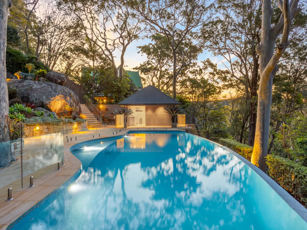 Set on an expansive 5,244sqm parcel, this architect-designed, four-bedroom masterpiece presides over breathtaking filtered views of Pittwater, framed by a boat-studded backdrop. Blending timeless elegance with refined craftsmanship and intricate detailing, it embraces a north-east aspect that enhances the natural beauty. An oversized sparkling infinity pool, cabana, grand sandstone wine cellar, refined study, and unique observation tower contribute to the sophistication of this extraordinary residence. Offering unparalleled luxury, it is set amidst natural splendour and enduring elegance. Superbly located moments to trendy seaside cafés, village shops, boutiques, golf courses, yacht clubs, schools, popular surf beaches and city buses. - Set on a 5,244sqm parcel, architect-designed masterpiece - Oversized infinity edge swimming pool with glass mosaic tiles - Enviable north-east aspect floods interiors with natural light - Impeccable attention to detail with premium quality finishes - Free-flowing layout with formal and informal living areas - Dual wings offers peace and privacy, perfect for hosting guests - Gourmet Leicht kitchen with quality Miele appliances - Calacatta marble bench tops, integrated utilities, butler's pantry - Grand Master suite with intimate boat-studded balcony - Four bedrooms with views and built-ins, two with ensuites - Bathrooms with underfloor heating, heated towel rails, spa bath - Fully ducted heat/ac complimented by two French open fireplaces - Multiple alfresco entertaining areas amidst natural surrounds - Tallowood flooring, travertine tiles, exotic hardwood built-ins - Integral chilled sandstone wine cellar, sonos surround sound system - Exquisitely manicured landscaped gardens, irrigation system - Automatic gate, secure alarm system, pool house, serene pond - Four car garage with option for eight off street additional spaces - Moments to village shops, boutiques, schools, and surf beaches Disclaimer: Whilst all care has been taken to ensure accuracy in the preparation of the particulars herein, no warranty can be given, and interested parties must rely on their own enquiries.