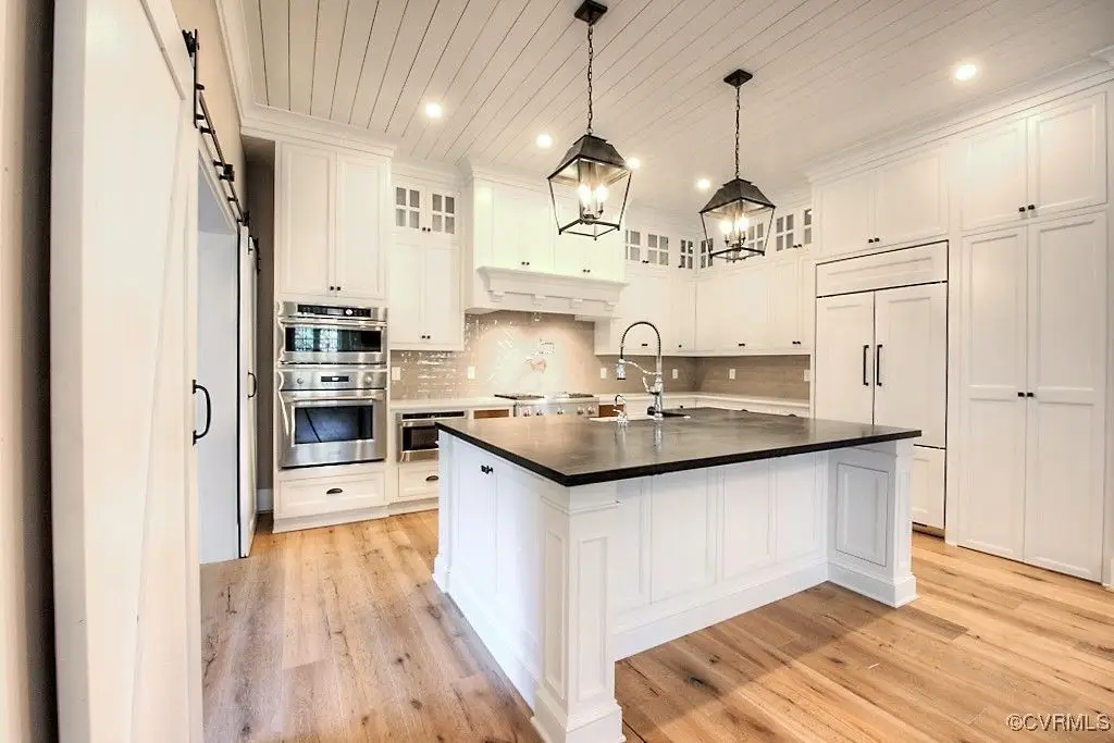Chef's kitchen with quartz tops and stainless appliances