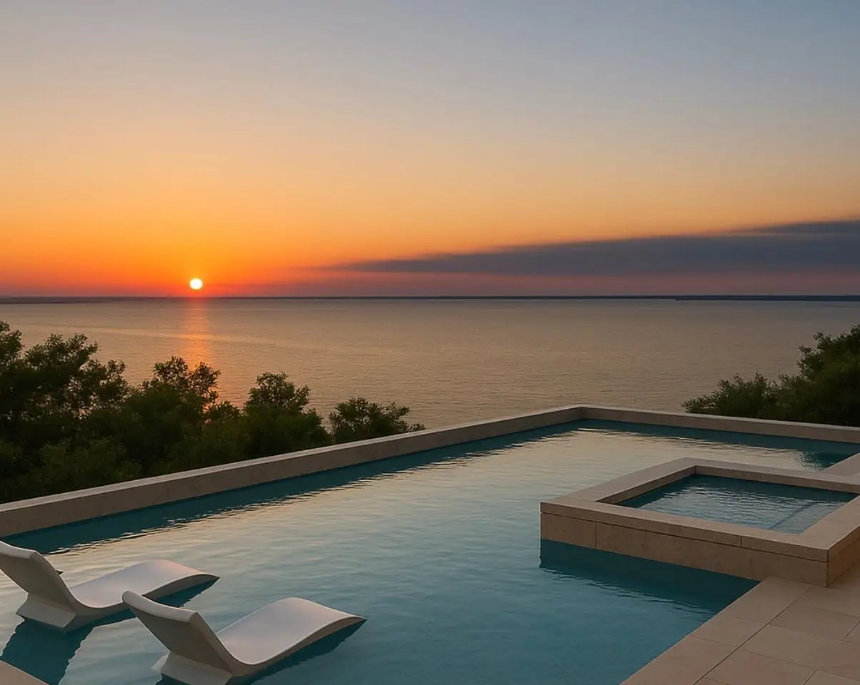 Privacy, Luxury, Proximity and Endless Lake Views! Welcome to a rare opportunity to own lakefront property on Eagle Mountain Lake. This exquisite 2.43-acre estate boasts a stunning 6,343sf luxury home, currently under construction, with impeccable attention to detail and premium custom features throughout. Designed by renowned architects Far + Dang, built by luxury home builder LR Fine Homes, interior design by Susan Semmelmann, with custom tile curation by Erin Adams Designs this estate promises to be a unique refuge upon completion. With the highest elevations and deepest waters of Eagle Mountain Lake, this house was designed with floor to ceiling windows for natural light, jaw dropping panoramic views and unlimited sunsets. For the true gourmet a kitchen with custom cabinetry, Subzero, Wolf and BlueStar appliances, custom wine case, wet bar and scullery. The spacious primary suite features a private patio, fireplace, coffee bar, large bathroom and custom closet. An indoor atrium ideal for growing herbs and enjoying morning sunrises. The property has an additional 1,200sf air conditioned garage providing ample space for vehicles, with a detached 360sf air conditioned building, perfect for an office or art studio. A newly constructed dock awaits, complete with a boat slip and two jet ski lifts. Over 2,000sf of outdoor deck space with a 40 long pool, tanning ledges and heated spa. Gated entry, solar power, with room for sports courts or helipad. Adjacent to the neighborhood is the 3,621-acre Fort Worth Nature Preserve. Downtown Fort Worth is only 14 miles and the Stockyards 11 miles, YeeHaw!