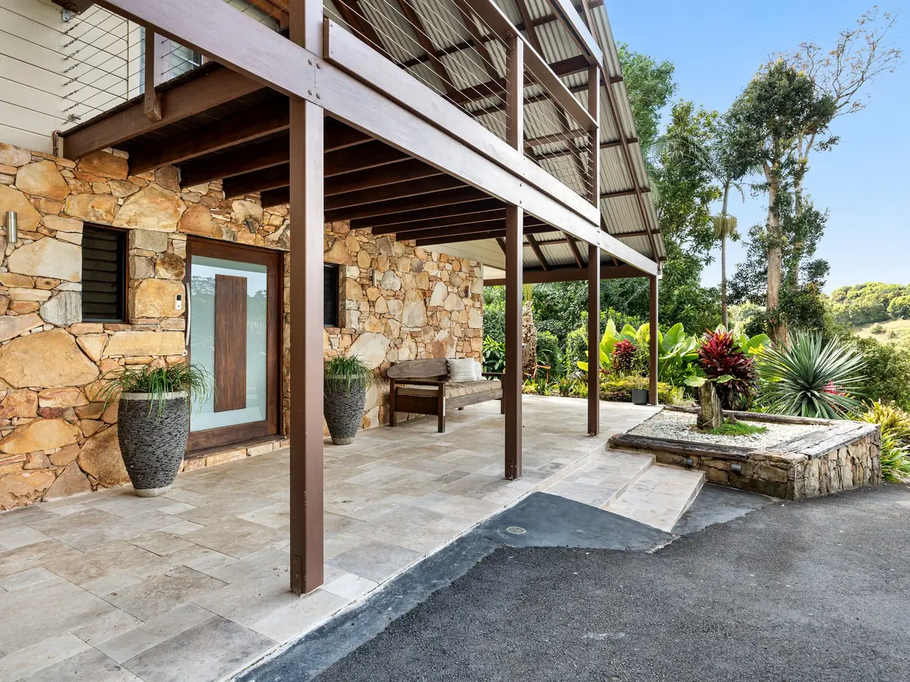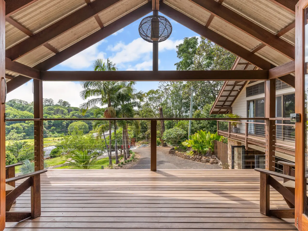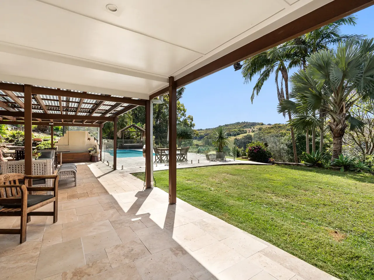Soaking in views of surrounding rolling hills while being a quick drive to the beach; this two hectare property offers the ultimate lifestyle, with the added bonus of being next door to the popular Teven Valley Golf Course. To the ground floor of the main house are the open-plan living, kitchen, and dining areas, along with three generous bedrooms, served by a large main bathroom. Meanwhile, the fourth bedroom/parents' retreat dwells on the first floor, complete with an ensuite, walk-in robe, study space, second living room, and private balcony. Situated next to the house, a second dwelling features an expansive workshop and a studio apartment upstairs, with its own kitchen, bathroom, water closet, and deck. Adding to its magic, scenic spots are granted all around, be it from the encompassing covered alfresco to the outdoor pool area and cabana. Sprawled amongst two hectares spoilt with panoramic hinterland views Positioned next door to the popular Teven Valley Golf Course Light and bright open-plan living, kitchen, and dining areas High ceilings, exposed beams, skylights, timber and glass doors Three generous bedrooms on ground-floor, all with built-in robes Upper parents' retreat with ensuite, walk-in, study/living space, and deck Large modern main bathroom with bathtub, separate water closet Second dwelling with an extensive workshop plus studio apartment Wrap-around alfresco and pool area with sweeping hinterland views15-minute drive to Lennox Head and 20-minutes to Byron Bay
