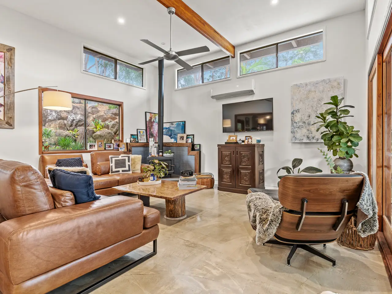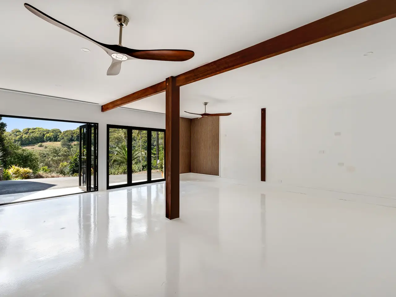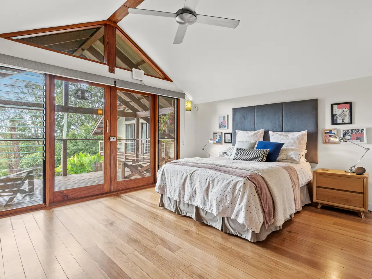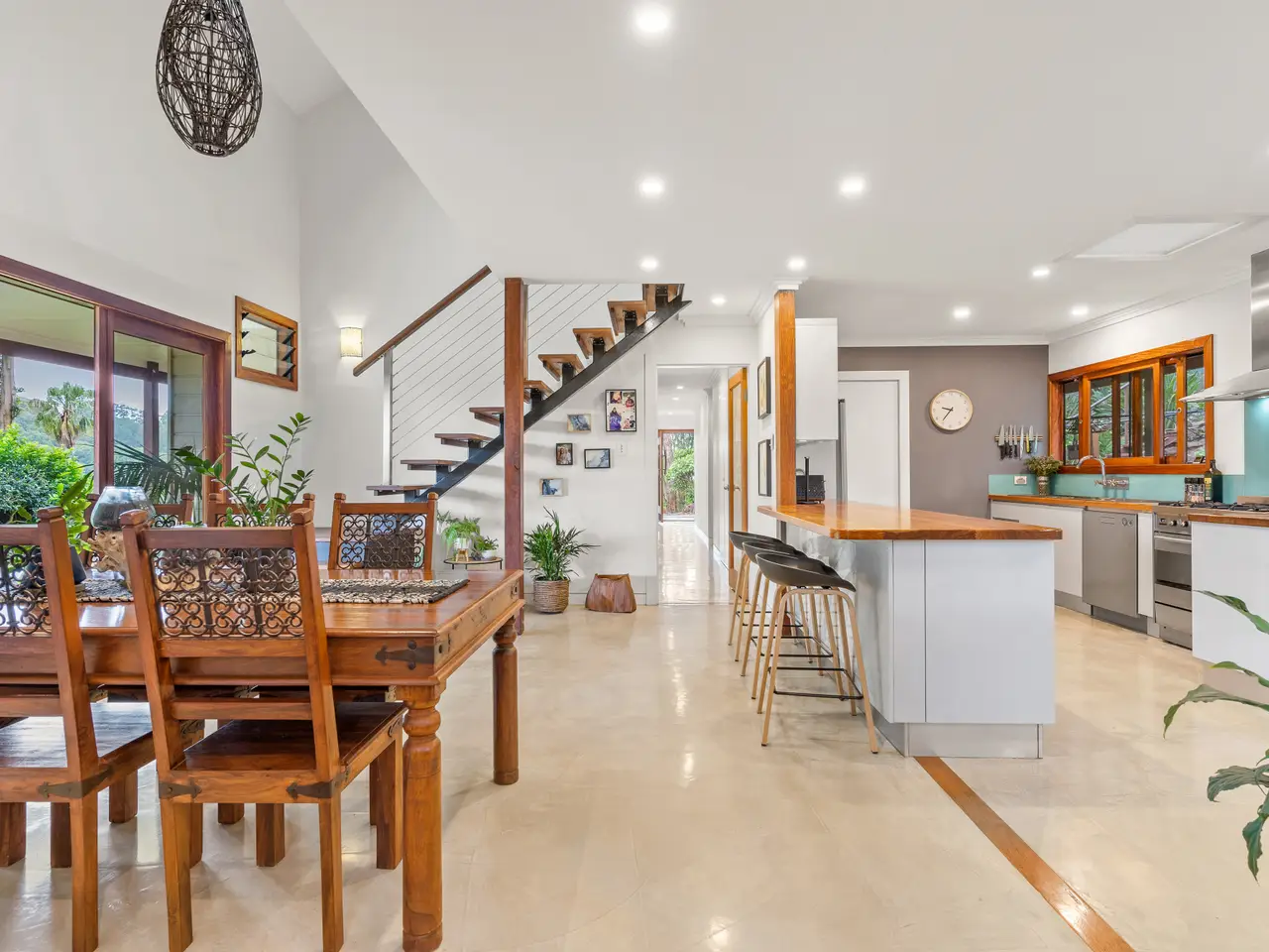 Soaking in views of surrounding rolling hills while being a quick drive to the beach; this two hectare property offers the ultimate lifestyle, with the added bonus of being next door to the popular Teven Valley Golf Course. To the ground floor of the main house are the open-plan living, kitchen, and dining areas, along with three generous bedrooms, served by a large main bathroom. Meanwhile, the fourth bedroom/parents' retreat dwells on the first floor, complete with an ensuite, walk-in robe, study space, second living room, and private balcony. Situated next to the house, a second dwelling features an expansive workshop and a studio apartment upstairs, with its own kitchen, bathroom, water closet, and deck. Adding to its magic, scenic spots are granted all around, be it from the encompassing covered alfresco to the outdoor pool area and cabana. Sprawled amongst two hectares spoilt with panoramic hinterland views Positioned next door to the popular Teven Valley Golf Course Light and bright open-plan living, kitchen, and dining areas High ceilings, exposed beams, skylights, timber and glass doors Three generous bedrooms on ground-floor, all with built-in robes Upper parents' retreat with ensuite, walk-in, study/living space, and deck Large modern main bathroom with bathtub, separate water closet Second dwelling with an extensive workshop plus studio apartment Wrap-around alfresco and pool area with sweeping hinterland views15-minute drive to Lennox Head and 20-minutes to Byron Bay