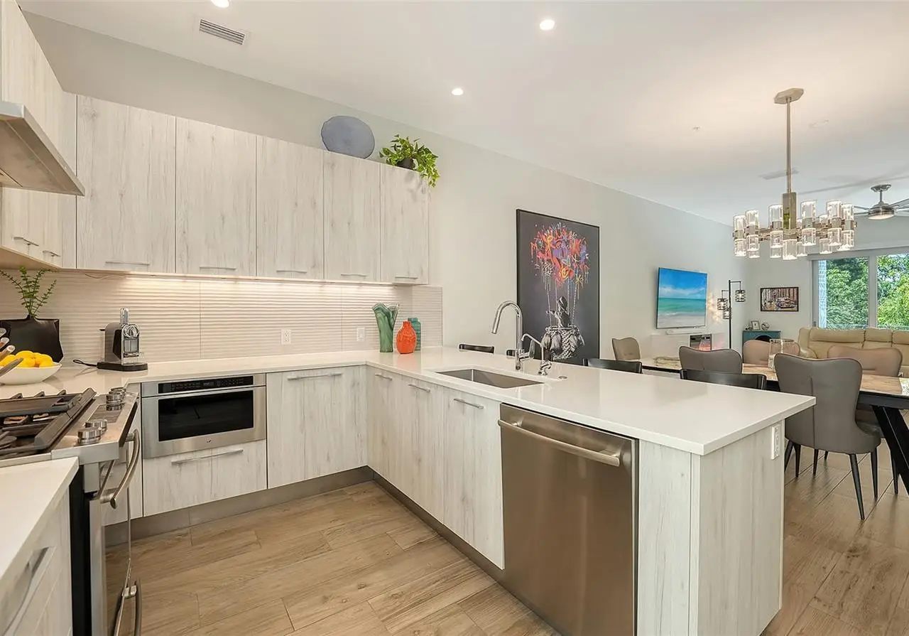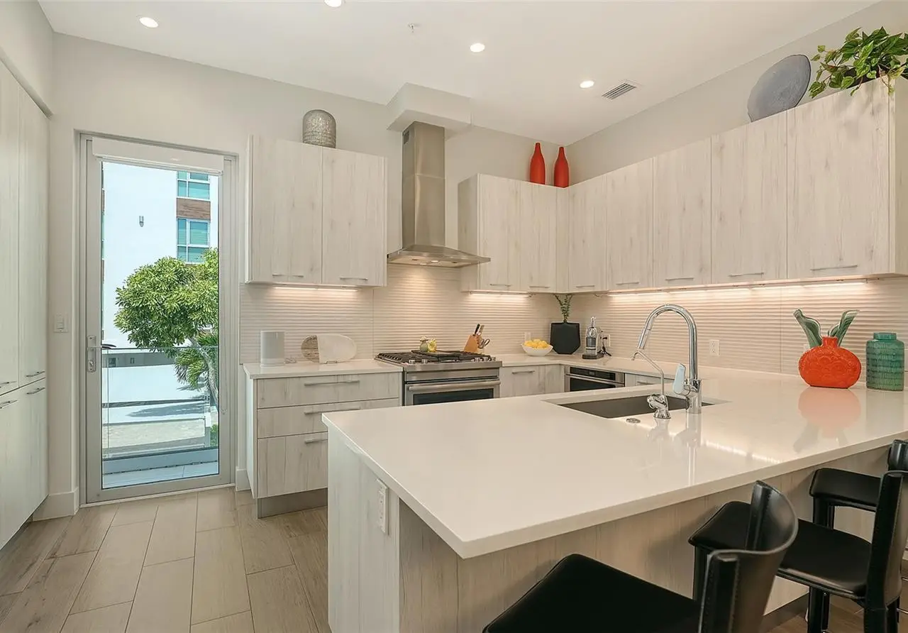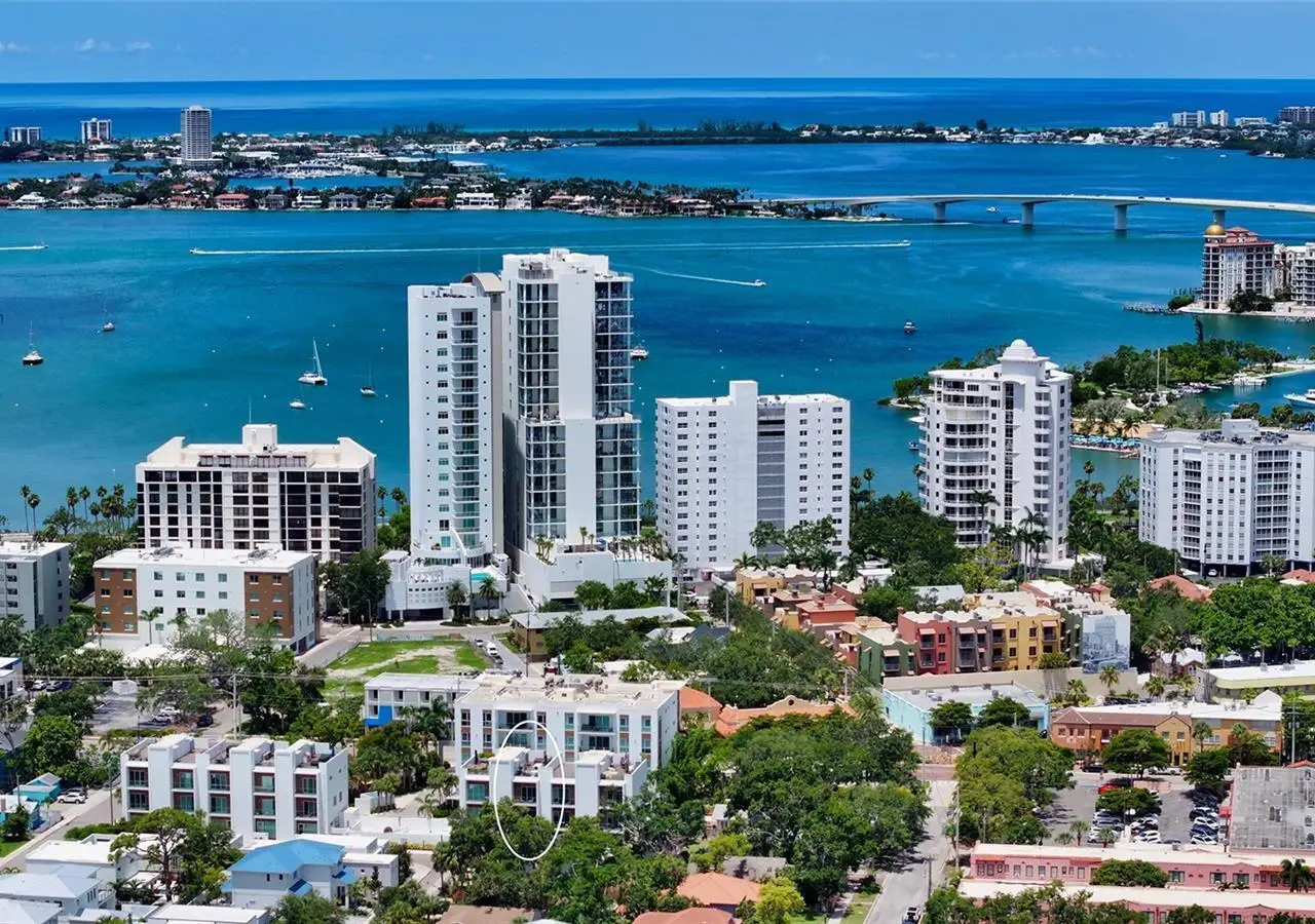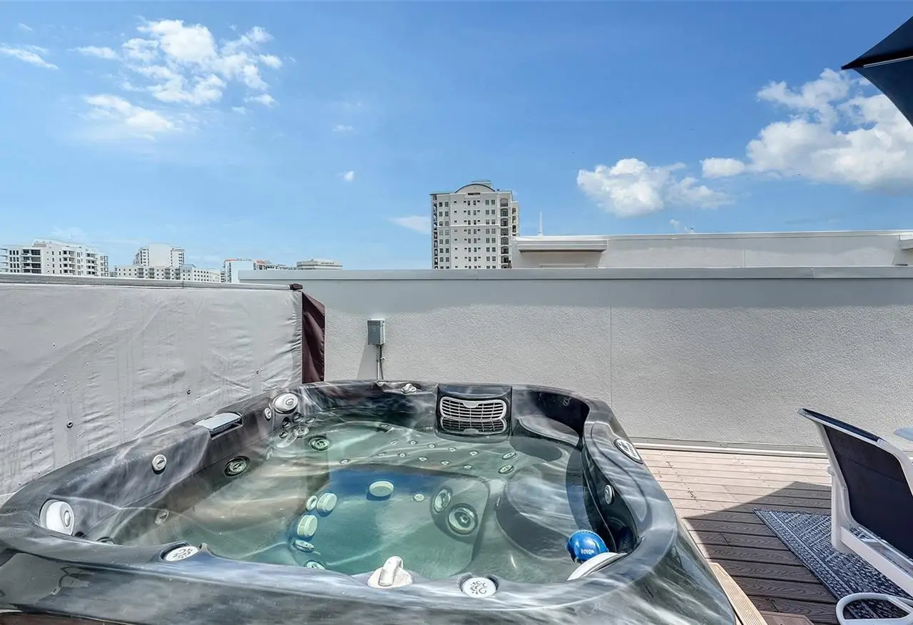 Sophisticated urban living awaits in this refined three-story townhouse with a PRIVATE ELEVATOR and expansive ROOFTOP DECK, located in the exclusive Townhomes of Orange Club in downtown Sarasota. Just steps from the historic Burns Court district and the city's vibrant Bayfront, this stylish residence offers 2,300 SF of thoughtfully designed living space, including 3 bedrooms each with their own ensuite bathroom. The private rooftop deck is a true sanctuary featuring a jacuzzi hot tub, outdoor kitchen, privacy wall, and 608 SF of additional outdoor living space - perfect for relaxing or entertaining under the stars, all with captivating city views. Designer finishes throughout, soaring 10-ft smooth-finish ceilings, Low-E impact windows and doors, contemporary baseboards and casings all enhance the home's clean aesthetic. A private two-car garage opens to a welcoming foyer and a guest bedroom with ensuite bath on the first level. The second floor is designed for effortless entertaining, with an open-concept great room, east- and west-facing balconies with frameless glass railings for unobstructed views, powder room, and a gourmet kitchen featuring imported Italian cabinetry, quartz countertops, and Jenn-Air stainless steel appliances, including a six-burner gas range. Upstairs, the third floor hosts a serene primary suite and a spacious second bedroom, both with ensuite baths and private balconies. A laundry closet with full-size washer and dryer adds convenience. Residents of Orange Club enjoy a secure, upscale community with surveillance cameras, a heated pool, and a sun lounge area. Located in the heart of Sarasota, you're just moments from the city's best, including a thriving arts and culture scene, award-winning dining, boutiques, nightlife, farmers market, and year-round festivals. This is downtown Sarasota living at its finest.