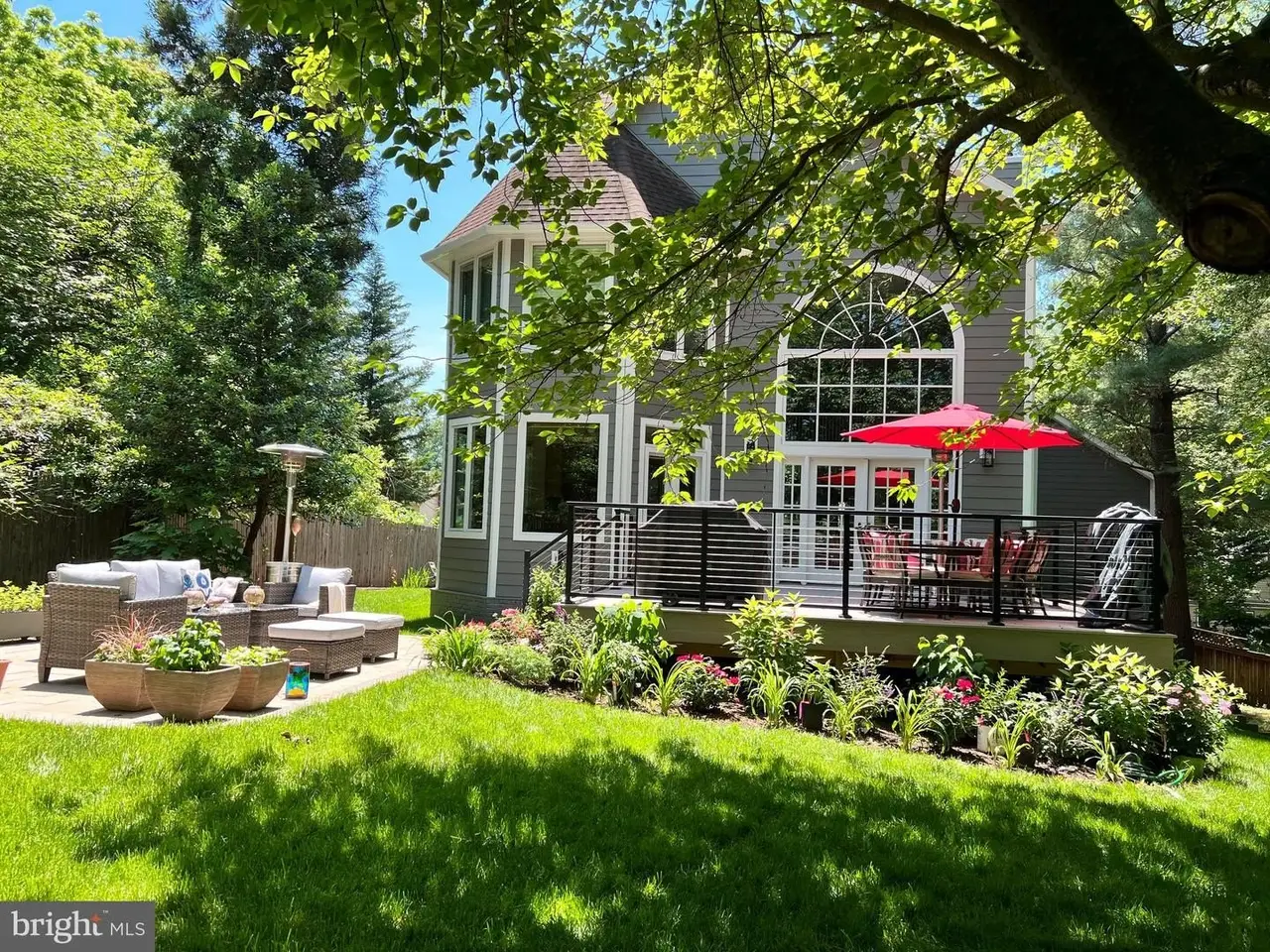 This incredible Victorian home is tucked away on a pipestem off Wilson Lane-set far from the road in a peaceful enclave. Nestled in a truly private setting with mature landscaping and ample parking, this striking contemporary residence offers over 4,500 square feet of living space, including five bedrooms and 3.5 bathrooms across three thoughtfully finished levels. Originally built in 1988, the home has been carefully updated over time, including new siding, new Trex deck, replacement windows, and a new dual-zoned HVAC system. Defined by dramatic ceiling heights, distinctive octagonal architecture, and stunning windows, this home offers a unique and inviting character. Inside, you'll find an entry foyer, a living room with crown molding, a large dining room with a China closet, a spacious kitchen with breakfast area, and a dramatic two-story family room. The sunlit kitchen features GE double wall ovens, solid surface countertops, recessed lighting, a GE Profile five-burner gas cooktop, a pantry, a built-in desk, and a fabulous octagon-shaped breakfast room with access to the Trex deck. The showstopping family room includes a soaring Palladian window, French doors to the deck, a marble wood-burning fireplace, and a built-in wet bar with glass display shelving. A powder room and coat closet complete the main level. Upstairs, the luxurious primary suite includes multiple closets with organizers-including two walk-ins-cathedral ceilings, a ceiling fan, and access to a spacious private loft. This versatile upper-level loft / retreat offers an office area with a balcony, fitness space, and a cedar walk-in closet. The primary bathroom includes a double vanity, a jetted soaking tub, and a separate shower. Two additional bedrooms, each generous in size and able to comfortably accommodate two beds, a hall bathroom, and a laundry closet complete the upper level. The walk-out lower level features a large recreation room with a fireplace and wet bar, two more bedrooms, a full bathroom, and a sizable storage room. Sitting on an extraordinary 22,559 square foot lot, the home's outdoor space includes a fenced backyard, a new Trex deck with cabled railing, a brick paver patio, a shed, a two-car garage, and additional surface parking. The home's architectural style beautifully integrates with the natural surroundings, creating a tranquil retreat with easy access to everything Bethesda has to offer. Just steps from Pyle Middle School and Whitman High School, and ideally located near Downtown Bethesda, local shopping, and the Capital Beltway-this is a rare opportunity not to be missed!