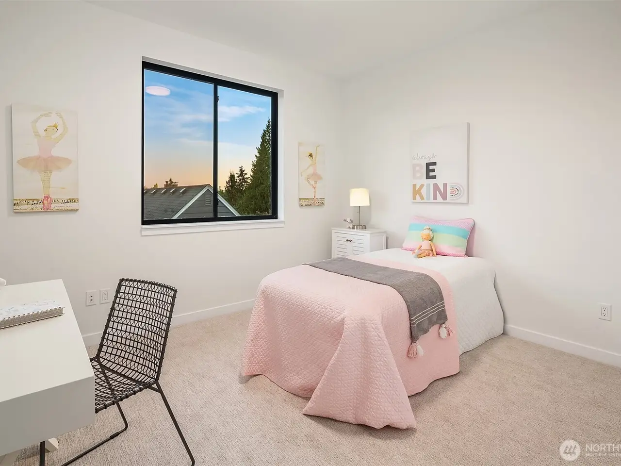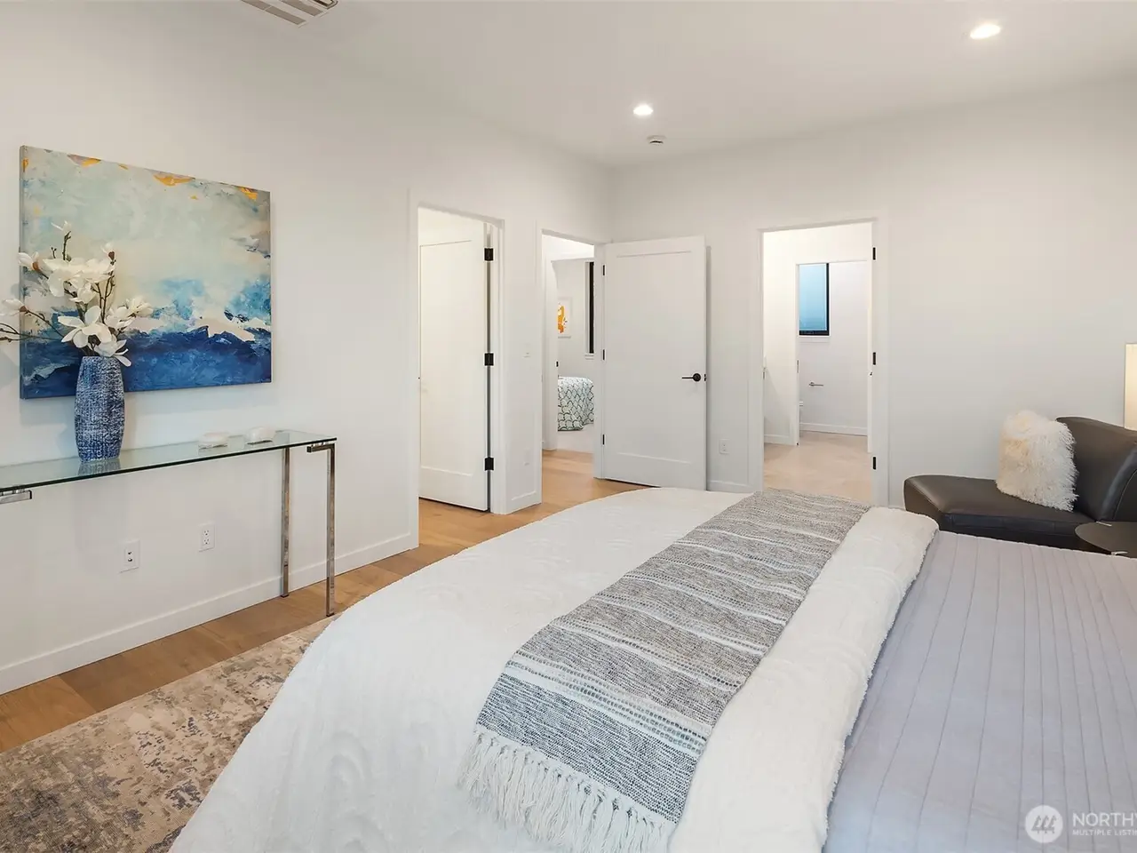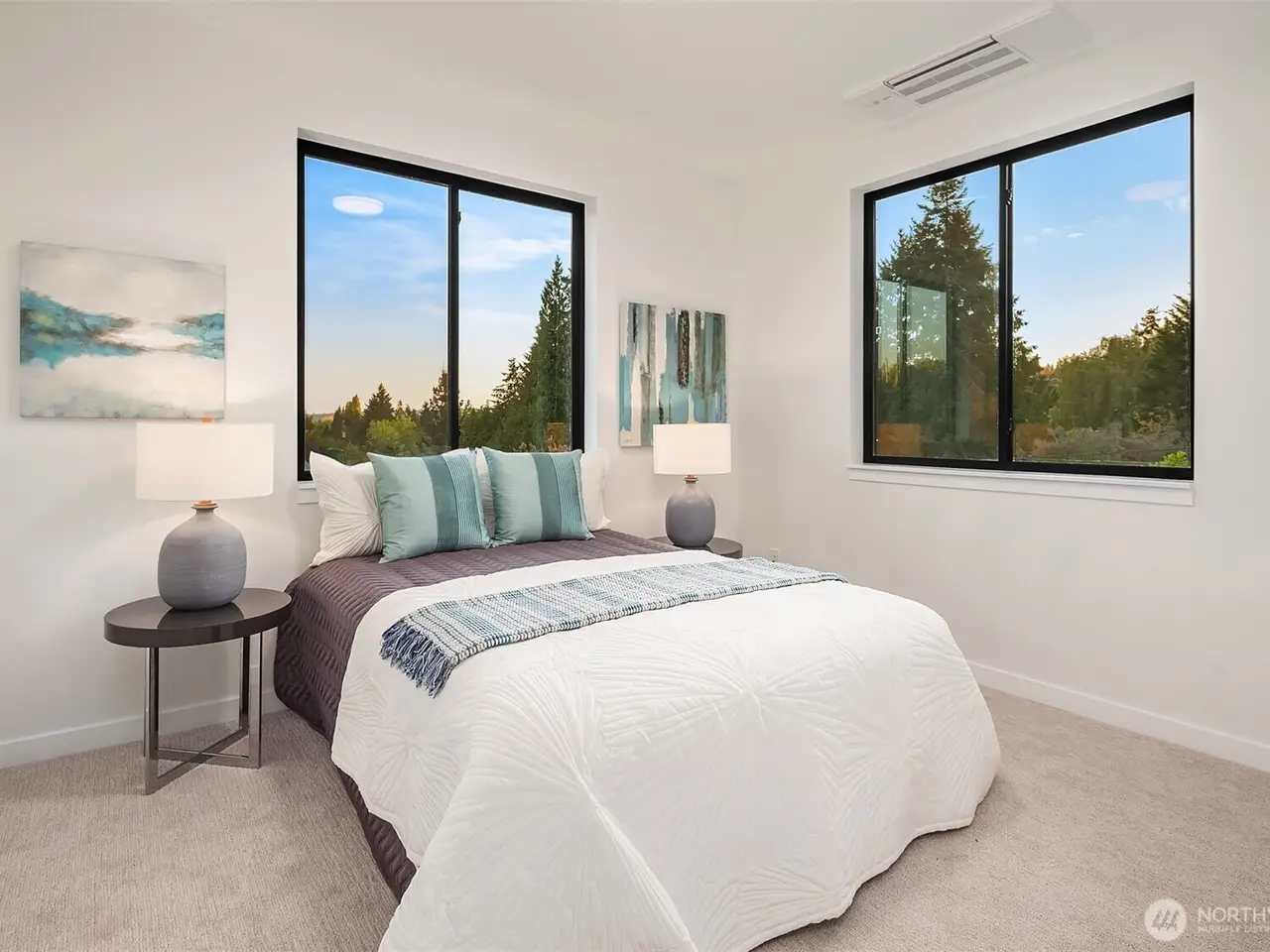 This gorgeous new NW Contemporary home has it all! Enjoy the gourmet kitchen with oversized quartz waterfall island, Bosch/Wolf appliances, and walk-in pantry. Find your focus in its sunlit office and relax in the large living room with fireplace, built-ins, and wide-plank hardwood floors. Entertain in the dining room with panoramic views and nano doors for seamless indoor/outdoor living onto the covered deck and huge backyard. Upstairs has 4 light-filled bedrooms including a primary suite with a five-piece heated-floor bath. The lower level contains a 1 bed/1 bath suite, 2nd full kitchen, living room, and separate entry, plus a rec room, 2-car garage, and mudroom. Perfectly located near Bryant Park, PCC, Seattle Children's, and U-Village.