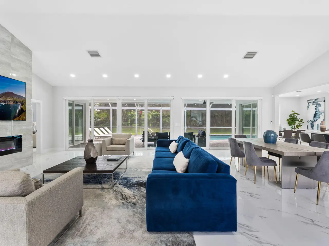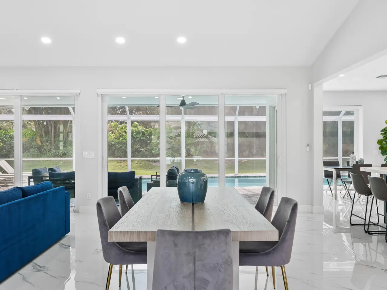 Masterfully modernized estate home in world-renowned PGA National. This stunning one-story CBS home spans over 3,800 sq. ft. of living space with 4 bedrooms & 4.5 baths. This residence features 2 large primary suites and a very private guest suite with its own entry & dry bar--perfect for in-laws or extended stays. Every detail has been upgraded: new roof, impact windows & doors, Lutron smart system, & imported porcelain floors from Spain throughout. The chef's kitchen includes double ovens, vented hood, standalone ice maker, & filtered water tap. All baths are newly redesigned with elegant finishes. Outside, enjoy a resurfaced pool, new heater, screen enclosure, & paver patio ideal for entertaining. This is your opportunity to live steps away from an internationally acclaimed golf resort.