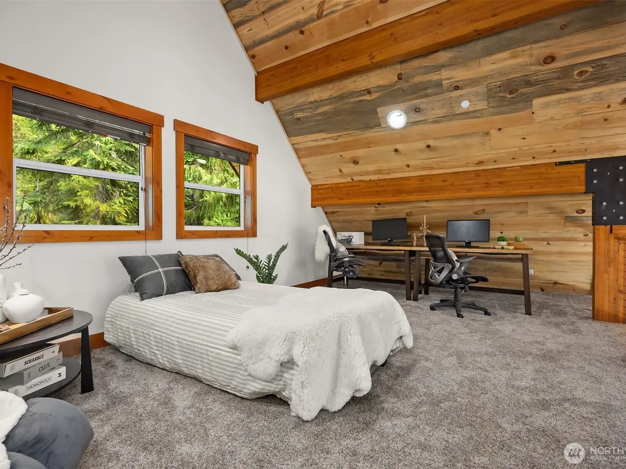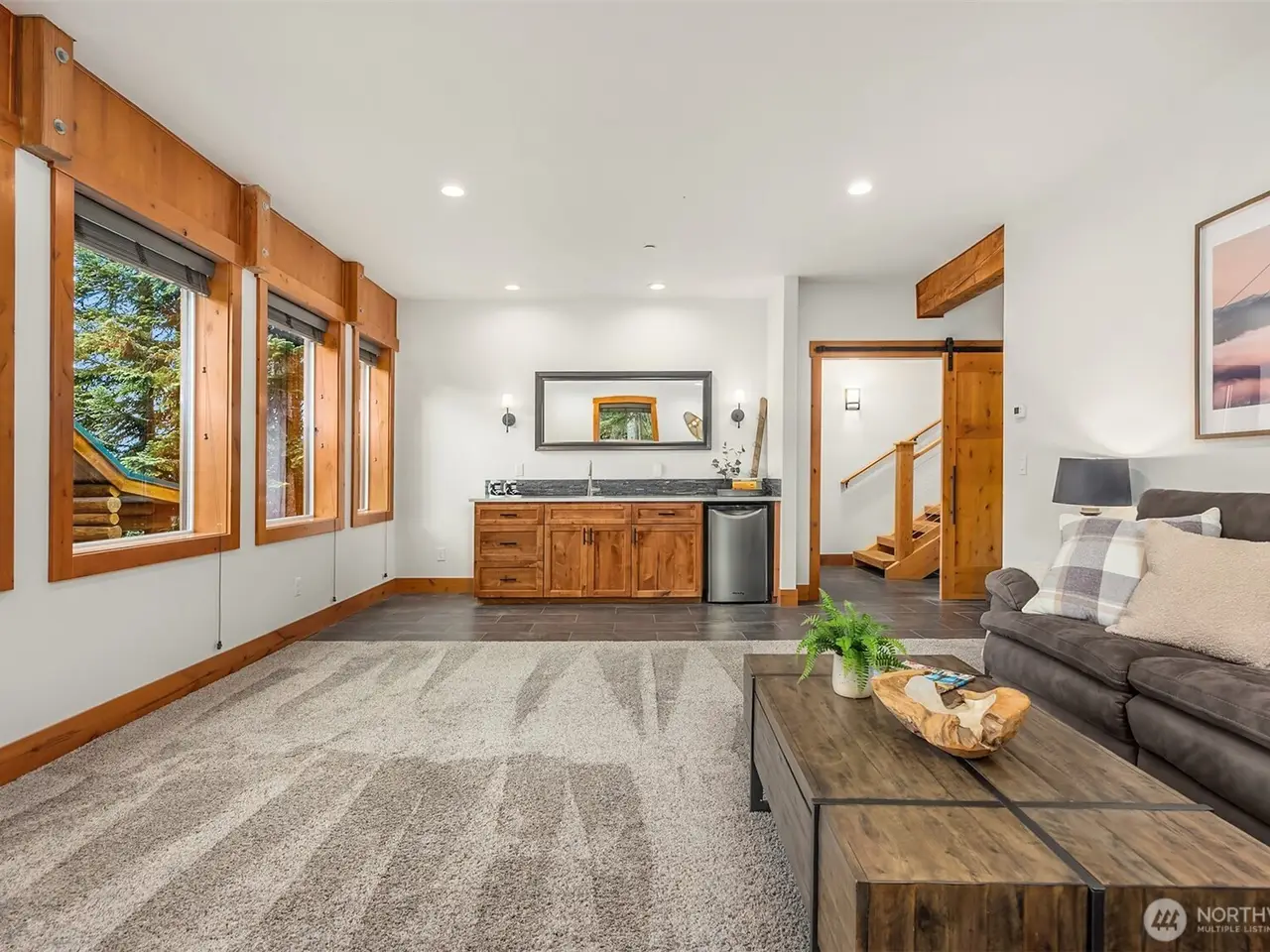 Experience the ultimate PNW ski lifestyle at this newly built, fully furnished ski-in/ski-out home on private land at Crystal Mountain. Just steps from the chairlift, skip traffic and parking; ski straight from your door. Floor-to-ceiling windows frame sweeping views of the resort, with an open kitchen, great room, two living areas, main-level bedroom, loft for sleeping or office space, bunk room, mudroom, large laundry room with wall-to-wall storage, modern open beam staircase, and heated floors throughout. For full year usage, enjoy the large deck that overlooks a stream for summer evenings after hiking. Perfect for ski and outdoor enthusiasts, this turnkey retreat offers front-row access to world-class skiing -- ready for you this season.