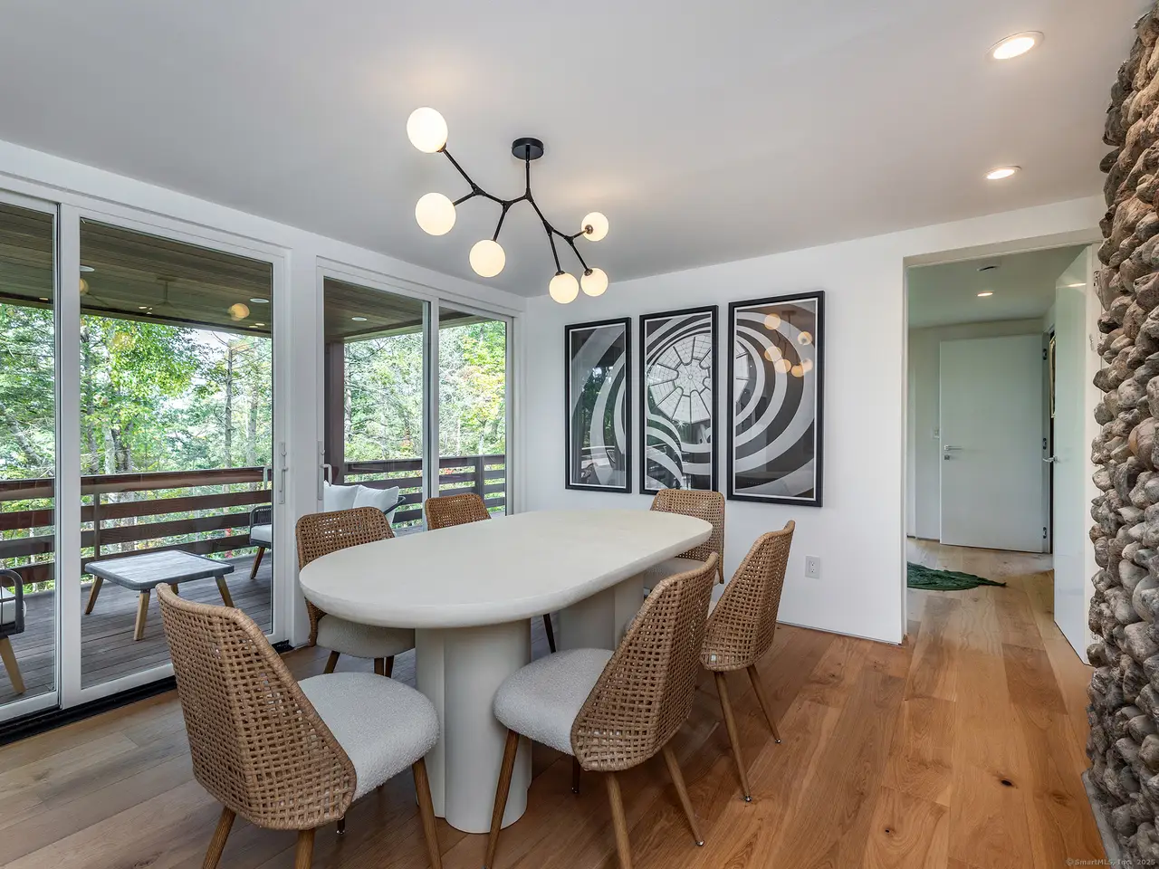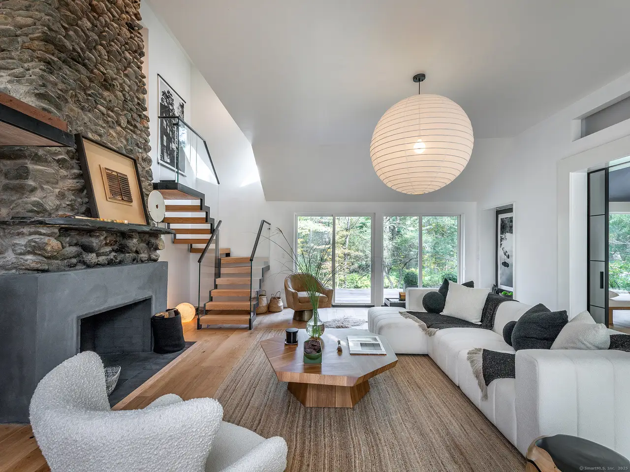 Modern Lakeside Retreat with Guest Cottage and Rooftop Terrace. Where modern European design meets the soul of New England living - welcome to this stunning, fully renovated lakeside property, composed of a sophisticated main residence, a stylish guest cottage, and a three-car garage with a rooftop garden terrace ideal for entertaining. Designed by a visionary European team, the main house features distinctive tile siding-both weather- and time-resistant-and a warm, modern aesthetic. Inside, expansive glass panels and oversized windows flood the space with light and frame views of nature from every room. At the heart of the home is the grand living room, where a soaring double-height river stone fireplace and custom oak bookcase create a breathtaking focal point. Just before the living room, an all-glass sunroom-connected by an elegant glass pocket door-offers the perfect flexible space for dining, a home office, or peaceful meditation. The modern-designed kitchen features glass and stone finishes and top-tier Gaggenau appliances.. Step outside to enjoy the wraparound deck and series of patios, all thoughtfully positioned to connect the home to its natural setting and maximize indoor-outdoor living. A sitting room reveals a beautiful private terrace overlooking the lake Wononscopomuc. The fully renovated guest cottage offers a bright open floor plan, a very large kitchen, and a spacious bedroom. Car enthusiasts will appreciate the five-car garage, while the grassy rooftop terrace above provides a stunning setting for outdoor gatherings, yoga, or sunset cocktails. Nestled in nature, yet just a short walk from downtown Lakeville, the town beach, and local restaurants.
