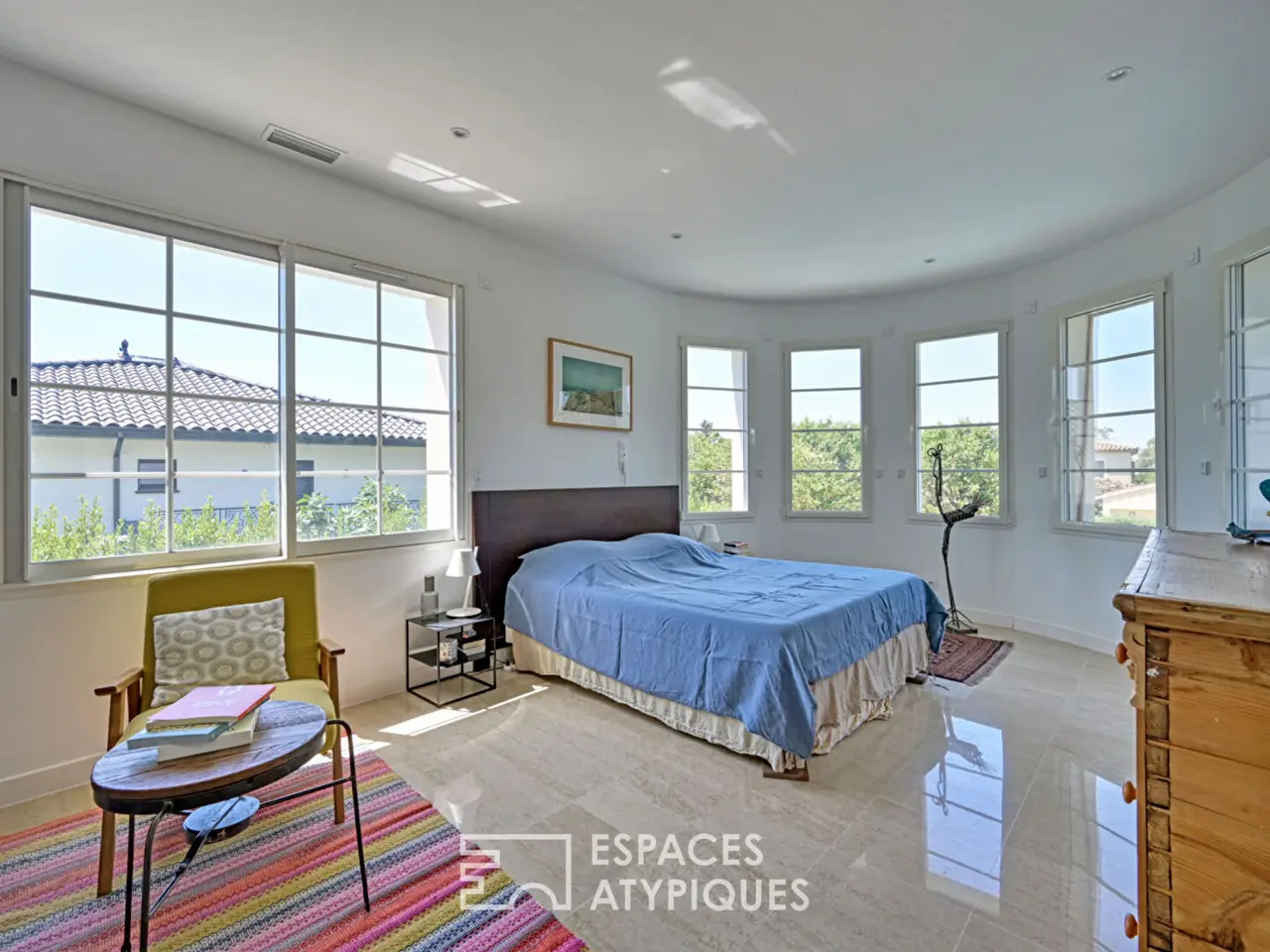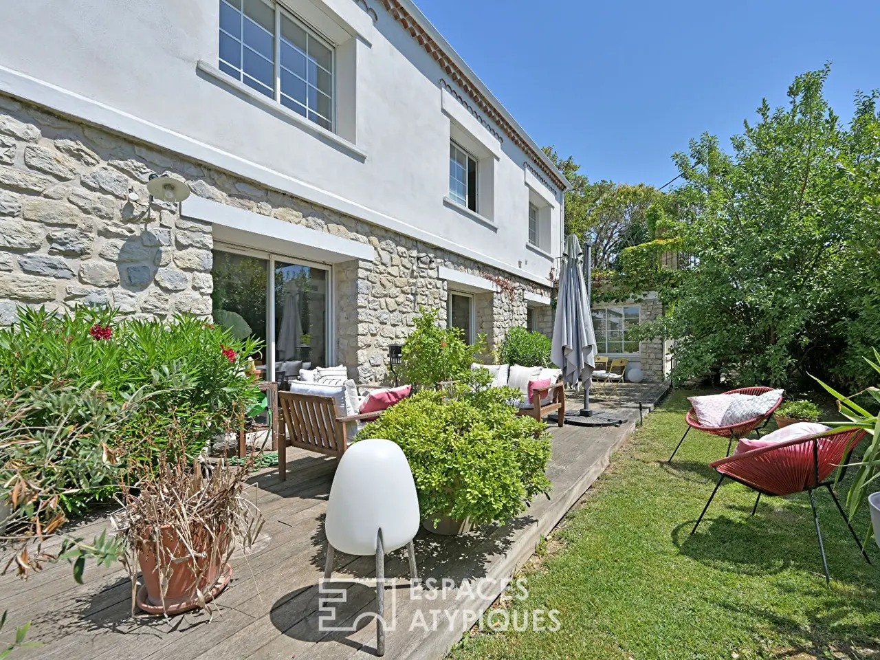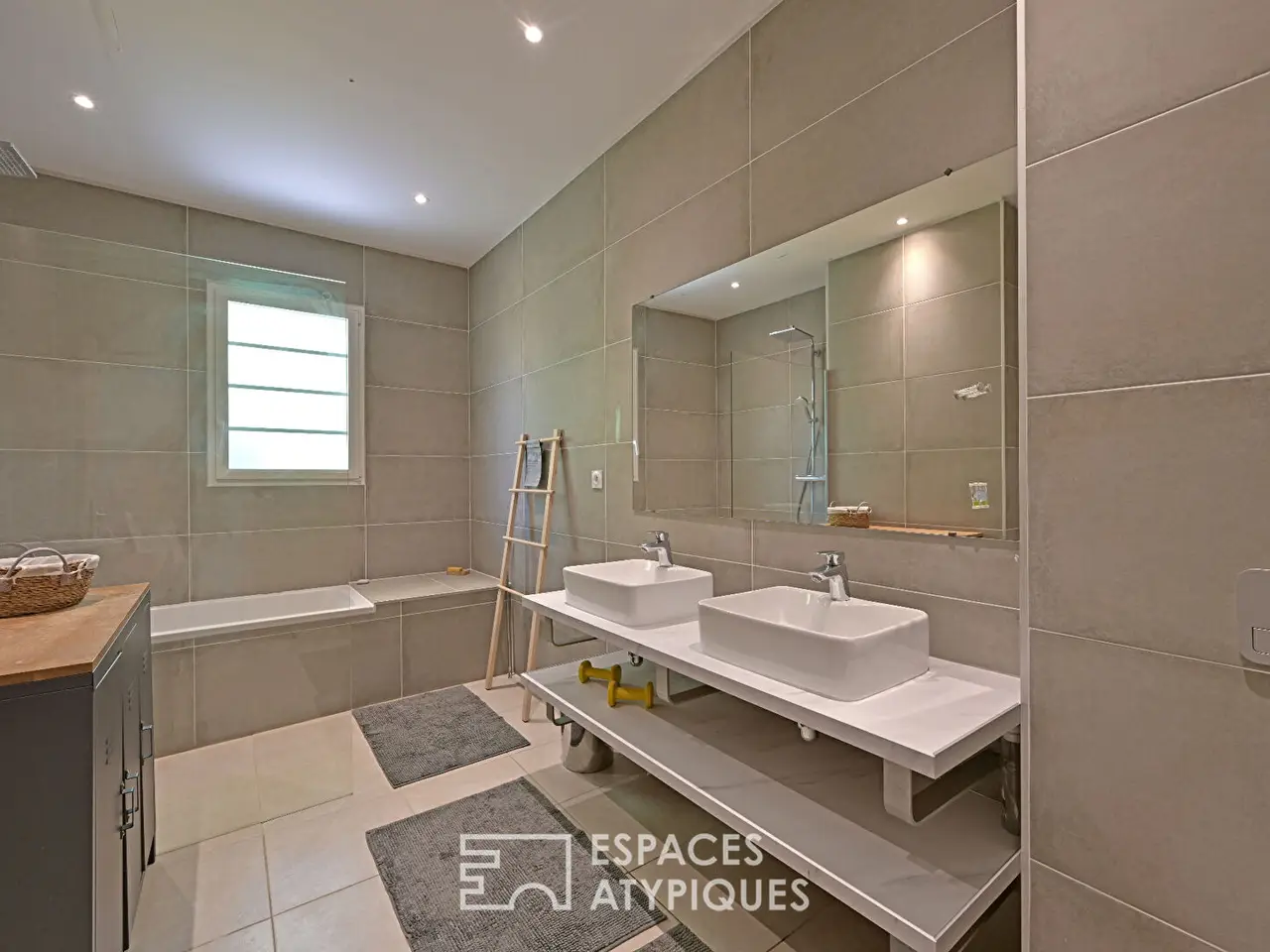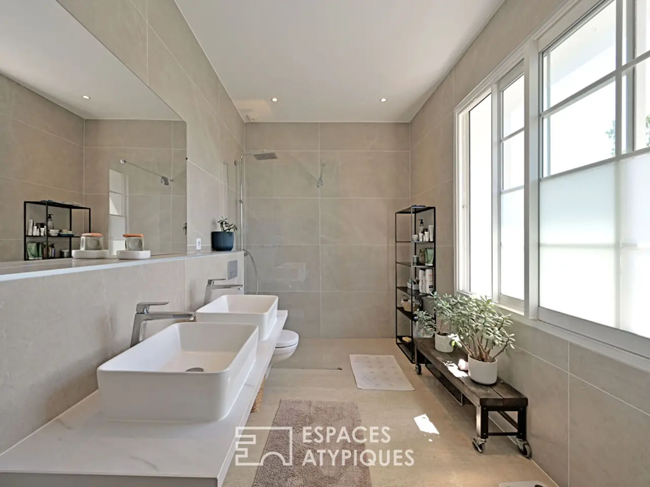 Located in one of Montpellier's most sought-after neighborhoods, in the heart of the Millenaire district, this superb 1950s villa has undergone a complete renovation, subtly combining old-world charm with contemporary comfort. Situated on a plot of approximately 850sqm, within a private and secure estate of eight luxury villas, this property offers 245sqm of generously proportioned living space. Upon entering, you will be captivated by the elegance and authenticity of the property: exposed stone walls, marble floors, period fireplace: The ground floor offers a vast, light-filled 85sqm living room with a high-end open-plan kitchen, a laundry room, and a first 28sqm master suite with a private bathroom. Upstairs, you will discover three additional bedrooms, a bathroom, as well as a spectacular 39 sqm rotunda master suite, with dressing room and shower room. One of the bedrooms gives access to a glass-enclosed space, perfect for setting up an office, an artist's studio or a winter garden. Outside, a 170 sqm southwest-facing exotic wood terrace accompanies a 12×3 meter swimming pool, ideal for enjoying the Mediterranean climate. Two parking spaces are provided, with the possibility of parking several vehicles on the plot. ENERGY CLASS: A - 61 / CLIMATE CLASS: A - 1Estimated average amount of annual energy expenditure for standard use, established from energy prices for the years 2021, 2022, 2023: between EUR1,201/year and EUR1,625/year.Information on the risks to which this property is exposed is available on the Georisques website for the areas concerned.Contact: Valentin, 06.67.31.56.85REF. 11955Additional information* 7 rooms* 5 bedrooms* 1 bathroom* 2 shower rooms* Outdoor space : 850 SQM* Parking : 2 parking spaces* Property tax : 4 600 €Energy Performance CertificatePrimary energy consumptiona : 61 kWh/m2.yearHigh performance housing*61kWh/m2.year1*kg CO2/m2.yearA*B*C*D*E*F*GExtremely poor housing performance* Of which greenhouse gas emissionsa : 1 kg CO2/m2.yearLow CO2 emissions*1kg CO2/m2.yearA*B*C*D*E*F*GVery high CO2 emissionsEstimated average annual energy costs for standard use, indexed to specific years 2021, 2022, 2023 : between 1201 € and 1625 € Subscription IncludedAgency feesThe fees include VAT and are payable by the vendorMediatorMediation Franchise-Consommateurswww.mediation-franchise.com29 Boulevard de Courcelles 75008 ParisInformation on the risks to which this property is exposed is available on the Geohazards website : www.georisques.gouv.fr