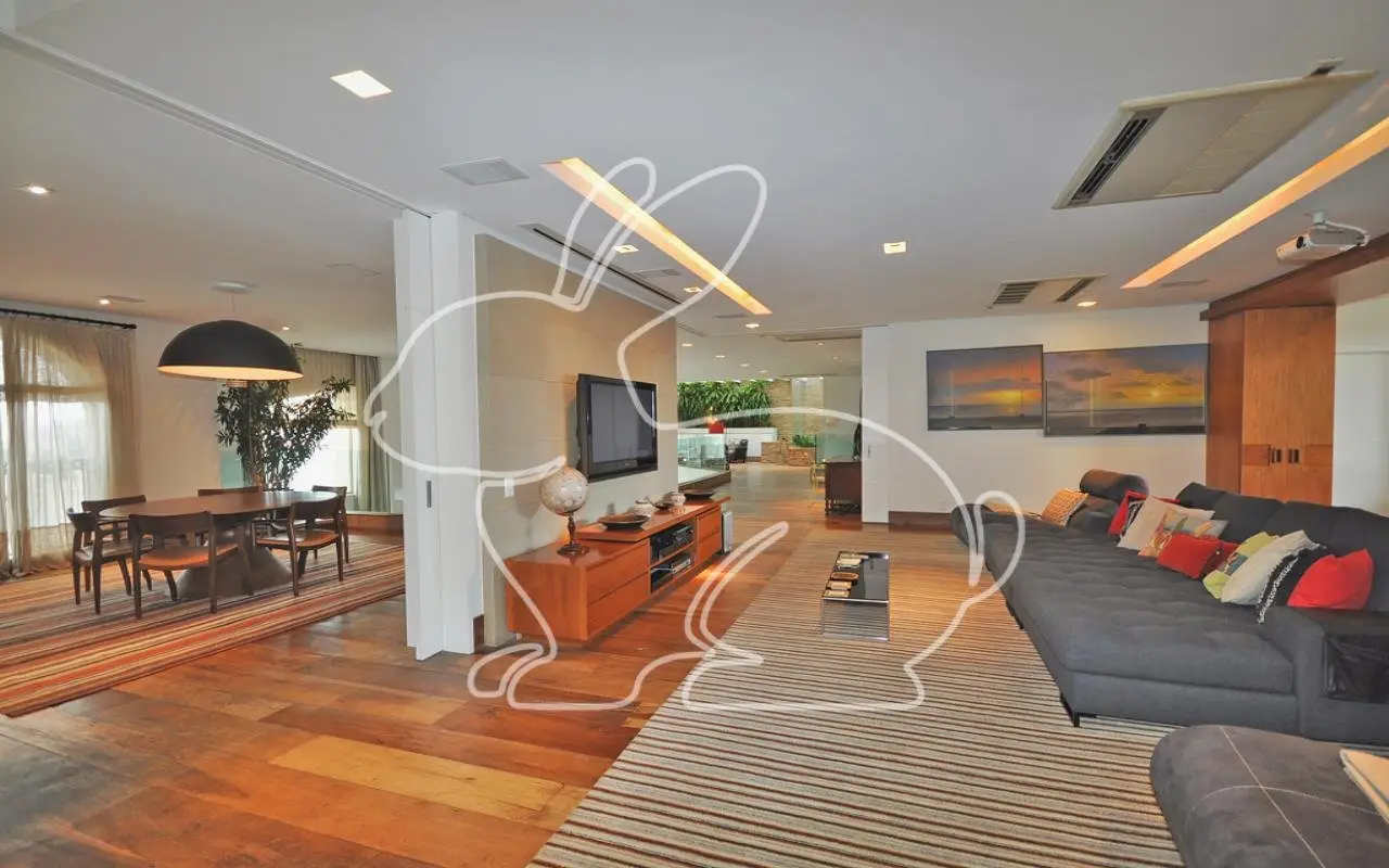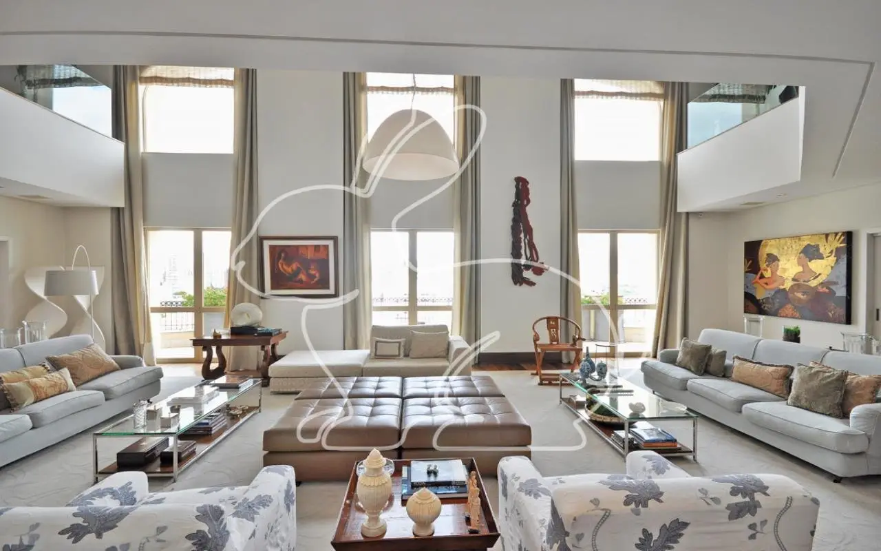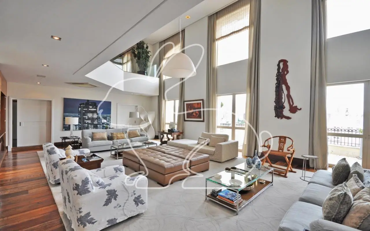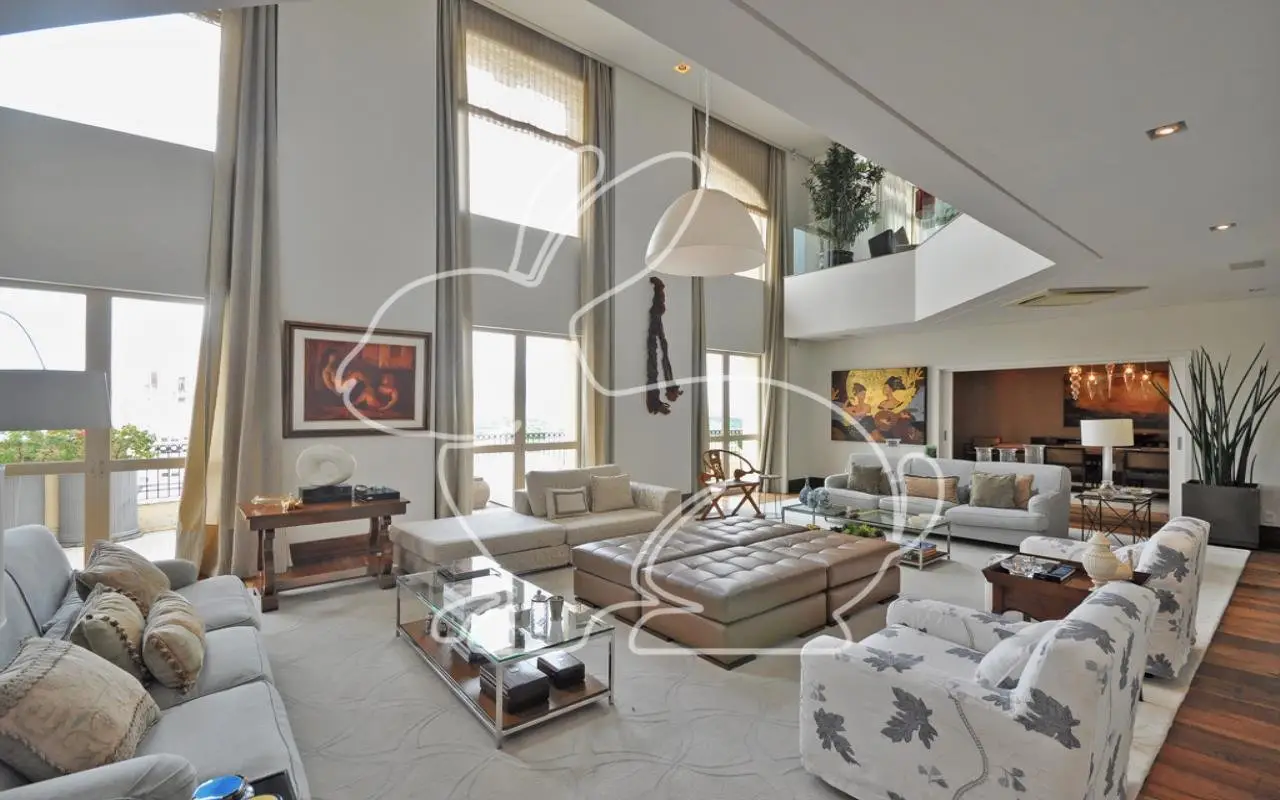 Luxurious building, the best in the region. Excellent duplex penthouse. Unbeatable and unparalleled view of Ibirapuera Park. Completely renovated, impeccable, ready to move in. Elevators to both floors, automation, air conditioning. Reclaimed wood floors. Balconies, several living rooms, kitchens, three suites with walk-in closets and terraces. Outdoor area with pool, barbecue, gym, sauna. Wonderful Penthouse in the Jardim Paulista neighborhood with 1,149 m² of private/useful area, 4 bedroom(s), 3 suite(s), 12 parking space(s), 5 bathroom(s), pool, barbecue, terrace, duplex, air conditioning, maid's room, renovated, gourmet balcony, double height ceiling.