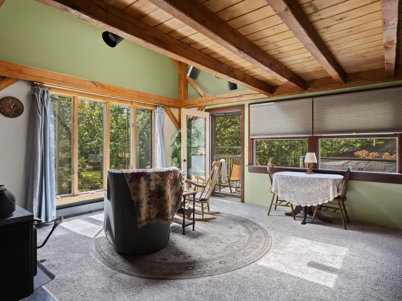 Tucked away behind association common land, this year-round compound offers the perfect blend of privacy, space, and flexibility. The post-and-beam main house features four bedrooms and combines timeless character with functional design, ideal for everyday living or seasonal enjoyment. A separate two-bedroom guest house with a welcoming farmer's porch is thoughtfully sited to ensure privacy and independence, complete with its own driveway and parking. The detached garage, with a loft above, adds even more versatility-ideal for storage or future finished space. Situated on one of the largest parcels in the Smith Hollow Association, the property enjoys a tranquil, park-like setting. With direct access to the bike path at the end of the road, you're just minutes from Edgartown and all down-island amenities. More than just a house-this is a place to call home.