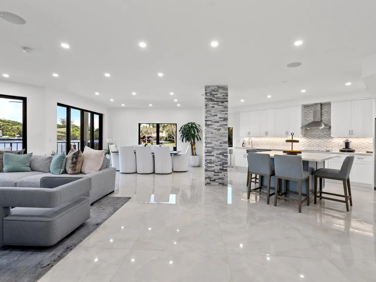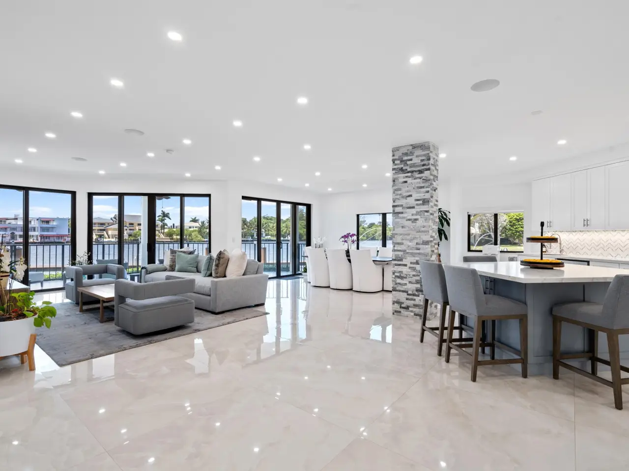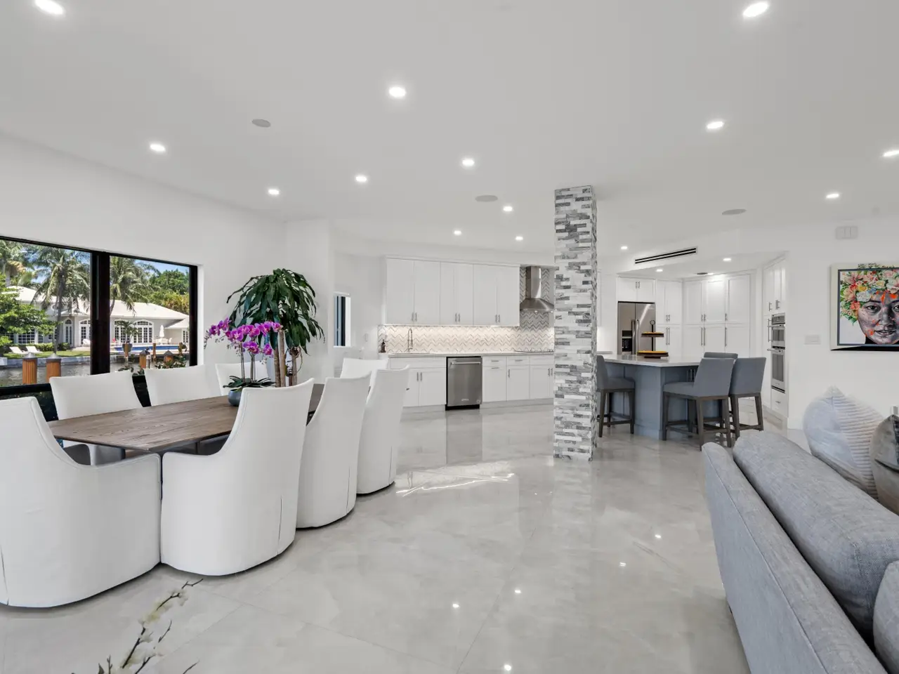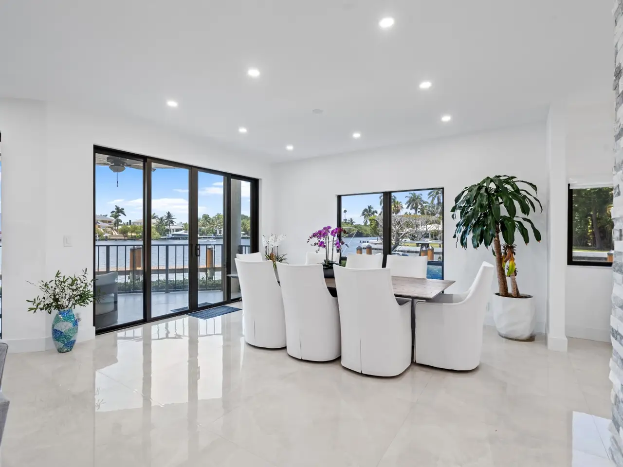 The crown jewel of Waterway North offering unmatched privacy and the most desirable vistas, this completely renovated first-floor residence is the only one uniquely situated on the complex's end point, it's own 38 foot dock. It directly fronts the Intracoastal Waterway with main rooms opening to the loggia offering easy access to the yard and waters edge with its own 38 foot dock private dock.