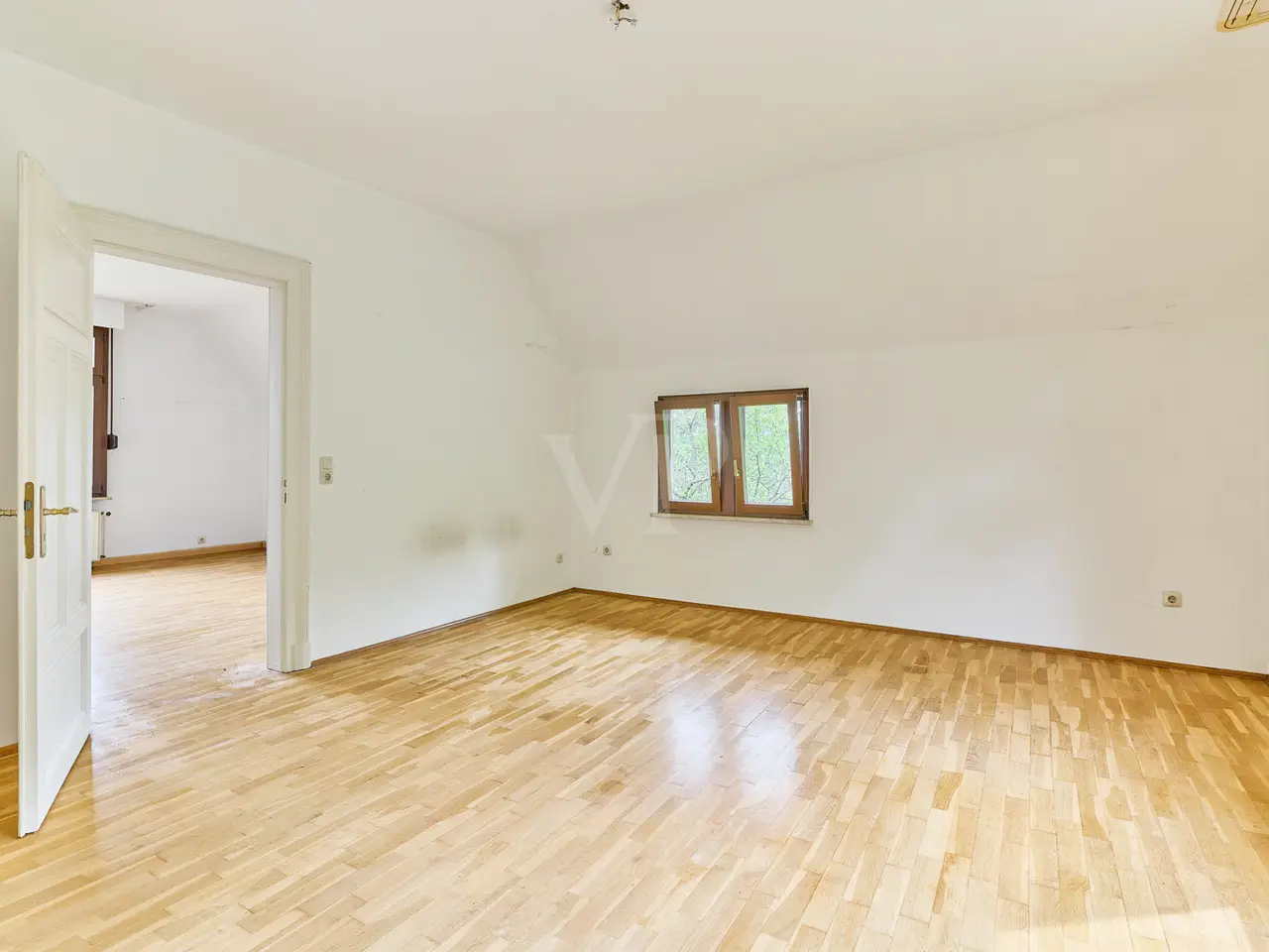 For sale is a charming, listed villa, which was built around 1896 and is characterized by its old building style. It is one of the oldest houses in Trautheim. The veranda next to the entrance was added in 1906 and fits in perfectly with the chic style of the house. The property offers a living space of approx. 127 m² and extends over two levels. The spacious plot of approx. 1237 m² is situated directly on the edge of the forest in an idyllic location surrounded by greenery. The interesting architecture of the house offers a promising basis for a sophisticated renovation to restore it to its original splendor. The well thought-out room layout of the property offers a total of 4.5 rooms, including 3.5 bedrooms, providing plenty of space for a family or individual design options. There is a bathroom with bathtub and a guest WC on the mezzanine level. The kitchen with pantry completes the room program of this extraordinary property. Particularly noteworthy is the beautiful wooden staircase, which enriches the interior with its historic charm. The spacious garden directly adjacent to the forest invites you to spend relaxing hours outdoors and offers plenty of space for leisure activities or gardening. A single garage offers space for a vehicle and the spacious, solid garden shed provides additional storage space. The location of the house, right on the edge of the forest, offers a peaceful environment and the opportunity for walks and relaxation in the countryside. In summary, this listed villa with its large plot and existing features is an exciting opportunity for anyone who enjoys breathing new life into a historic building and designing it according to their own ideas. Interested buyers are invited to view this unique property and get a first-hand impression of its potential.