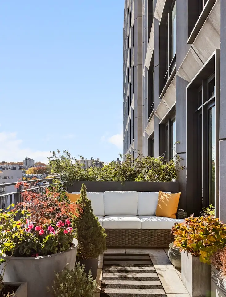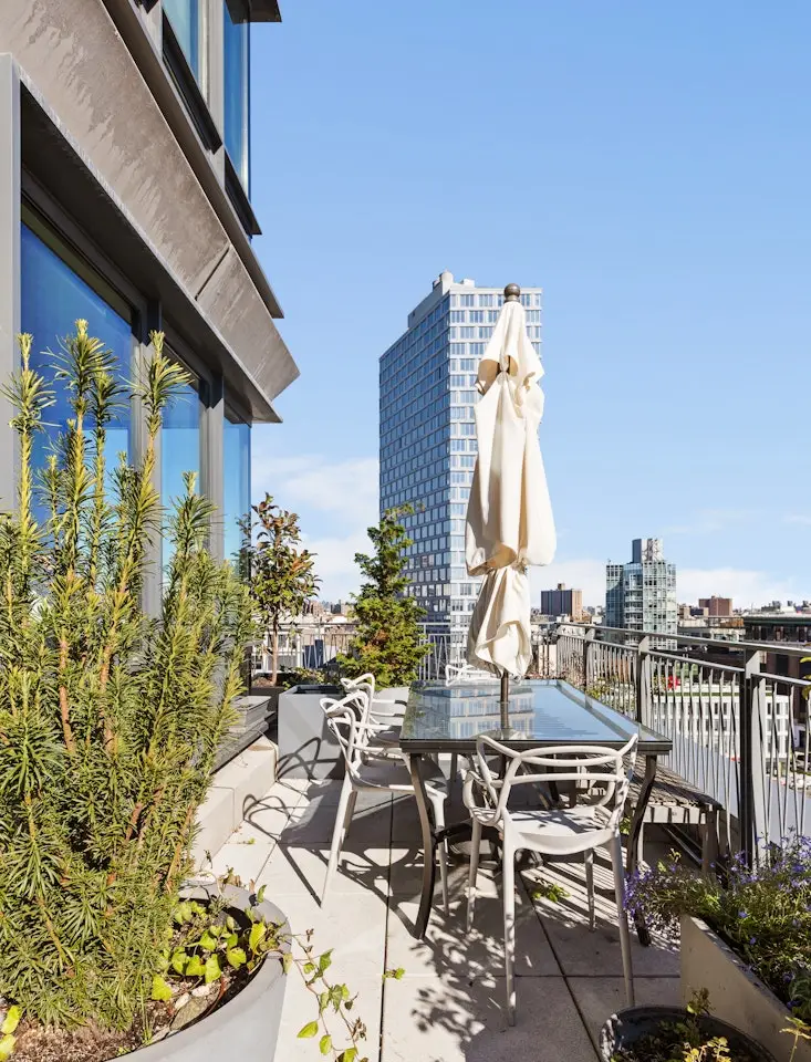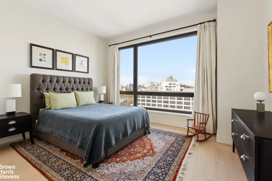 Perched on the northeast corner of one of Prospect Heights' premier full-service condominiums, residence 901 is an oversized, light-filled, modern sanctuary with panoramic eastern and northern views and a sprawling 463SF private terrace, perfect for morning coffee, alfresco dining, or simply taking in the sunrise. Floor-to-ceiling windows flood the 1308 square feet of the home with natural light, highlighting its elegant finishes and airy layout. The gourmet kitchen is a dream for both everyday living and entertaining, featuring a full suite of Miele appliances, sleek custom cabinetry, and a waterfall countertop island offering additional seating and prep space. A massive walk-in coat closet anchors the entryway, ensuring an organized and functional home. The gracious northern-facing primary suite features a large walk-in closet and a spa-inspired en-suite bath, while the guest bedroom sits beside a beautifully appointed full bathroom. Additional conveniences include an LG washer and dryer and ample built-in storage throughout. Residents of 550 Vanderbilt Avenue enjoy a curated collection of luxury amenities, including a 24-hour doorman and concierge, state-of-the-art fitness center, yoga and meditation studios, children's playroom, resident lounge, and a landscaped roof deck with sweeping views of Brooklyn and Manhattan. Perfectly situated in Prospect Heights, this home offers immediate access to some of Brooklyn's most beloved destinations, including Prospect Park, the Brooklyn Botanic Garden, and Barclays Center. A dynamic dining and shopping scene surrounds you, with neighborhood favorites just minutes away. Nearby 2, 3, B, Q, and C subway lines make commuting effortless, connecting you to Manhattan and beyond with ease.