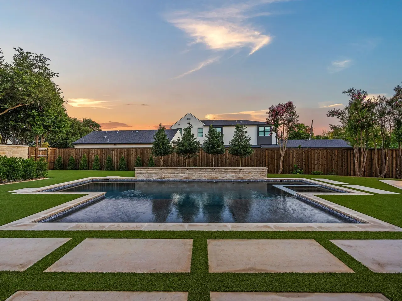 Located within a prestigious Preston Hollow pocket full of architecturally significant and newer homes. This home offers an extraordinary living experience where the floor plan offers a seamless flow from room to room with beautiful spaces to entertain. An outdoor experience awaits with a large pool + spa, expansive living + dining areas with patio screens, outdoor kitchen + outdoor shower + outdoor bath for all seasons enjoyment. The interior showcases warm, organic and earthy materials such as limestone, amber hues, handmade tiles, veined stone, plasters, and cast stone. Smooth walls, clean lines and an open layout enhance the sophistication of the design. Thoughtful lighting adds ambiance and draws attention to expansive art walls ideal for displaying a collection. A Remarkable kitchen features Mykonos stone, imported handmade tile, grass cloth accents, sophisticated cabinet design, bold yet subtle appliances, toe kick and cabinet lighting, prep island with fridge drawers, eat in main island and the kitchen has a working pantry + butler featuring a sonic ice maker, bar ice maker, glass front fridge, wine and bar accessory built ins and unique storage including a special water bottle drawer. The primary suite is located on the 1st floor with striking pool views + a spa experience bathroom + WI closet with cabinet built ins. Split away from the primary is 1 add'l downstairs bedroom and bath. Upstairs has 2 large bedrooms located on 1 wing each with en-suite baths + large closets with tremendous storage. 1 add'l guest bedroom and bath are on the other wing. Living areas downstairs and up offer flexibility for individual needs. Other features include a spacious laundry, fully turfed backyard, epoxy garage floor and 3 spaces, lush landscaping, app controls, video cameras and window shades. Expansive glass walls allows for soothing visuals of beautiful landscaping and a calming pool as your own personal resort. This premier location offers easy access to the area.