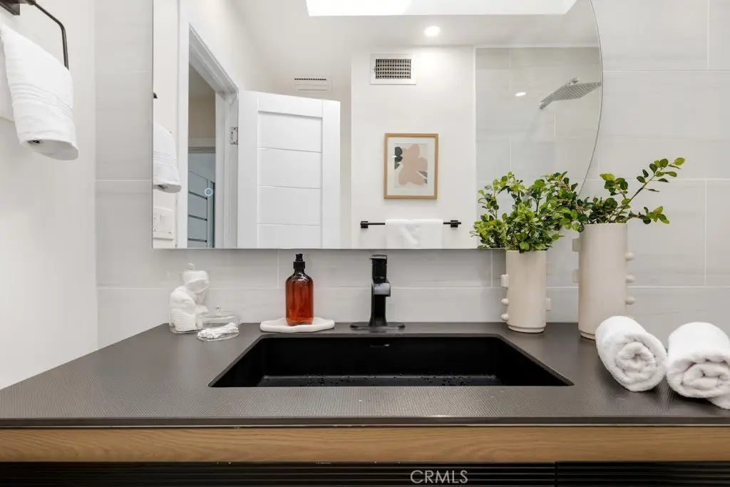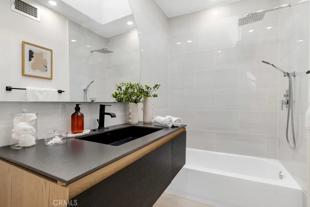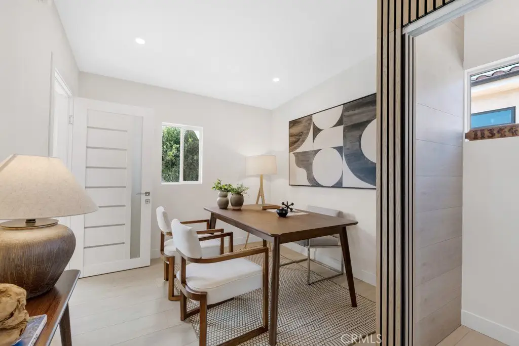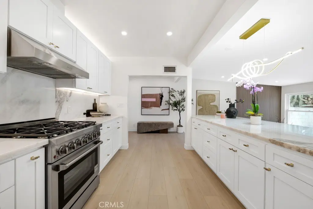 Introducing this beautifully upgraded single-family home in North Hollywood! Spanning 1,650 square feet, this charming residence features 3 bedrooms and 2 bathrooms. Upon entering, you'll be captivated by the exquisite details, including stylish light fixtures, textured walls, and stunning marble countertops. The entire home boasts elegant engineered wood flooring and recessed lighting, creating a warm, inviting ambiance. Step into the cozy living room, complete with a sophisticated fireplace that adds character to the space. The first bathroom, conveniently located in the hallway, showcases a modern design with a floating vanity and a skylight that fills the room with natural light. The primary bedroom includes two spacious closets and an ensuite bathroom for added convenience. The gourmet kitchen is a chef's dream, equipped with a 36-inch professional-grade stove, luxurious marble countertops, a large island, and custom cabinetry. This area flows effortlessly into the open living and dining spaces, making it perfect for entertaining guests. The third bedroom, situated near the dining room, offers flexibility as a potential home office. The thoughtfully designed landscaping and hardscaping enhance the property’s appeal, all framed by a secure perimeter gate that ensures privacy and safety. Additionally, a detached garage at the back presents an exciting opportunity for a fully permitted ADU conversion (approximately 566 sq. ft.), with paid plans available for a 1-bedroom, 1-bathroom unit. This property is move-in ready and ideally located close to the vibrant NoHo Arts District, a variety of shopping and dining options, and major freeways, making it a perfect blend of luxury living and future income potential. Don’t miss out on this incredible opportunity!
