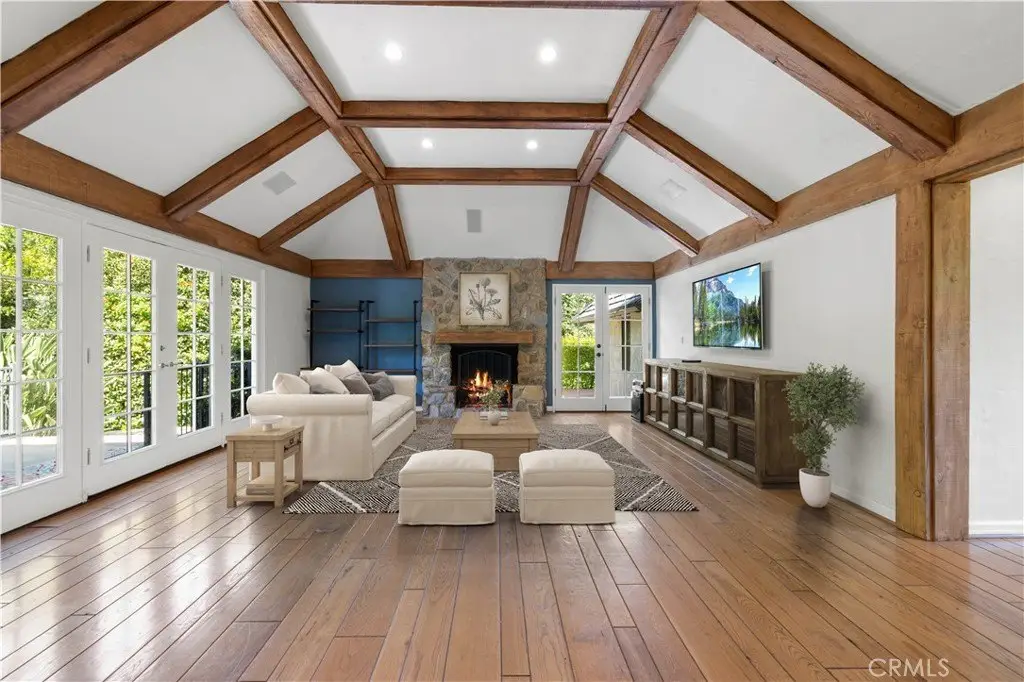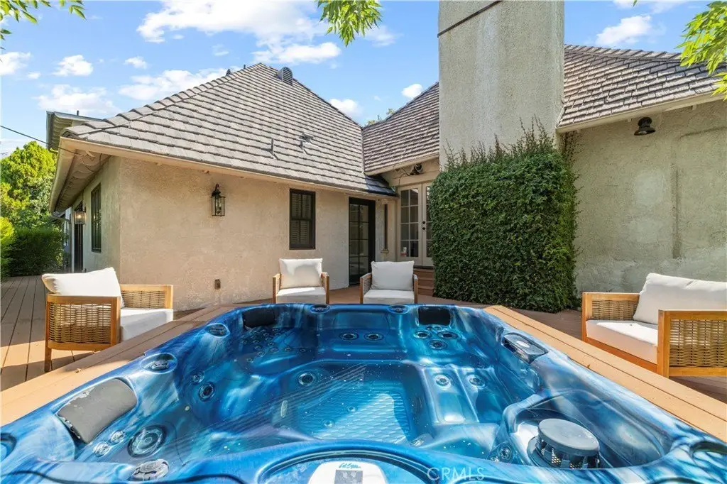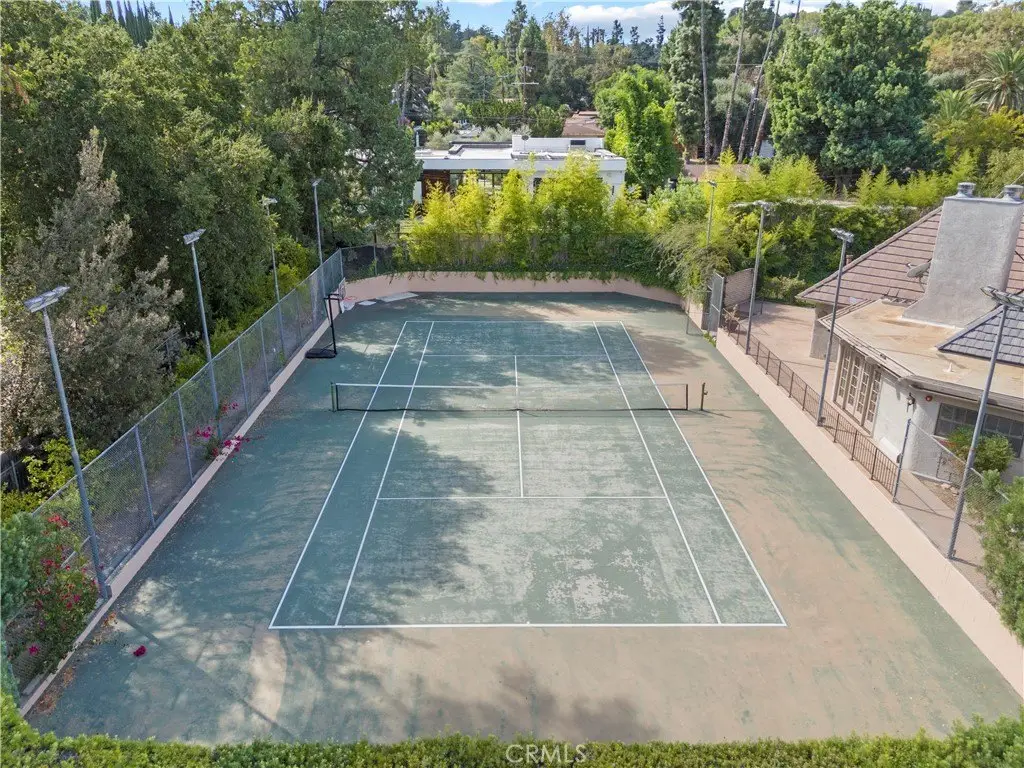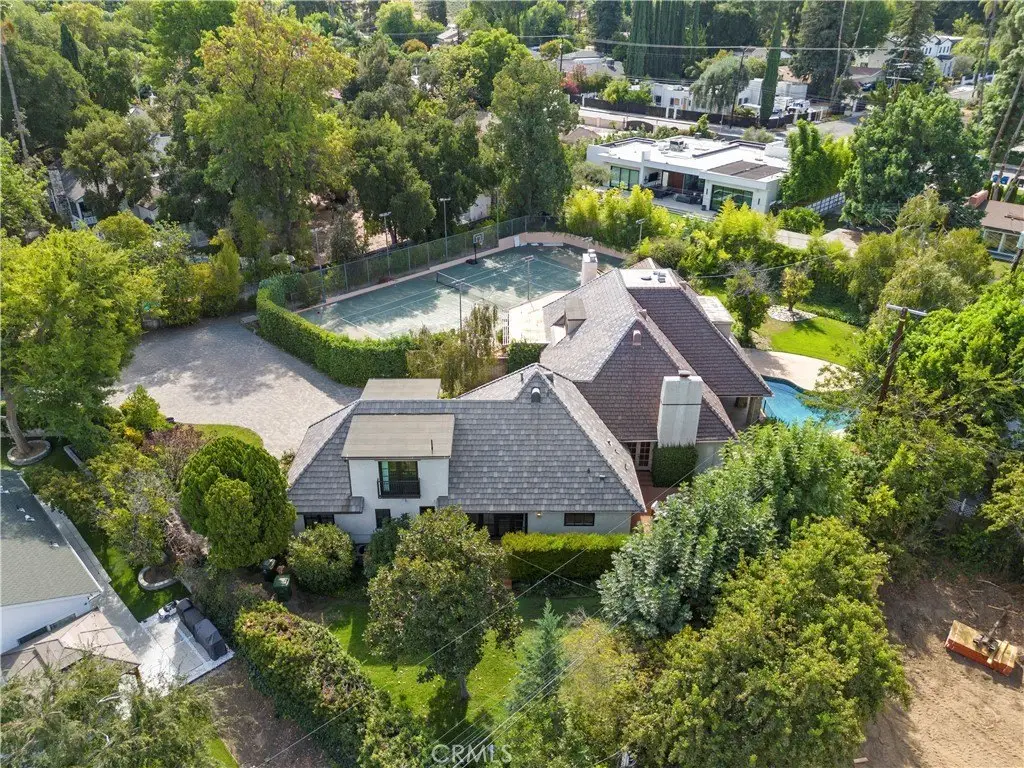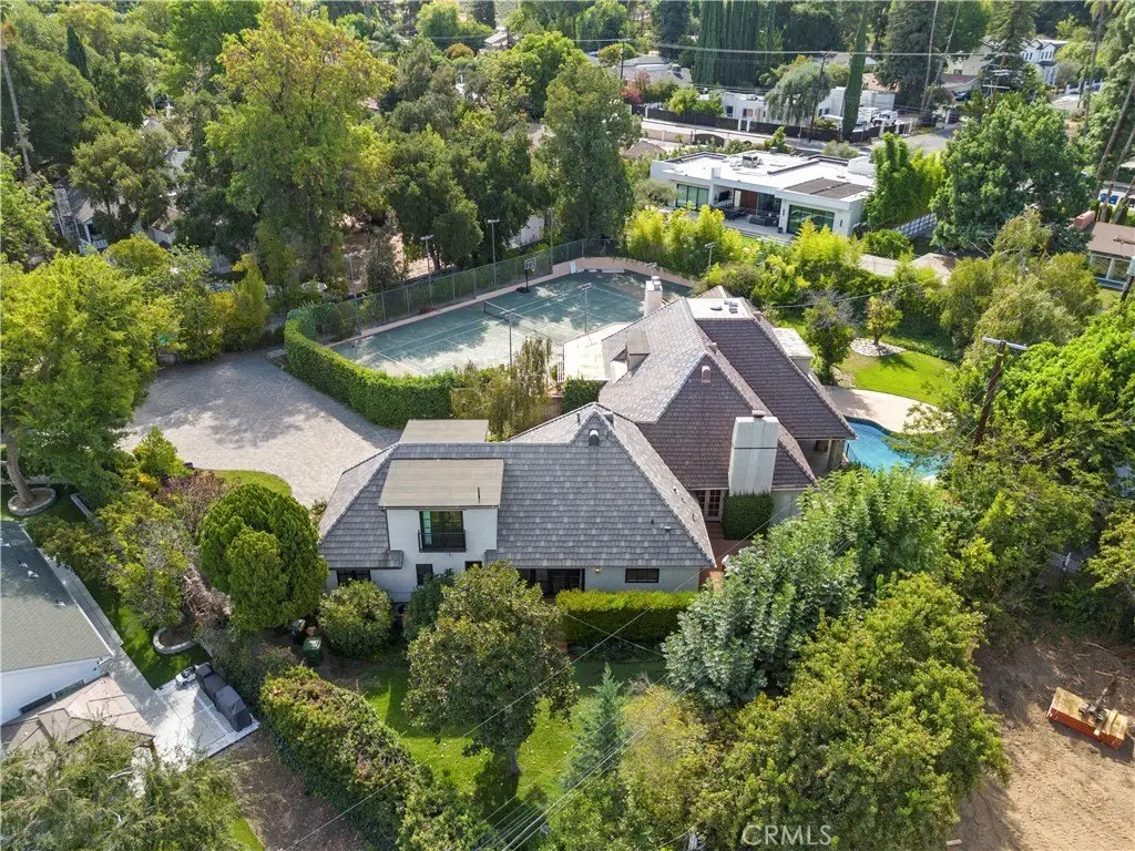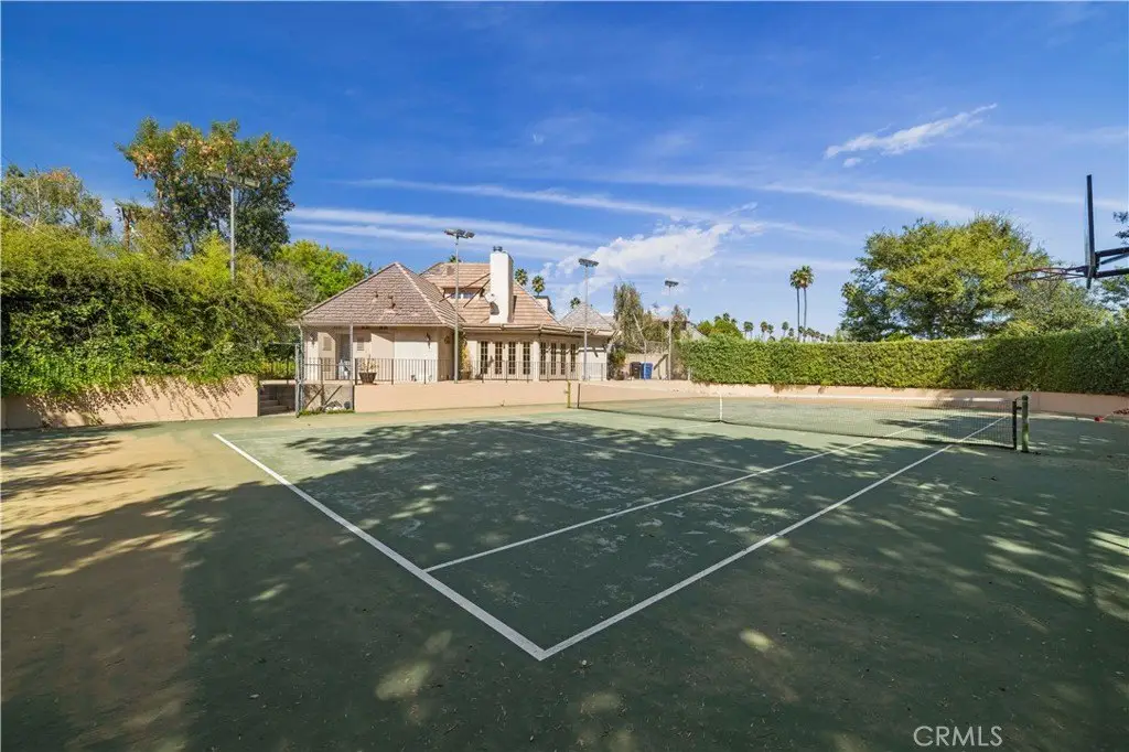 Contact Listing agent Marite Matassa with questions or interest 818-605-1220. Welcome to Château Collier — a private, architecturally iconic Country French estate in Woodland Hills. Nestled behind gates at the end of a quiet cul-de-sac, just south of Ventura Blvd, this remarkable Hal Levitt–designed residence offers timeless elegance, serene privacy, and the rare opportunity to enjoy over 32,000 sq ft of flat, usable grounds in one of the valleys most coveted locations. From the moment you arrive, the estate captivates with its sense of scale and character. A lighted north/south tennis court—easily convertible to a pickleball court—invites you to play, entertain, and stay active at home. The sprawling grounds also feature lush gardens, a stylish pool, and a full-length covered portico that extends across the rear of the home, creating an effortless flow for outdoor living. Whether hosting summer gatherings or enjoying quiet evenings with family, this backyard is designed to be the heart of the home. Inside, character and warmth define the residence. Coffered wood-beamed ceilings, a dramatic floor-to-ceiling stone fireplace, and classic French doors throughout create a refined yet inviting atmosphere. The spacious formal dining room is perfect for memorable celebrations, while the cozy family room and eat-in kitchen encourage daily connection and comfort. Nearly every room opens to the outdoors, blending light, air, and nature into everyday living. The main-level primary suite is a sanctuary of its own, thoughtfully remodeled with a spa-inspired bathroom featuring a freestanding clawfoot tub, oversized shower, and expansive walk-in closet. French doors lead to a private deck and hot tub, offering a retreat-like experience just steps from your bedroom. Adding versatility and tremendous appeal is the newer built two-story ADU with its own address—5200 ½ Collier Place. This thoughtfully designed space is ideal for multi-generational living, long-term guests, rental income, or even a private creative studio. Set in a prime Woodland Hills location, Château Collier is minutes from award-winning schools, the vibrant energy of Ventura Blvd, and some of the best shopping, dining, and entertainment the valley has to offer. Blending architectural pedigree with lifestyle comforts, this estate represents a rare chance to create your forever home in a setting with undeniable charm and potential. Discover the next chapter of luxury living at Château Collier.