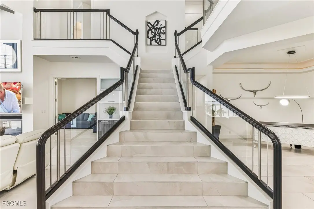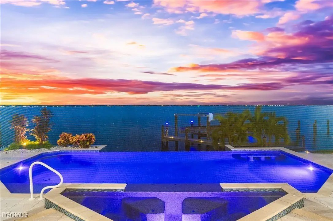 Step into timeless sophistication with this breathtaking riverfront estate, a residence that seamlessly blends modern luxury with effortless coastal living. Meticulously remodeled in 2022 and offered furnished, this home invites you to begin living the signature Florida lifestyle from the moment you arrive. Boasting 5 spacious bedrooms plus a den, 5 and a half luxurious baths, and a 4-car garage complete with an air-conditioned workshop, every inch of this property has been thoughtfully crafted to deliver elegance, comfort, and functionality. A new tile roof, impact-resistant windows and doors, and a chef's kitchen showcasing exquisite quartz surfaces, a waterfall-edge island, and curated cabinetry elevate this home into a class of its own. The expansive great room is drenched in natural light, showcasing panoramic views of the River through walls of glass. A double-sided fireplace anchors the space, creating a warm ambiance ideal for intimate evenings or elegant gatherings. Two grand master suites offer the ultimate in privacy and indulgence-each with a screened in private balcony, spa-inspired baths, freestanding soaking tubs, and custom walk-in closets. Floor-to-ceiling windows frame uninterrupted river views, evoking the serenity of a private resort. An elevator ensures ease of access to every level, while a state-of-the-art media suite-complete with a full bar-provides the perfect venue for entertaining, movie nights, or can serve as a private guest or in-law suite. The outdoor living space redefines relaxation and recreation with a heated infinity-edge pool, spa, and multiple areas for open-air lounging and dining. For the boating enthusiast, this property is a dream come true-featuring a new 20,000 lb. boat lift and a Trex captain's walk dock that accommodates large vessels with ease. Beyond its architectural beauty, this home also presents a remarkable investment opportunity. Operating as a high-end, income-producing Airbnb, it has hosted full weddings and exclusive events, consistently attracting luxury clientele drawn to its blend of elegance, privacy, and waterfront allure. With its captivating riverfront setting, masterful design, and unrivaled amenities, this residence embodies the pinnacle of Southwest Florida luxury living-an exquisite sanctuary offering both an extraordinary lifestyle and exceptional income potential.