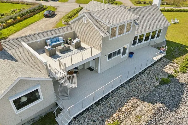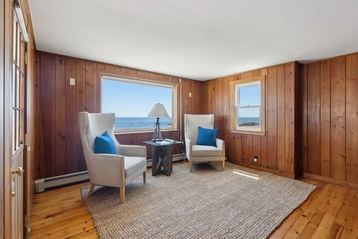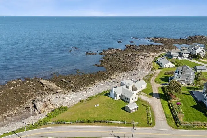 Perched along the pristine shores of Biddeford's coveted coastline with commanding views of the Atlantic, 1 Moore Lane is a rare 0.52-acre oceanfront sanctuary that tastefully blends timeless New England architecture with understated luxury. This distinguished four-bedroom, three-bathroom residence spans 2,458 sq ft and offers refined coastal living in one of Southern Maine's most desirable enclaves. At the heart of the home lies a sun-filled chef's kitchen designed to capture the beauty of the sea at every angle. Outfitted with sleek soapstone countertops, custom maple cabinetry, a Wolf gas cooktop with professional-grade hood, built-in wall ovens, and a walk-in pantry, the space balances form and function with effortless sophistication. The adjoining living and dining areas flow seamlessly to dual oceanfront terraces - ideal for elevated outdoor entertaining against the rhythm of the waves. The sun-drenched family room features soaring vaulted ceilings with exposed beams, exquisite hardwood flooring, and a striking stone gas fireplace that anchors the space with warmth and character. Designed with both privacy and comfort in mind, the home's layout includes a private bedroom wing with an adjacent full bath and steam shower, while the opposite wing offers two additional bedrooms, a full bath, laundry, and a dedicated office with fireplace and direct access to the deck. The renovated primary suite is a coastal haven, where expansive windows frame uninterrupted ocean vistas and natural light pours across warm hardwood floors. A spa-inspired en-suite bath appointed with marble finishes, a frameless glass shower, and polished chrome fixtures add to the design. Each space is generously proportioned and curated to evoke a sense of serenity, elegance, and enduring quality for both quiet retreat and stylish hospitality. Within minutes from the beautiful beaches of Biddeford, Kennebunkport, UNE, local restaurants/bars, & downtown! Make it yours today!
