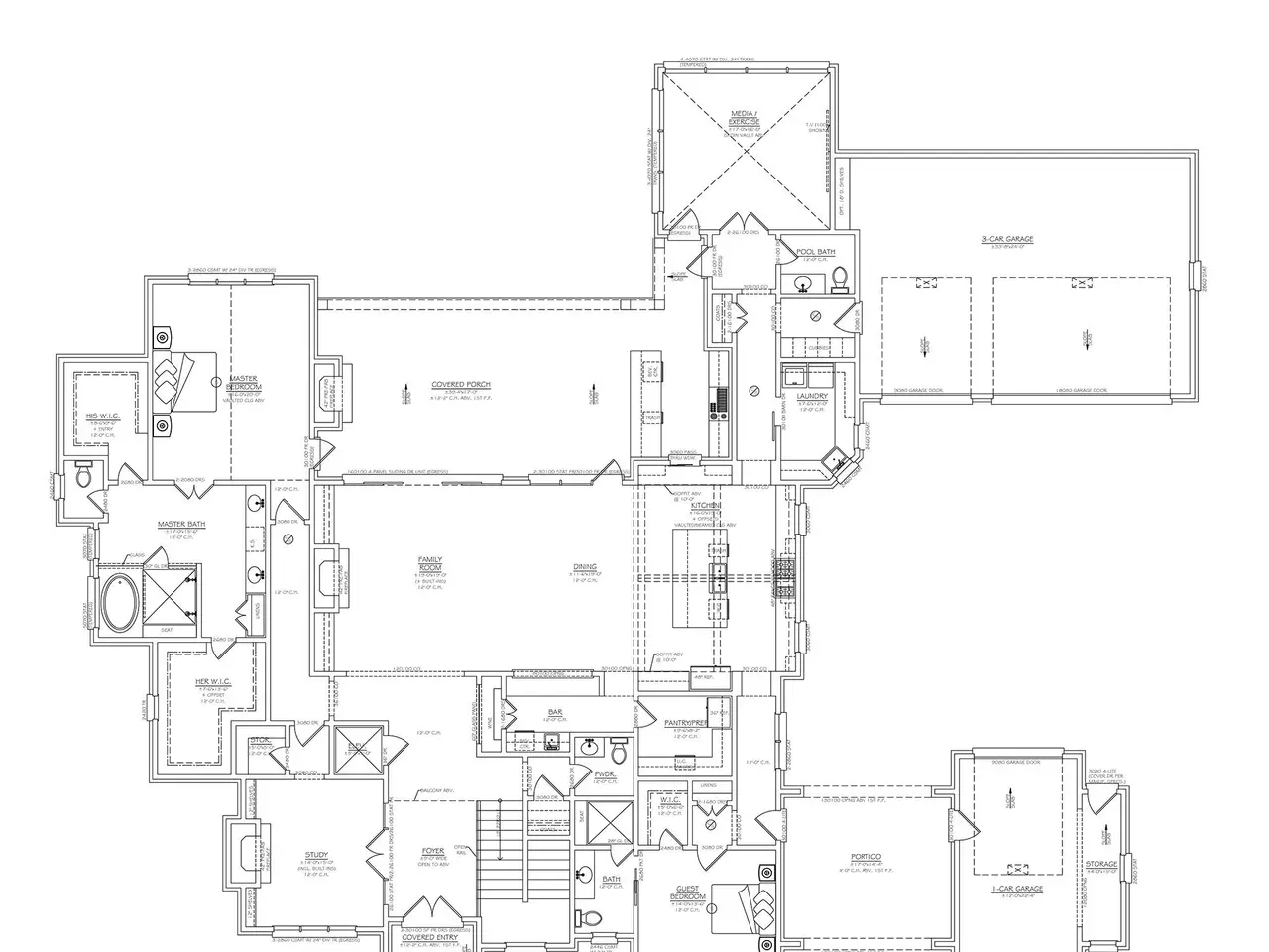 This architectural masterpiece blends sophistication with modern comfort, offering every amenity for a truly elevated lifestyle. Enter through the grand porte-cochere and discover a home that exudes refined elegance--from 10' doors and dramatic ceiling treatments to contemporary designer lighting. The main level is anchored by a lavish Primary Suite with a spa-inspired bath with dual closets, a private Office with a fireplace, and a Media Room with convenient access to a full Pool Bath. The heart of the home is a stunning open-concept Kitchen with a soaring vaulted ceiling with rich wood detailing creates a dramatic focal point, complemented by a striking two-story Venetian plaster vent hood. Culinary enthusiasts will appreciate the top-tier 48" Monogram dual fuel professional range with 6 burners and griddle, as well as the Monogram 36" paneled refrigerator and freezer columns. Sleek inset cabinetry in a warm natural wood finish offers both elegance and practicality, paired with an integrated espresso machine and a dedicated serving area with a pass-through window to the Outdoor Kitchen--perfect for effortless entertaining. A Prep Pantry and Entertainer's Bar complete the space, which flows seamlessly into the Family and Dining areas. Step through sliding glass doors to an expansive covered porch, thoughtfully designed with a built-in Fireplace and Outdoor Kitchen with bar seating--ideal for unforgettable alfresco gatherings. The resort-style Pool, featuring a spa and tanning ledge, invites year-round relaxation. An Elevator leads to the upper level, where you'll find three generously sized Bedrooms with en-suite baths and walk-in closets, a Bonus Room with Wet Bar, an Exercise Room, and a versatile 22x12 Hobby Room perfect for a second Office or Studio. Practical luxuries abound with a well-appointed Laundry Room featuring a sink, soft-close drawers, and abundant cabinetry, as well as enclosed cubbies to keep everyday essentials neatly tucked away.