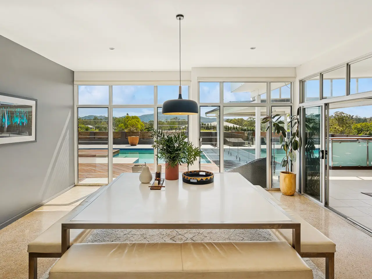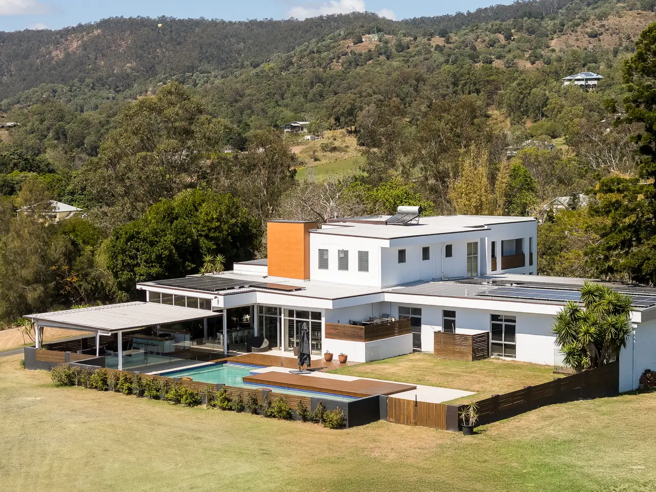 Tucked away in a peaceful cul-de-sac, this exceptional estate is a masterclass in contemporary design and country elegance. Set on 3.7 acres with a prized north-easterly aspect, the property offers a tranquil retreat surrounded by sweeping mountain views and fresh, rejuvenating country air. Just minutes from Samford Village, this stunning home delivers the perfect blend of sophistication, functionality, and rural serenity. Thoughtfully designed for modern family living, the main residence spans six spacious bedrooms, with the master suite forming a private haven on the upper level. Complete with its own living area, luxurious ensuite, and a private balcony framing breathtaking vistas, it's the ideal space to enjoy morning coffee or unwind at sunset. Downstairs, the home transitions seamlessly into relaxed open-plan living. The designer kitchen is the heart of the home, featuring composite stone benchtops, induction cooktop, double oven, and walk-in pantry, all flowing effortlessly to the adjoining living and dining zones. A feature gas fireplace adds warmth and ambience, while the meals area opens to the sparkling in-ground pool, creating a seamless connection between indoor comfort and outdoor enjoyment. Multiple living and entertaining zones, including a formal lounge and media or rumpus room, ensure space and versatility for every occasion. Every element of the interior has been curated with style and purpose. Polished concrete floors anchor the main living areas with sleek modern appeal, while soft carpets in the bedrooms create cosy retreats. Rich Daintree hickory timber flooring adds timeless elegance, enhanced by soaring ceilings and full-length windows that flood the home with natural light and frame the stunning surrounds. Adding further versatility, a second fully self-contained one-bedroom dwelling provides an ideal space for guests, extended family, or potential rental income. This private residence features a full kitchen with composite stone benchtops, gas cooktop, dishwasher, high ceilings, and air conditioning, all finished to the same exceptional standard as the main home. Outdoors, the property continues to impress. The lush grounds offer panoramic views, room for livestock, and endless space for children and pets to explore. A large workshop caters to trades or hobbies, while the multiple garages provide ample storage and parking. This is a property designed to enhance everyday living, a rare blend of beauty, practicality, and lifestyle appeal. Property Highlights: - 6-bedroom architectural residence plus fully self-contained 1-bedroom second dwelling - Designer kitchen with stone benchtops, induction cooktop, double oven & walk-in pantry - Master suite with private living area, ensuite & balcony with stunning mountain views - Multiple living & entertaining zones including formal lounge, media/rumpus room and poolside dining - Polished concrete, Daintree hickory timber and carpeted flooring throughout - Ducted air conditioning, gas fireplace & solar power - 3-car lock-up garage for main house plus 2-car lock-up for second dwelling - Workshop and electric gated entry - Approx. 90,000L water supply & individual bio cycles for both homes - Set on 3.7 usable acres with mountain views and room for livestock Whilst all care has been taken to ensure accuracy, the Selling agents confirm that they cannot guarantee accuracy of the same and accept no liability (express or implied) in the event that any information contained in the document or provided within is inaccurate. The Seller and Selling agent make no representation and give no warranty that the information provided is accurate. Parties must ensure they make their own due diligence enquiries to satisfy themselves about the accuracy of the information. This information provided is indicative only and must not be relied upon unless confirmed by a party through their own due diligence.