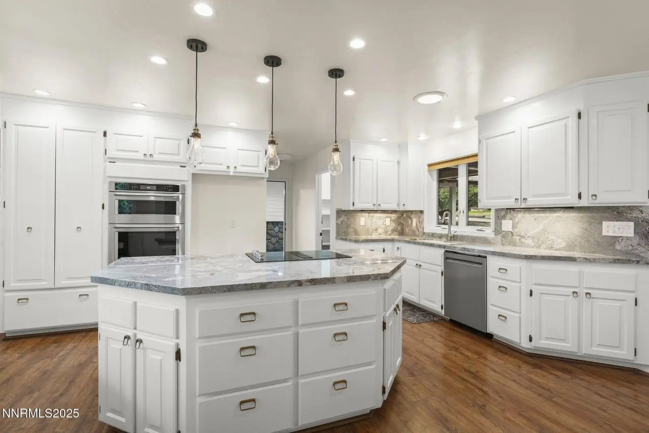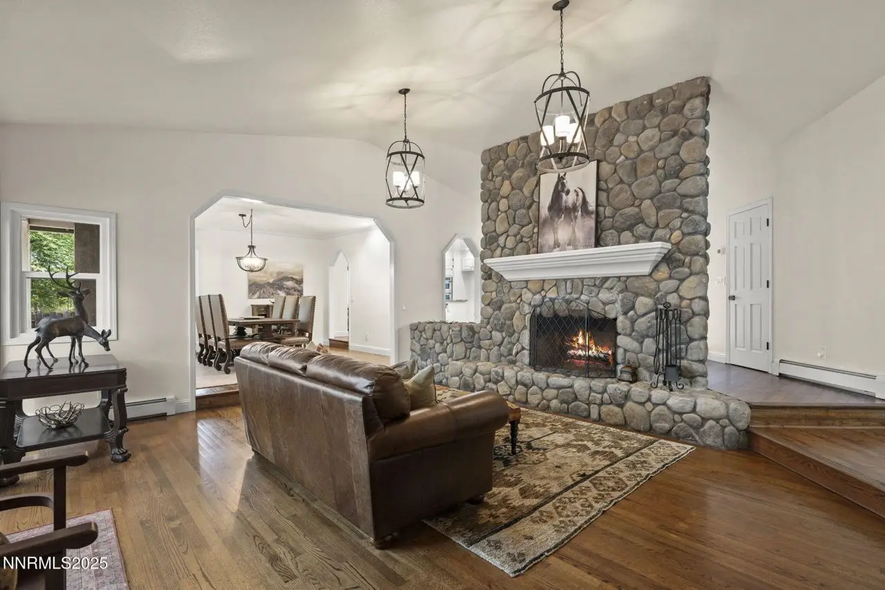 This rare 1-acre lot in the heart of Reno combines timeless charm with extensive modern updates. Featuring 3 bedrooms plus versatile flex spaces - ideal for a home office, gym, or game room - and two separate living areas, the layout is designed for today's lifestyles. A stunning rock fireplace greets you at the entry and creates a cozy centerpiece in the living room. Recent upgrades include fresh exterior paint with updated lighting, all-new windows, luxury vinyl plank flooring, and thoughtfully designed built-ins. The chef's kitchen has been enhanced with updated granite counters, modern appliances, and stylish finishes, while the remodeled primary bath offers a spa-like retreat. Additional improvements such as a new cedar deck, split AC in the primary suite, and re-mortared chimney with caps add to the home's comfort and longevity. Step outside into your private backyard oasis - partially fenced with a charming gate and featuring lush grass, a fire pit, and a pergola. Bring your horses! The barn has been refreshed with a new corrugated tin roof and paint, while upgraded irrigation, re-graveled service road, and two added yard hydrants make outdoor living and maintenance effortless. Located in a mature neighborhood with no HOA! This property offers a balance of privacy and convenience, zoned for highly rated schools and just minutes from shopping, dining, and more.