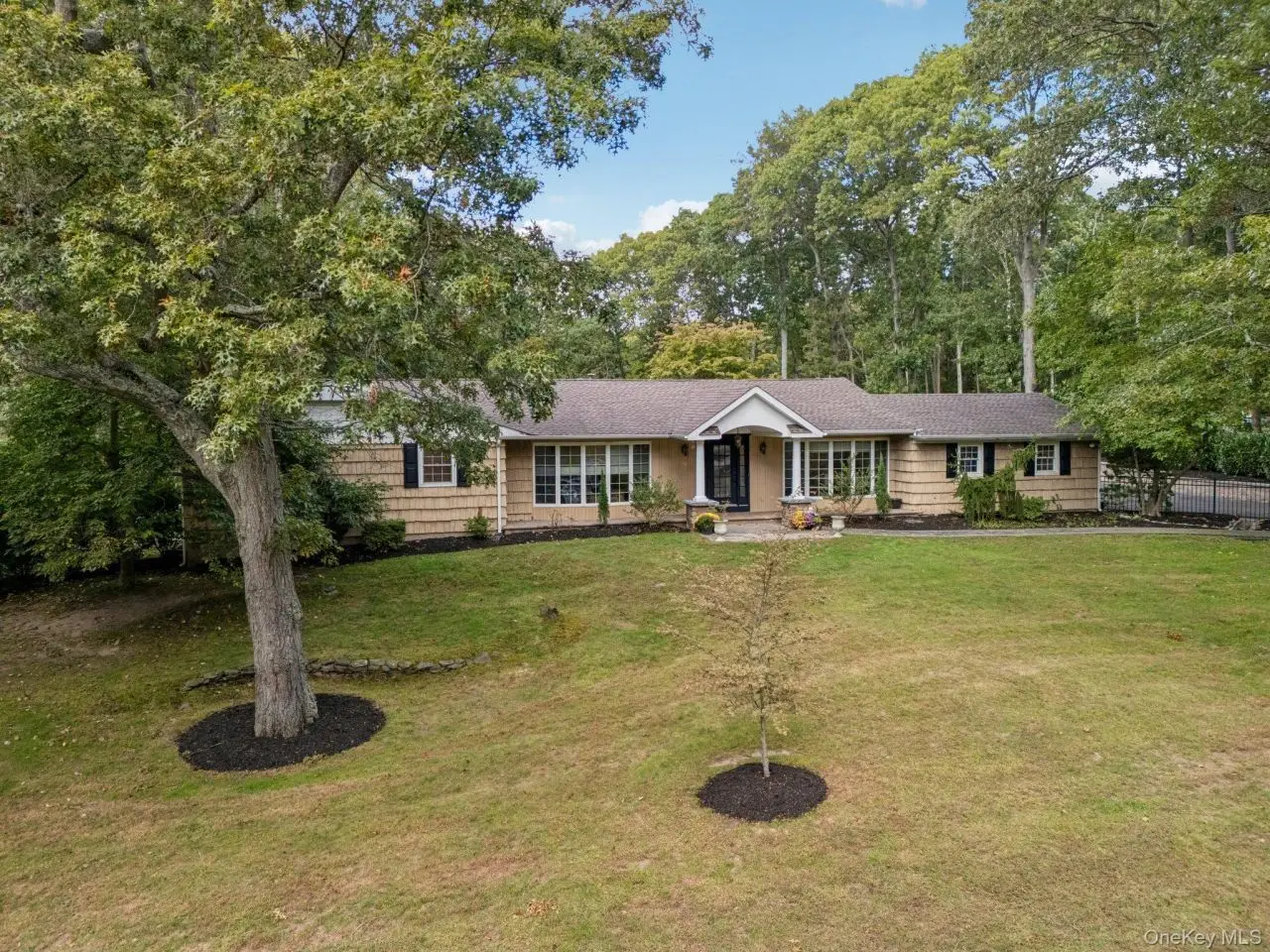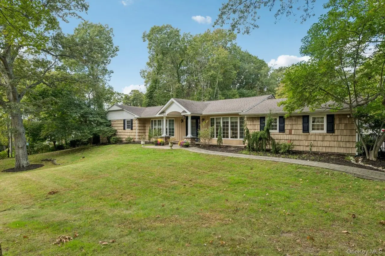 Prepare to fall in love with this stunning home nestled in the exclusive hamlet of Fort Salonga. Located within the highly regarded Kings Park School District, this is a rare opportunity to own a spacious ranch on a desirable lot.Enjoy true single-level living with an open-concept eat-in kitchen featuring granite counters and stainless steel appliances, hardwood floors, a cozy fireplace, and three main-level bedrooms. Step outside to your private oasis on over an acre of landscaped grounds. Relax and entertain with a dedicated garden area and a fenced, heated in-ground saltwater pool.Priced to sell, schedule your appointment soon. This gem will not last!