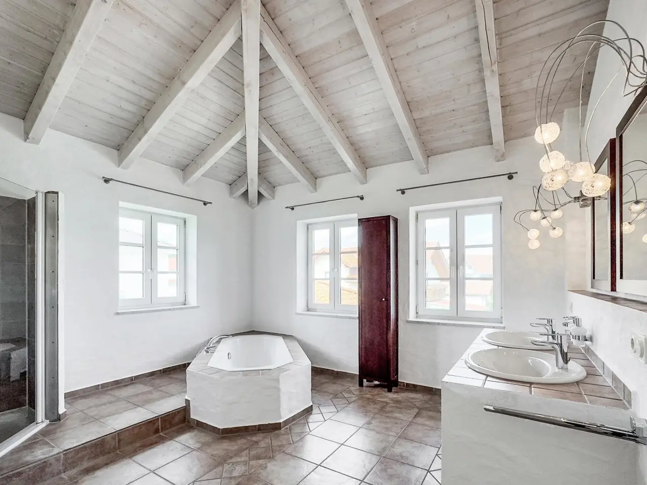 Welcome to a property that combines the lifestyle of Tuscany with the demands of modern living. This prestigious, detached villa with approx. 260 m² of living space offers you a stylish retreat - completely ready to move into and available immediately. Here you can expect not only well thought-out architecture, but also numerous amenities such as a heated outdoor pool, a light-flooded fitness pavilion, a spacious double garage, high-quality materials and a garden to relax and feel good. Even at first glance, the villa impresses with its harmonious, Tuscan-inspired design: Two full storeys under an elegant tent roof lend the house presence and timeless beauty. The classic façade design is complemented by natural stone terraces and a spacious driveway - here you can reside in style. The heart of the property is undoubtedly the open-plan living, cooking and dining area as the communicative center of the house. More than 80 m² of pure space, flooded with natural light thanks to numerous floor-to-ceiling windows. An ornate brick-built stove provides cozy warmth, which extends through the open gallery to the upper floor. The stylish bay window in the dining room opens up a picturesque view of the garden - a special treat at any time of year. From here you have direct access to the spacious south and west-facing terraces. The south-facing terrace in particular, with its modern glass and steel roofing, invites you to enjoy unforgettable summer evenings - outdoor living at the highest level. The kitchen is open-plan yet discreetly separated - perfect for anyone who enjoys entertaining guests or cooking together with the family. Every amateur chef's heart beats faster here: high-quality appliances, gas hob, Teppan Yaki and a well thought-out storage space concept plus pantry leave nothing to be desired. A practical utility room with direct access to the cellar, a guest WC and a stylish vestibule with checkroom round off the first floor in functional terms. The upper floor impresses with its full room height and offers a well thought-out room program: - Master bedroom with walk-in dressing room and direct access to the luxurious master bathroom - Free-standing bath, floor-level shower, two washbasins and separate WC - Two spacious, bright children's or guest rooms - Further bathroom with shower - Study with custom-made fitted wardrobes - perfect for a home office An absolute highlight is the fitness pavilion built in 2010, which can just as easily be used as an office, master bedroom or guest area: With two glazed sides and generous sliding doors, this creates a room that can be used all year round with fantastic views of the pool, garden and house. The adjoining L-shaped terrace is covered and, with water and electricity connections, provides the perfect setting for a hot tub or outdoor kitchen. The 8 x 4 m heated pool blends harmoniously into the garden design - a place for relaxation, sport and joie de vivre. The ensemble is framed by high-quality natural stone terraces that offer a variety of uses - whether sun loungers, lounging or dining in the open air. Perfectly thought out - inside and out: - Completely level plot with wide driveway - Double garage & additional outdoor parking spaces - Professionally landscaped garden with automatic irrigation & own well - Two covered terrace areas for comfort regardless of the weather Another advantage that you can use in the foreseeable future: Currently, traffic from the nearby but invisible B12 is occasionally perceptible in the garden area - a factor that will improve considerably in the near future, however: With the ongoing expansion of the A94 highway further away, which directly connects Munich, Passau and Austria, this route will take over the majority of through traffic in the future. For you, this means: a value-enhancing location development thanks to fast connections, especially to Munich, and significantly more peace and quiet in your own garden in just one to two years' time. Conclusion: A villa for people with a sense of aesthetics and quality of life. This exceptional property is perfect for anyone who wants to combine Mediterranean flair, functional design and exclusive furnishings. Whether as a stylish family home, a prestigious domicile for couples or as a retreat with vacation character - this villa is far more than just a house: it is a lifestyle.