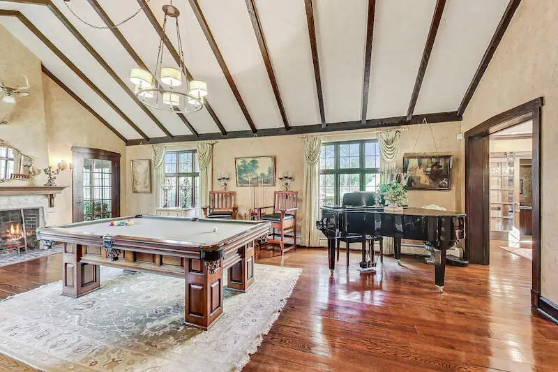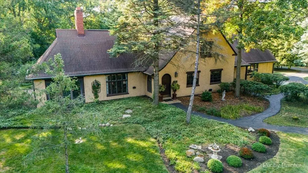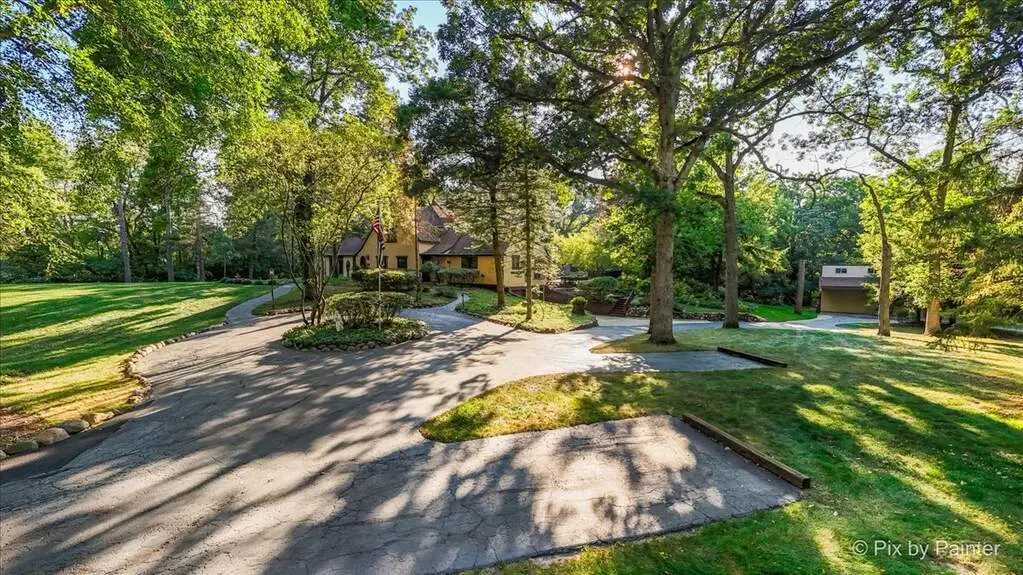 MOTIVATED SELLERS! Prepare to embrace the pinnacle of estate living at Stonegate Manor, a historic and magnificent Georgian country estate situated on 5.5 lush acres in the heart of Crystal Lake. Built circa 1935, this property offers a blend of timeless appeal, architectural beauty, and breathtaking views. As you approach via the classic gated entrance, a private driveway lined with age-old oaks leads to this secluded sanctuary. The elegant flagstone turnabout welcomes guests, leading to two paved entrance paths that direct them to the arched main doorway. Two front parking spaces sit adjacent to the entry. A second turnabout provides access to the pole barn, offering space for oversized vehicles such as motorhomes and trailers. This grand estate is an architectural treasure, rich in history and stunningly preserved. The 4-bedroom, 4-bathroom home spans 4,500 square feet of living space, with three wood-burning fireplaces adding warmth and character. The home retains original 1930s features, including hardwood floors, stair railings, and light fixtures, maintaining its historic charm. The master suite is a private retreat, complete with a fireplace, balcony, and a custom ceiling that creates an inviting space for relaxation. At the heart of the home is the massive gourmet kitchen, featuring a granite-topped island, commercial cooking equipment, vaulted ceilings with open barn wood beam gables, a wet bar, and ample space for entertaining. Modern updates, including new air conditioning and heating systems, dual water heaters, a septic system, radon mitigation, and advanced water purification, ensure comfort while seamlessly integrating with the home's vintage character. The estate offers both forced air and baseboard heating for year-round comfort. The finished portion of the basement includes a 24 x 24 den and a gym, offering additional space for wellness and leisure. The unfinished portion includes a mudroom, a tack room, and updated mechanicals next to the original coal chute. The attached two-car garage, once the carriage house, provides indoor parking, with the antique fire door offering a link to the estate's heritage. Outdoor living is equally impressive. Stonegate Manor features gardens, original 1930s stone walls, a poolside entertainment courtyard, flowing patios, and multi-level decks. The 18 x 36 in-ground pool is perfect for warm summer days, while the koi pond adds tranquility. The three-car detached garage/pole barn provides space for over six vehicles, ideal for car enthusiasts or hobbyists. For equestrian enthusiasts, the property is zoned for horses and features ample grounds for horseback riding or additional facilities. Remnants of the original pastures remain, and the pole barn could easily accommodate horse stalls. Nearby hiking trails add to the recreational opportunities, making this estate not just a home but a retreat. Stonegate Manor is ideally located minutes from downtown Crystal Lake, offering both seclusion and convenience. The property is a short drive to Metra stations for easy access to Chicago, as well as close to shopping, dining, and award-winning schools. The nearby Three Oaks Recreation Area provides outdoor activities, including kayaking and hiking. This estate, with its history, stunning features, and proximity to amenities, presents an extraordinary opportunity for a discerning buyer. Whether you're looking to raise a family, entertain, or embrace a peaceful lifestyle, Stonegate Manor is the perfect place to put down roots and create lasting memories. Don't miss this rare chance to own one of Crystal Lake's most iconic homes. **This home has been featured as a Dream Home with the Chicago Tribune and aired on nationally televised show: The American Dream in 2025! **