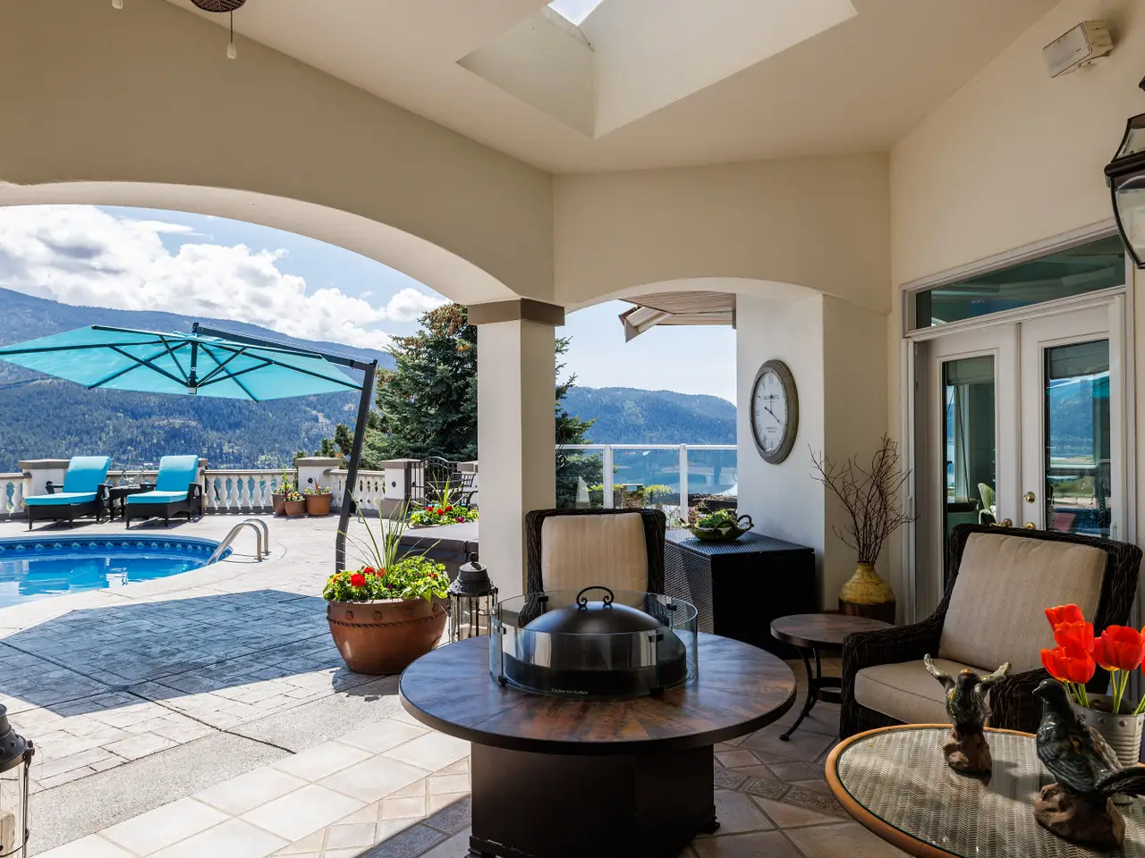From the moment you arrive, breathtaking surroundings. A park-like setting offering luxury and privacy with 180-degree lake views of Kalamalka Lake! Find yourself relaxing in many of the patio areas overlooking the lake. Sprawling four-bed, four-bath Rancher with views from every room. Tuscan-inspired design with timeless elegance. Indoor/outdoor living with outdoor kitchen, pool, hot tub, fireplace, Bocci court, firepit, garden pond and more. Chef's Kitchen has high-end appliances and granite countertops, formal dining, elaborate living room and family room that features crown moldings, fireplaces, recessed ceiling lighting, patio doors, large oversized windows, spacious master bedroom with cozy fireplace, relax in the bathtub with unobstructed Kalamalka Lake Views. Triple-car garage and lots of parking with tree-lined driveway entering over twenty acres of gardens and natural landscapes. Measurements taken from I-Guide. Please verify if important. First time on the market. Close to Rail Trail, Boat Launch, Predator Ridge, Sparkling Hill and twenty minutes to airport. Call today to book your tour of this Masterpiece.