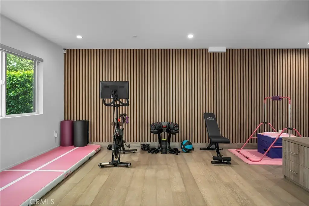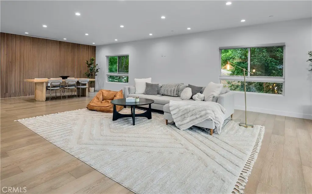 Elevate your everyday experience with this brilliantly designed living space that blends luxury with sleek functionality. Every inch of this home has been thoughtfully designed with custom, European-inspired millwork and architectural wall treatments that balance modern minimalism with depth and texture. The layout is equally impressive, starting with an unmatched entertainment level spanning forty-four feet of soothing ambiance from softly sunlit windows and a statement-making backdrop of white oak slats that adds organic depth to its modern minimalist vibe. An open dining space has room for your biggest dinner gatherings. It flows to a pristine kitchen with European-style slab cabinetry finished in luminescent lacquer for an ultra-modern aesthetic and clean lines, yet also functional with easy cleaning and deep, soft rolling drawers with room for all your favorite chef's toys. Upstairs, you'll find an expansive primary suite and a generous walk-in closet fully outfitted with custom organizers for maximum efficiency, and a luxurious en-suite bath for maximum relaxation. A floating double vanity with a natural wood veneer enhances the airy spa-like vibe and seamless drawers, maintaining the home's minimalistic design. The freestanding oval soaking tub, set against a textured accent wall, creates a spa-worthy focal point that invites long, luxurious soaks. Downstairs, you'll find the perfectly versatile room to be reimagined to that unique space you've been dreaming of; an in-home movie-theatre room, a family fitness gym, a bowling game room with bar, or even a convenient in-home business consult, and the freedom to reimagine it as your needs evolve. The three-car garage wasn't left out of this home's noteworthy design. Featuring EV parking, two entrance options, and a full-view garage door with frosted glass panels for a natural sunlit garage-glow that you never knew you needed. Manicured privacy hedges complete the corner-lot curb appeal, making this home a perfect blend of design and comfort for an elevated lifestyle.