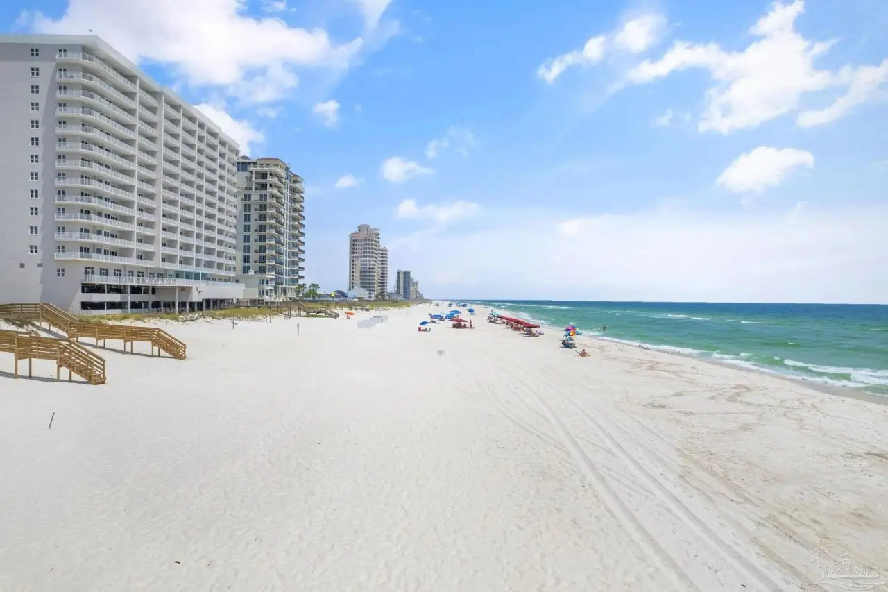 Welcome to your dream Beach ESCAPE on the west end of Windemere-where stunning Gulf views meet serene privacy. This beautifully furnished 4-bedroom, 4-bath condo offers the perfect blend of coastal elegance and comfort, ideal as a vacation retreat or income-generating investment. This WONDERFULLY MAINTAINED condo residence has been out of the rental pool for 9 years and it shows in the condition. It has 10' ceilings, stainless-steel appliances, white cabinets throughout, tile floors in all living areas and bathrooms, plantation shutters, and coastal decor and comes with a covered GARAGE SPACE. There are TWO PRIMARY GULF FRONT suites with king beds...one bath has dual vanities, jetted tub and a separate shower and the other dual vanities, oversized garden tub/shower combo and water closet. Every bedroom features an en-suite bath, including two additional guest suites with queen beds and private bathrooms...one with a large vanity and shower and the second with a shower/tub combo. There is a separate laundry room, abundant storage inside and also includes two storage rooms on the breezeway approx 4' x 4' in size. Enjoy the spacious wrap-around balcony to soak in the sights and sounds of the Gulf. The Updates: HVAC (2018) with new compressor (2025), dishwasher and water heater (2023) and more. The Windemere complex boasts 300' of sugar white sand beach, features a swimming pool on the 3rd level, hot tub, exercise room, 1500 square foot conference room with kitchen, 3 high speed elevators as well as a full-time maintenance department. And with the new bike/walk path along Perdido Key Dr, you can sun on the beach or head to nearby restaurants and shops. Rental projections are $78-123K gross per year depending upon usage. Don't miss your chance to own a slice of paradise!