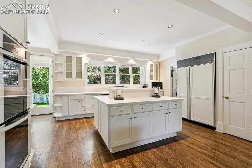 This is a once-in-a-lifetime opportunity to own Belle Cottage, a stately residence steeped in history and timeless craftsmanship. Ideally situated on a private, gated corner lot in the prestigious Broadmoor neighborhood, this elegant estate is surrounded by lush, mature landscaping and manicured gardens. A sweeping veranda gracefully wraps around the front and side of the home. Step through the beveled-glass front door into a magnificent foyer and hallway that immediately set the tone for the residence. To one side of the foyer, a handsome office awaits, the leaded-glass windows on two walls that bathe the room in light with garden views. Built-in bookcases and a private ½ bath enhance both elegance and functionality. An elegant arched opening leads into the gracious living room, where a marble-surround fireplace, bay windows, and French doors open to the veranda and lush grounds. The formal dining room is adorned with hand-painted faux-marble walls, classic chair rail and crown molding, a generous bay window, built-in cabinetry, and a fireplace that lends warmth and sophistication. At the heart of the home is the inviting kitchen, casual dining nook, and cozy family room. Custom cabinetry, a center island, and a gas fireplace create the perfect environment for both everyday living and entertainment. Upstairs, the primary suite offers French doors opening onto a private balcony. The luxurious 5 pc en-suite bath provides a spa-like retreat. Four additional spacious bedrooms, three baths, a tiled laundry room, and an additional family room with a built-in entertainment center is ideal for guests, teens, or extended living. The third level has two generously sized bedrooms, a full bathroom, and an additional playroom/bonus room or storage. Completing this remarkable estate is a full unfinished basement, two-car garage, storage shed, and a circular driveway for both convenience and curb appeal.