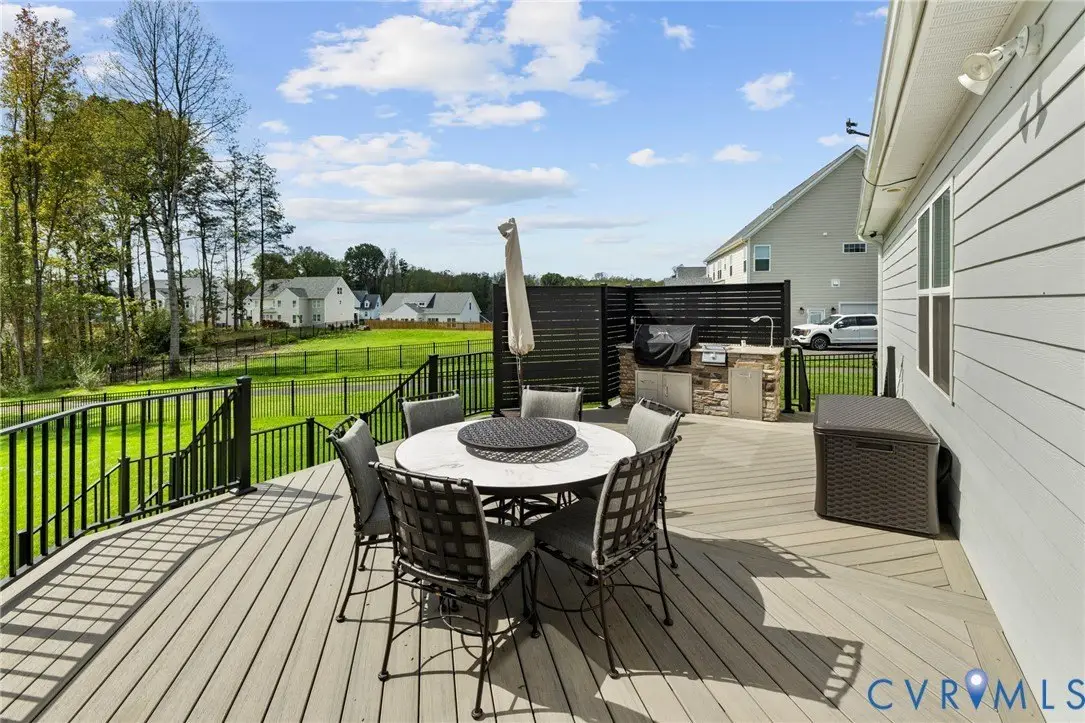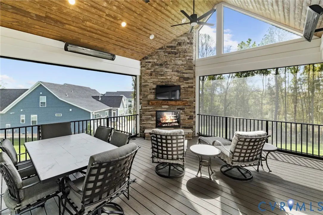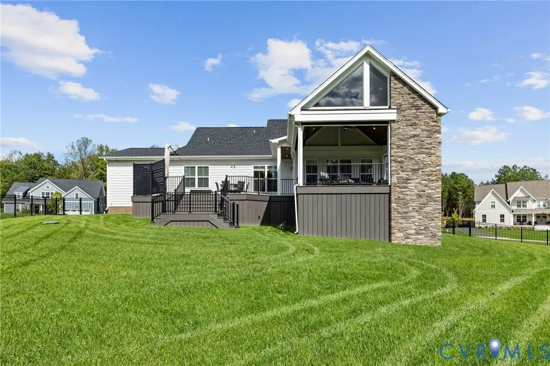 This home is loaded with custom upgrades and thoughtful details throughout. Cabinetry additions include a library with built-ins and desk, full-height mudroom and laundry cabinets with crown, drying rods, shoe storage, and utility sinks. The chef's kitchen offers quartz counters, Wolf ovens, SubZero refrigerator/freezer, Cove dishwasher, and modified cabinetry with undercabinet lighting. Closets feature solid shelving and a custom primary suite system. The primary en-suite features a walk-in shower, double vanities, and a double-door linen closet. Three bedrooms are located on the first floor, including the primary. Premium whole-house painting by H.J. Holtz includes epoxy garage floors and finished trim. Lighting upgrades LED fixtures, fans, mirrors, and dimmers. Outdoor living shines with a pavilion, stone fireplace, retractable enclosures, heaters, deck with chef's kitchen, lighting, and storage. Added value: Generac whole-house generator, oversized island, encapsulated climate-controlled crawlspace, two-zone HVAC, metal shed roofs, extensive recessed lighting, large walk-in storage space above the two-car garage, and 50 AMP exterior hook-up.