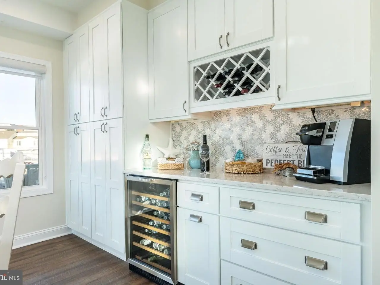 Your North Wildwood Sanctuary by the Sea! Step inside and feel the calm of coastal living wash over you. This stunning, fully updated North Wildwood retreat perfectly captures the magic of life by the ocean - where morning sunlight glimmers off the waves, the scent of salt air drifts through open doors, and every day feels like a seaside escape. For the current owners, this has been a peaceful haven - a place to gather with family, unwind after long days, and wake up to the soft sound of the surf. With 4 spacious bedrooms (including 2 luxurious master suites), 3 full baths, and 2 powder rooms, plus a finished lower-level suite with kitchenette and private entrance, this home blends comfort, elegance, and functionality in every square foot. The heart of the home - a bright, white chef's kitchen - is an entertainer's dream, featuring a 7.5' quartz island, Frigidaire Professional appliances, double pantries, an exquisite designer backsplash, and a coffee bar with a plumbed-in Keurig and wine fridge. It's the perfect place to cook, connect, and create memories. Open the sliders and let the sea breeze in as you relax on one of four expansive decks - three with sweeping ocean views - where sunrises are breathtaking, and Friday night fireworks feel close enough to touch. Upstairs, the primary suite is your private retreat in the sky, with panoramic ocean views and a marble spa bath designed for pure indulgence. Every detail of this home speaks of quality and care - from the gas fireplace with full stone surround to the custom window treatments, luxury vinyl flooring, and beautifully updated marble baths. The fenced backyard is ideal for entertaining, featuring a built-in stone dining table, outdoor shower, and lush new sod with irrigation. You'll love starting your mornings with coffee on the back deck, strolling across the street to Russo's Market, and being just steps from the beach and boardwalk. This is where luxury meets laid-back coastal charm - where every moment feels like vacation and every breeze reminds you you're home. Don't miss this rare opportunity to own a piece of paradise. Come experience your private beachside oasis - your North Wildwood dream home awaits!
