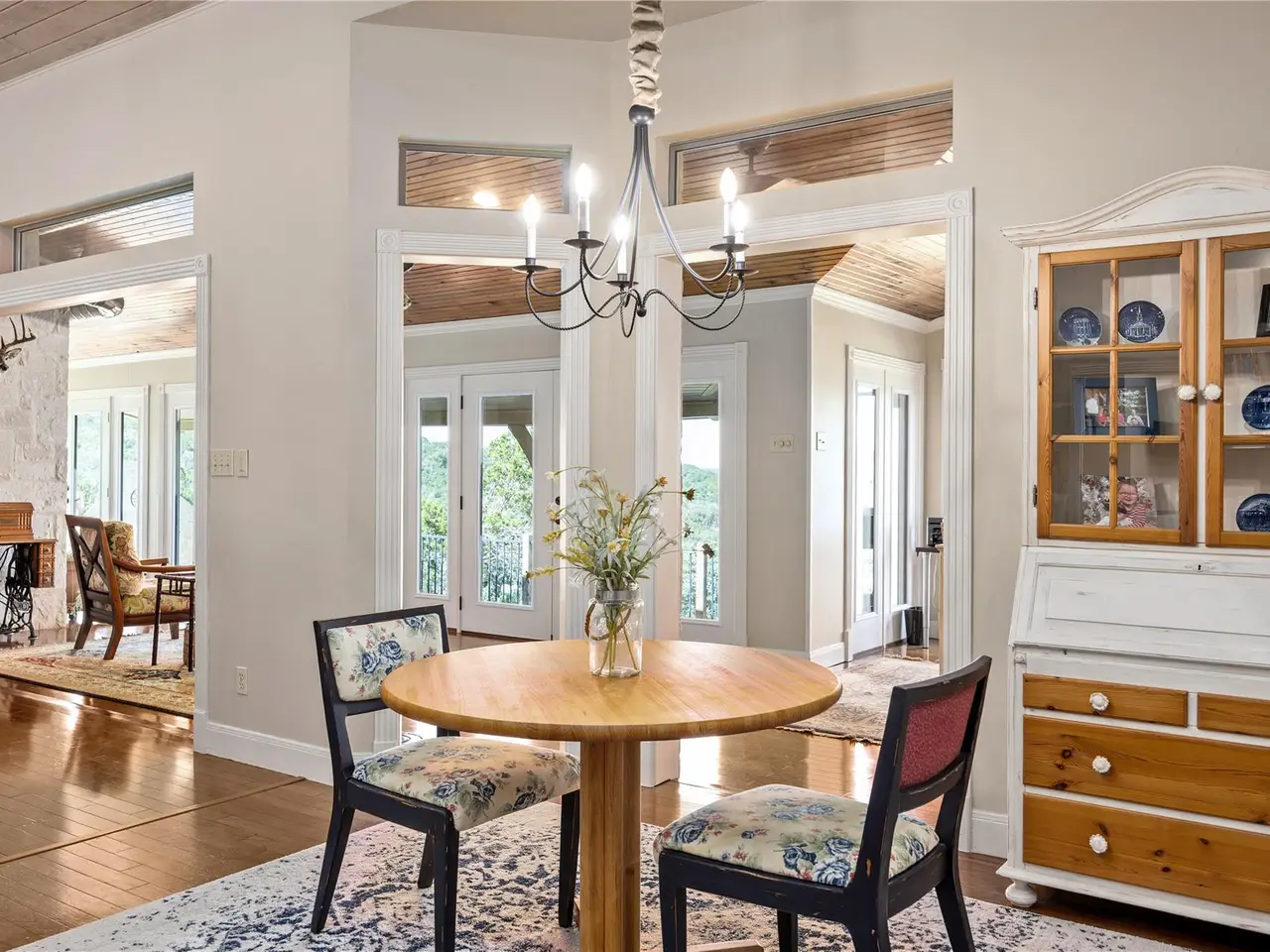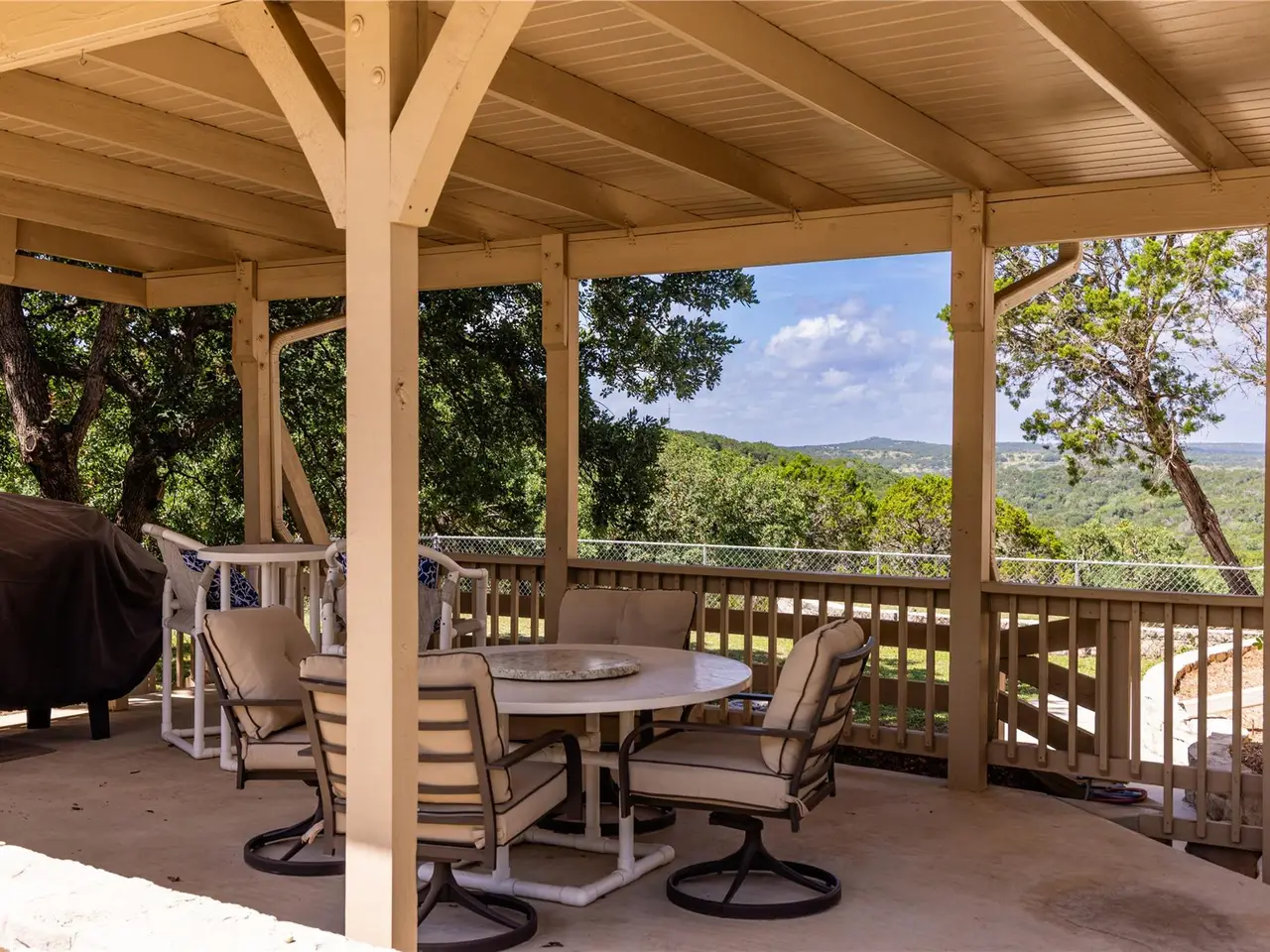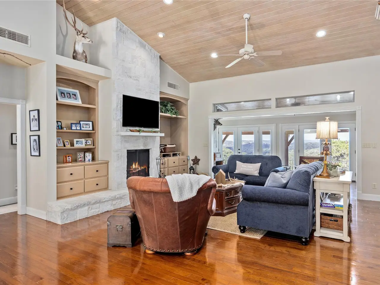 Enjoy peaceful privacy with panoramic views at this beautiful two-story rock home on 6+ acres in Cave Canyon Springs, Hunt. With an open living floor plan, stone fireplace, high ceilings this home features 4 bedrooms and 3 and a half baths. The second floors features a flex space that could be a media room, office/ study or guest suite with tons of storage. Enjoy stunning valley views from the covered porches, an outdoor fireplace, a large climate-controlled shop, and a charming cottage currently used as an exercise room. Neighborhood amenities include private gated access to one of the most beautiful and scenic sections of the Guadalupe River, as well as a private 96-acre Wilderness Park for hiking. Come see this high-quality, beautiful home. Just bring your furniture and start enjoying the relaxing tranquility of the Hill Country.