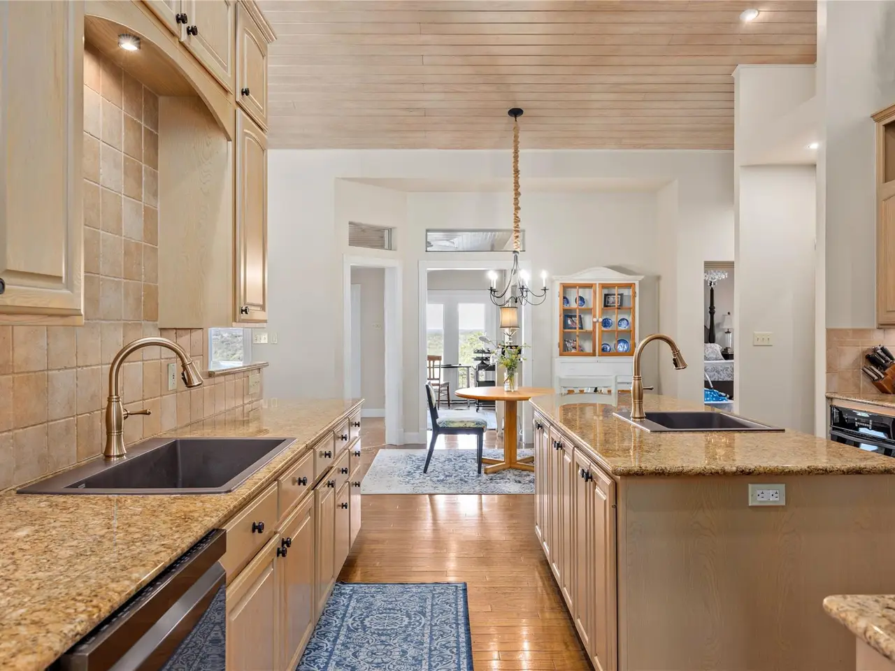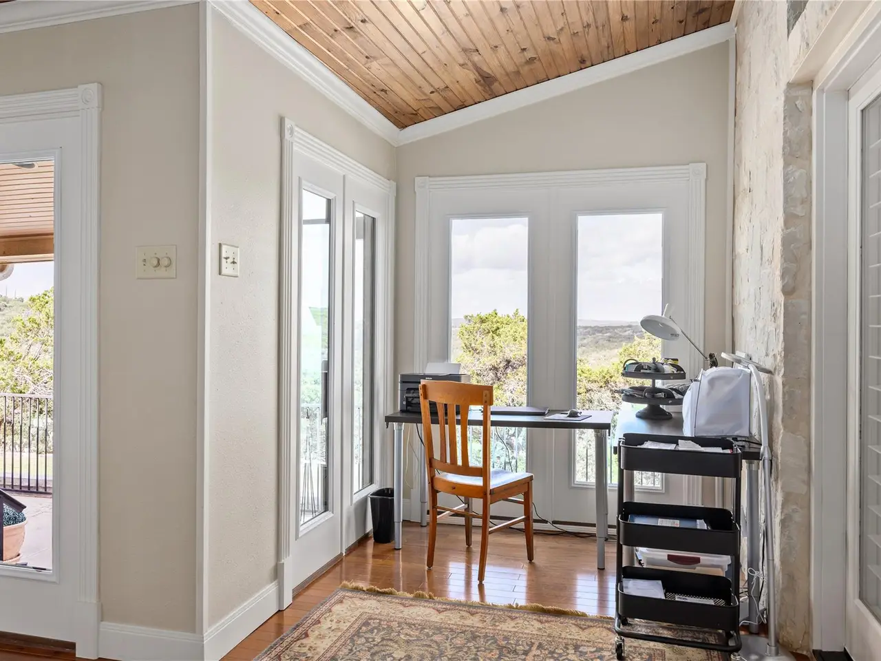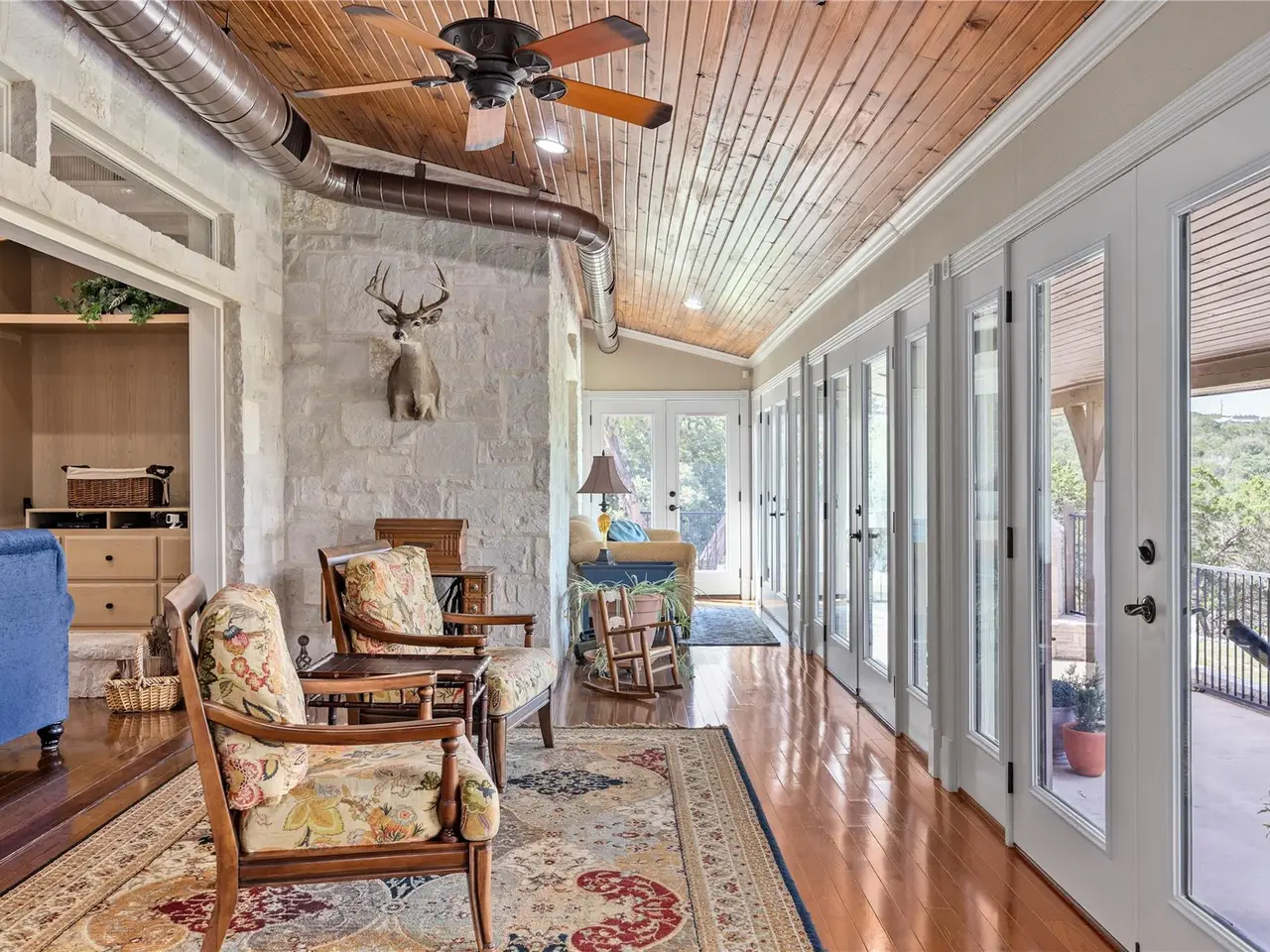Enjoy peaceful privacy with panoramic views at this beautiful two-story rock home on 6+ acres in Cave Canyon Springs, Hunt. With an open living floor plan, stone fireplace, high ceilings this home features 4 bedrooms and 3 and a half baths. The second floors features a flex space that could be a media room, office/ study or guest suite with tons of storage. Enjoy stunning valley views from the covered porches, an outdoor fireplace, a large climate-controlled shop, and a charming cottage currently used as an exercise room. Neighborhood amenities include private gated access to one of the most beautiful and scenic sections of the Guadalupe River, as well as a private 96-acre Wilderness Park for hiking. Come see this high-quality, beautiful home. Just bring your furniture and start enjoying the relaxing tranquility of the Hill Country.