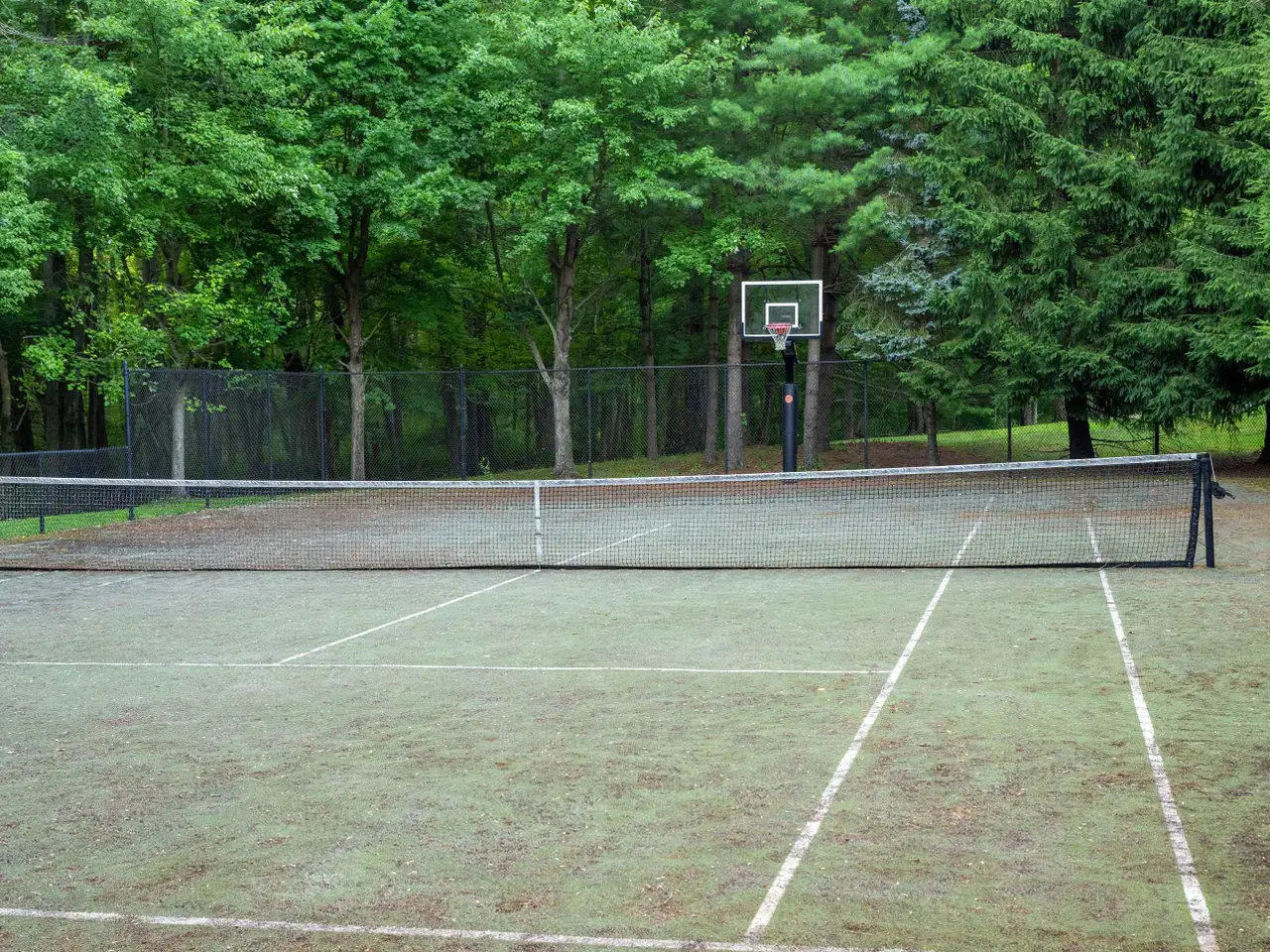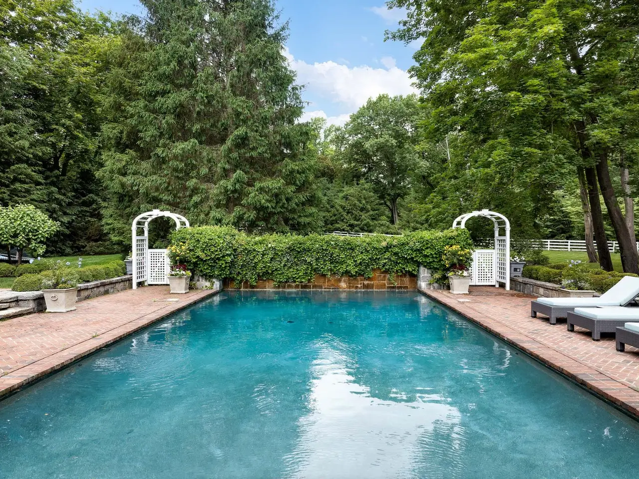 Breathtaking lake, waterfall and nature views enhance this architecturally stunning, sundrenched Colonial with unrivaled amenities on 19.69 private acres-best location in Conyers Farm. On the market for the 1st time, this custom designed home by architect Robert Lamb Hart takes full advantage of the beautiful setting with walls of windows overlooking the lake in a stunning open floor plan. Easy access to 55' pool, in-ground spa, outdoor kitchen, fireplace, 2-bath pool house, tennis court and 125-yard par 3 golf hole. Showcases expansive living room, dramatic 2-story family room open to striking 15' high kitchen and breakfast room, wood-clad office, 6 bedrooms, plus 1-bedroom apartment with office and private entrance, lower level with practice squash court, gym, rec room, 24-hour security.