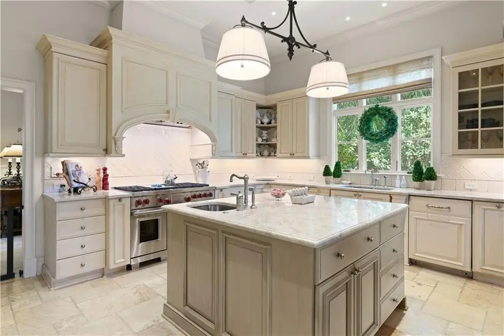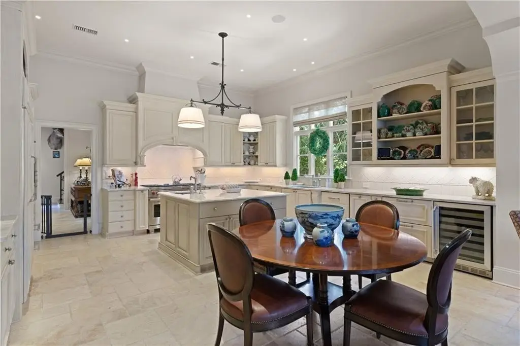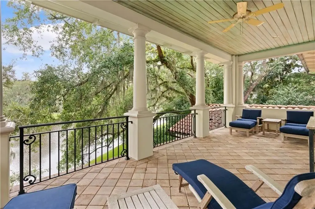 Luxurious Ocean Forest living awaits at 541 Forest Road. This stunning lakeside cottage, with Mizner influences throughout, is made for living and entertaining. The first level plan is highlighted by the two story foyer, which opens to the living room, family room and kitchen. All have lake views, and the kitchen features a center island with sink, Wolf and Sub Zero appliances and loads of custom cabinetry. Behind this space is an oversized laundry and party prep area, with a full size Viking fridge and Sub Zero wine fridge, plus an additional work sink and lots of extra storage. The family room has beamed ceilings and a cozy fireplace, one of three in the home, and has lake views. The dining room is formal and lined with built-ins. The primary bedroom, also with lake views, features a sitting area, an oversized bath with double sinks, shower and soaking tub and possibly the largest closet of any Sea Island cottage. Complete with packing table, built-ins and tall windows for light, this is more a repository than a closet. Upstairs via the beautiful wrought iron staircase, the second level offers another family room with views and four bedrooms – two that share a jack and jill bath and two with full en suite baths. Above the two car garage with storage is an additional suite. Currently serving as an office, this room features pecky cypress accents, the third fireplace and another full bath. Other notable features of the cottage include concrete block construction with stucco coating, clay barrel tile roofing, lakeside patios on both levels, outdoor cooking area and a whole house generator. This is the best of Ocean Forest living in a home that was made for living – come see for yourself at 541 Forest Road.