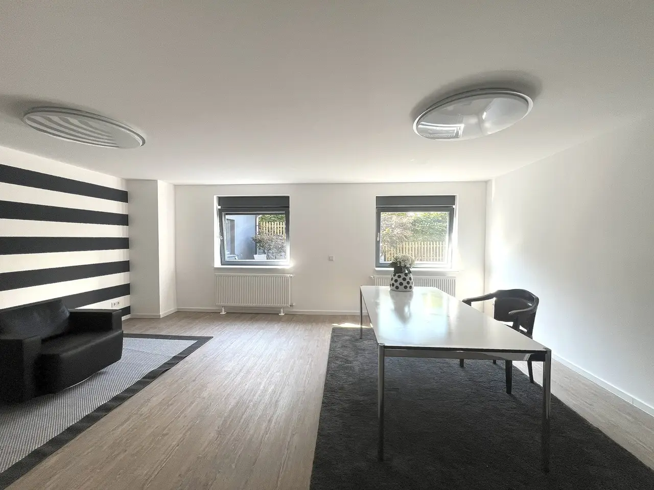 Welcome to this spacious bungalow which, with a living space of approx. 205 m² spread over two levels and a plot area of approx. 450 m², offers a modern home with comfortable furnishings. Built in 1976, the house underwent extensive refurbishment between 2015 and 2018 and has been in a contemporary condition ever since. The bungalow impresses with its well thought-out room layout, which offers a wide range of possible uses. The central living and dining area forms the heart of the house. Here, spaciousness and cosiness combine to create a harmonious living ambience that invites you to enjoy convivial evenings with family or friends. The open-plan kitchen fits perfectly into the room concept and was also renovated as part of the refurbishment. Large windows flood the living spaces with plenty of natural light and create an inviting atmosphere. Direct access to the terrace extends the living space into the countryside in summer. The plot has been designed to be easy to use and offers space to relax as well as opportunities for gardening or playing outside. As part of the modernization, key aspects such as the electrics, plumbing, windows, interior design, bathrooms and floor coverings were completely renewed. The central heating system from 2005 reliably ensures a pleasant living climate all year round. The energy efficiency of the property is also very good thanks to the measures taken in recent years. Further features include a practical utility room, a separate guest WC and ample storage space on the garden level. The garden level itself has an additional separate entrance from the outside. Ideally suited as a home office, for a self-sufficient family member or as an addition to the first floor. The high-quality choice of materials and careful workmanship are noticeable in all areas. The floors were finished with easy-care, durable coverings. Subtle colors and clearly structured rooms underline the functionality of the house without sacrificing homely accents. The building is located in a quiet residential area with easy access to shopping facilities, schools and public transport. The bungalow is ideal for families and anyone who appreciates spacious living on one level. Naturally, this timeless residential ensemble has two outdoor parking spaces and a storage room that can be accessed from outside.