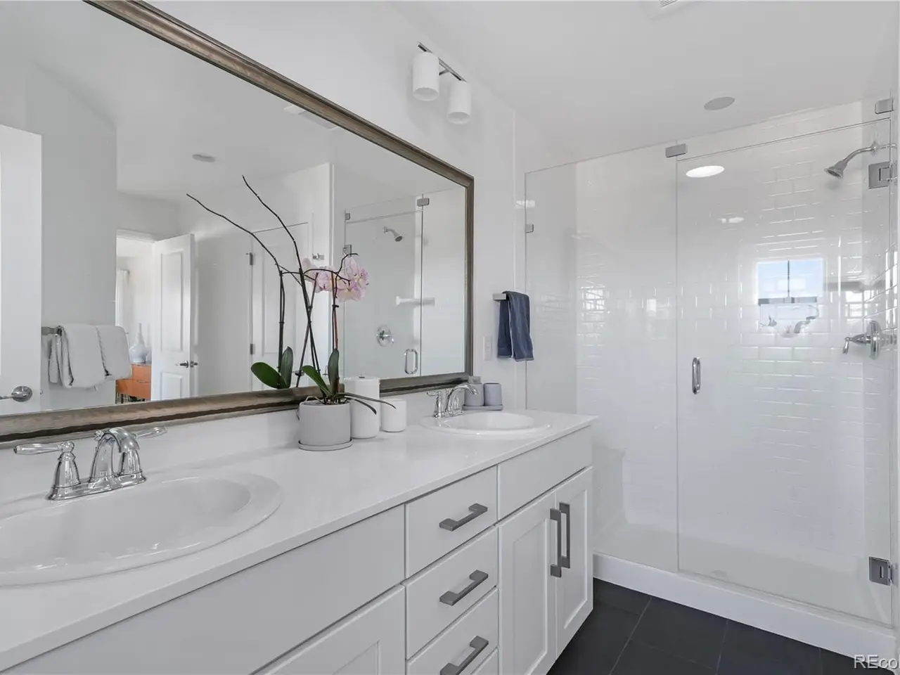 Spa-like bathroom with dual sinks