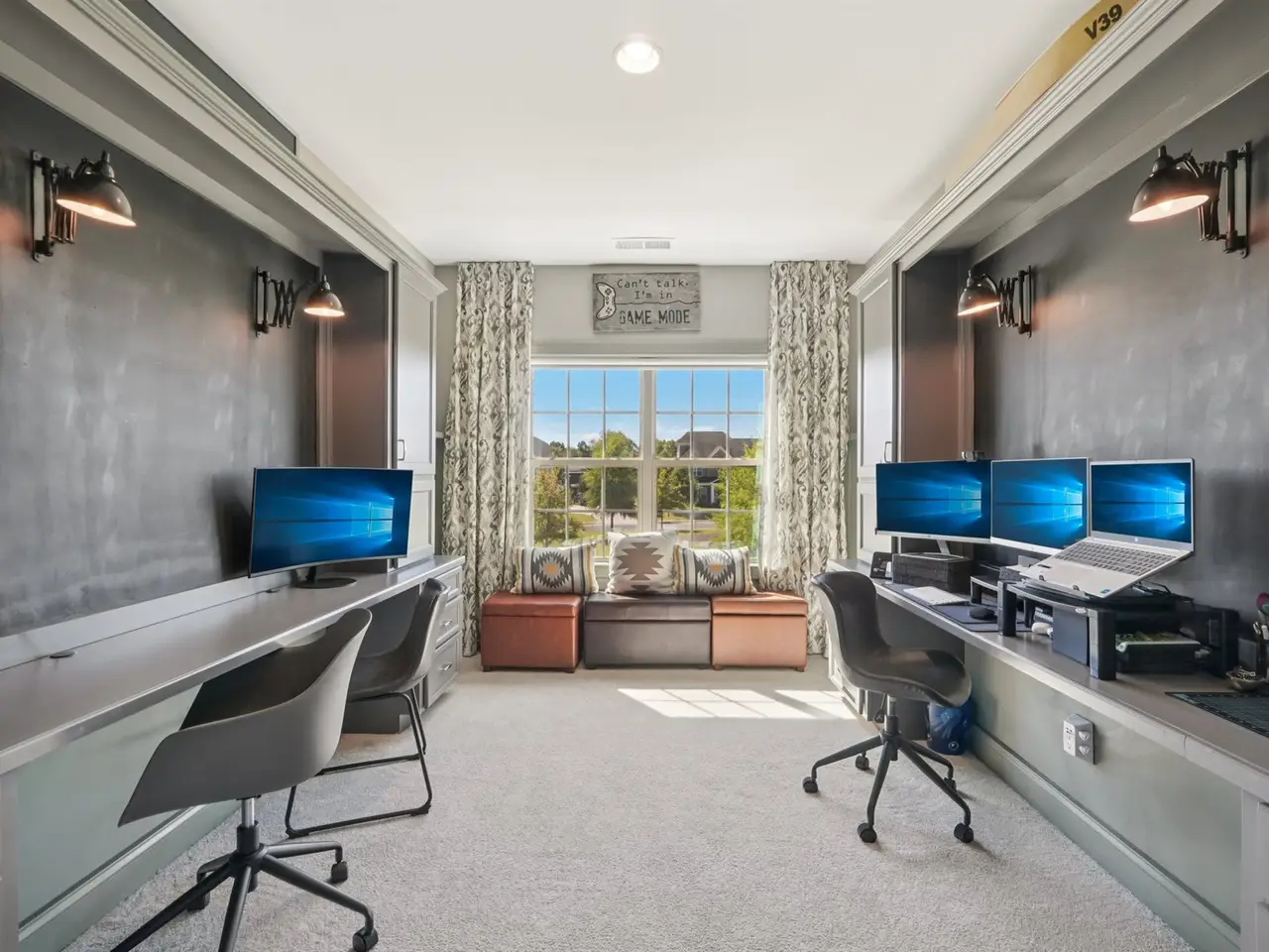 Welcome your Weddington estate home that defines luxury living. This former model home offers an unparalleled combination of elegance, comfort, and state-of-the-art features. Stunning curb appeal, complete with a welcoming front porch and an oversized 3-car side-load garage, set against the backdrop of a wooded and expansive private backyard. Grand foyer with soaring 10-foot ceilings, exquisite millwork, and hardwood floors. Formal dining room and living room. Family room with gas fireplace and coffered ceilings leads to the heart of the home; a gourmet kitchen, a chef's dream featuring a massive island, tons of countertop space and extensive cabinet storage, stainless steel appliances, a farmhouse sink, walk-in pantry, drop zone with cubbies and a private office nook. Direct access to the covered patio and firepit - relaxing outdoor living! Guest br and full ba on main. Second floor features a luxurious primary suite; a true sanctuary, offering a spa-like en-suite bath, dual closets and direct access to laundry room. Plus+ a sitting area and balcony for your own private escape! All bedrooms are spacious and have their own bath. The massive bonus room, with its designer shiplap and surround sound, is perfect for a media room, recreation area, or workspace. Third floor recreation area is that perfect flex space- one more area that perfectly completes the ease and flow of this home. Garage with finished floor and tons of storage opportunity, full yard irrigation. As a former model home, this property is filled with high-end upgrades and thoughtful details that set it apart. From designer lighting to custom built-ins, every aspect of this home has been meticulously curated to offer the pinnacle of modern luxury. Enjoy the perfect balance of serene, private living while being just minutes from highly rated public schools, vibrant shopping and dining of Waverly, Rea Farms, and Blakeney. This is more than a home; it's a lifestyle.