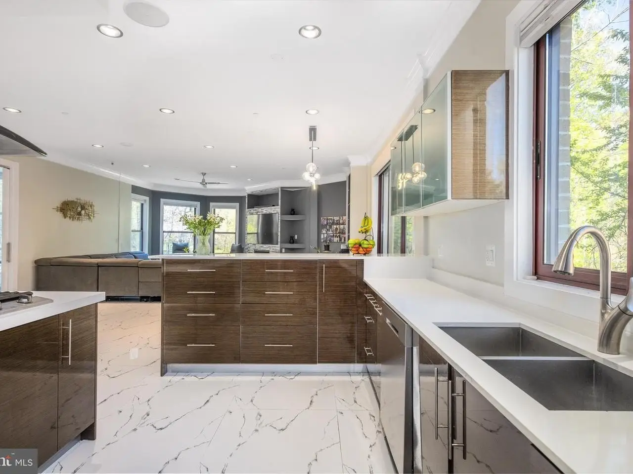 Designed by a seasoned architect home owner as a personal legacy estate, this 6-bedroom, 7 full + 2 half bath residential tour de force spans approximately 13,000 sq ft of masterfully curated interiors, nestled within one of Potomac's most prestigious enclaves. Inspired by the beauty of French chateau and elevated with sleek, modern innovations, this home blends old-world elegance with cutting-edge materials sourced from across the globe. Step through a dramatic Acasa security steel door entry into a vast tiled foyer and soaring 2-story central Living Room, crowned by an imported three-tiered artisan glass chandelier. From there, experience airy, sun-drenched interiors defined by walls of glass, steel beam construction, and striking floating glass staircases. From solid-core Canadian doors to premium bamboo flooring, handcrafted Turkish tiles, and porcelain accents, every finish tells a story. The result is a seamless flow of light and energy throughout the home-perfectly complementing the estate's bold, contemporary vision. Designed for effortless grandeur, the formal Dining Room offers the perfect backdrop for elegant entertaining on any scale. The open-concept Kitchen, featuring custom cabinetry, double sinks, two large pantries, center island, and sleek finishes, flows into a spacious Family Room with a gas fireplace. Two main-level Bedrooms include a private Guest Suite with its own entrance, living space, full bath, driveway access, and separate 2-car Garage-ideal for multi-generational living or long-term guests. A private, coded-entry Office, additional Powder Room, and panoramic views of lush grounds complete the level. A showstopping architectural centerpiece, the upper level features a glass-enclosed Gallery anchored by the majestic three-tiered glass chandelier, overlooking the open Living Room below. This unique construction frames the upstairs in light and openness. The Primary Suite is a sanctuary of refined tranquility, featuring spa-caliber finishes, expansive dressing areas, and serene views. Three additional spacious Bedrooms each enjoy ensuite baths and generous storage. A versatile Flex Room- perfect for a wellness space, prayer room or additional office, a stunning Family Lounge framed by walls of windows with panoramic views, and a fully appointed Laundry round out this floor. The spectacular above-ground lower level is wrapped in a dramatic wall of 3-story high windows that flood the interior with natural light and showcase breathtaking views of the rear grounds. A sculptural glass staircase connects the lower level to the main floor above while serving as a visual statement piece. This is a true entertainer's haven, complete with a quartz and Melamine designer Bar, three beverage centers, dishwasher, sink, mounted TV, and custom built-ins. The adjacent private Theater boasts tiered recliners, projection screen, and immersive surround sound. A bonus room with Full Bath access and large storage spaces adds flexibility for guests or work-from-home needs. Outside, enjoy the ultimate in al fresco living. A steel-roof covered patio and full outdoor kitchen with granite countertops, dual refrigerators, and professional hardscaping are framed by lush, landscaped grounds-ideal for intimate gatherings or large-scale celebrations. Additional features include a 5-zone HVAC system, two commercial-grade 100+ gal water heaters, three fireplaces, and rare access to public water and sewer. Infrastructure for a future elevator is already in place. Garage parking for three completes this extraordinary offering. Every inch of this home has been meticulously crafted to deliver the pinnacle of elegance, privacy, and innovation. This is not just a residence-it is a bold expression of luxury living at its finest. Nothing compares!