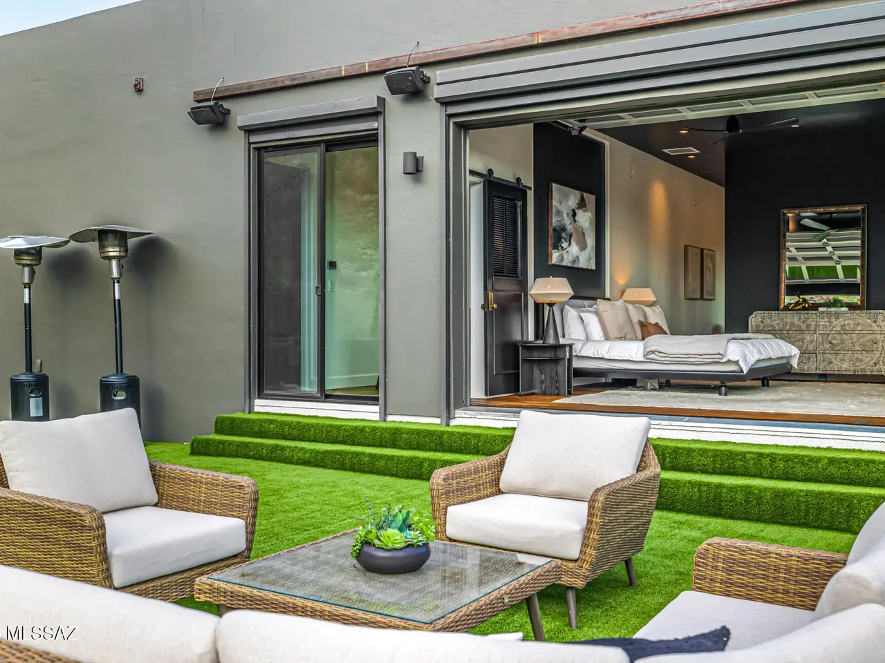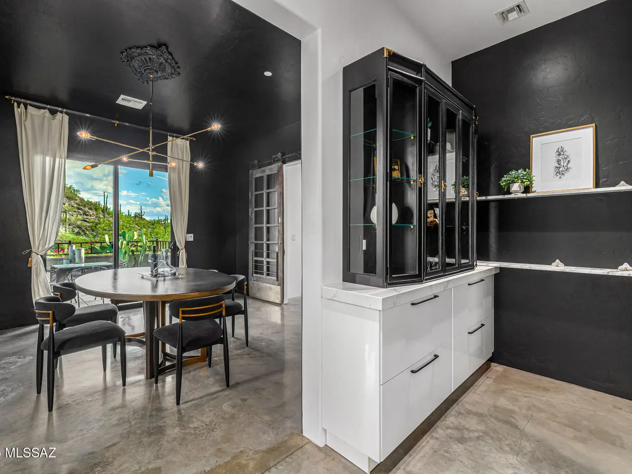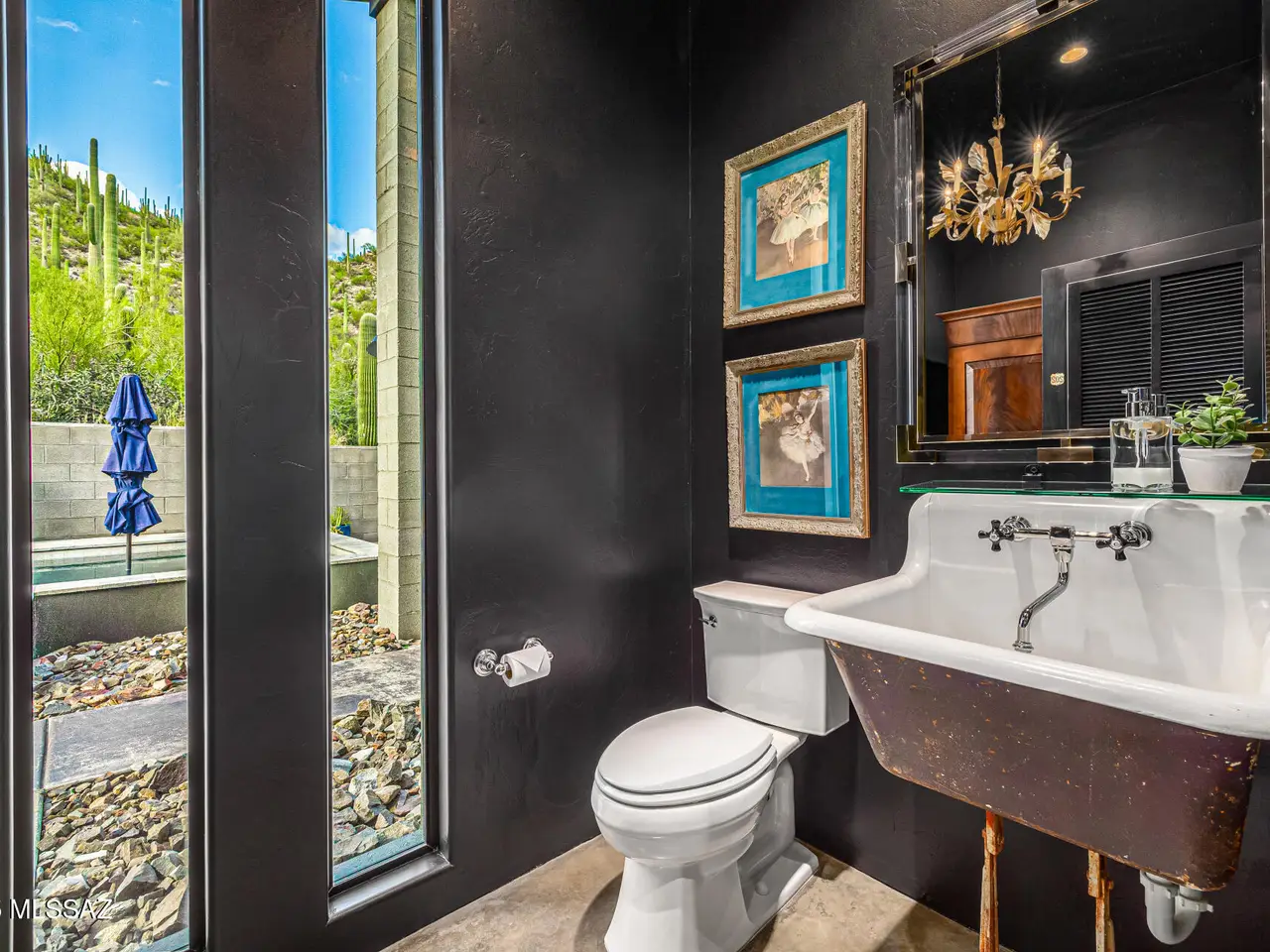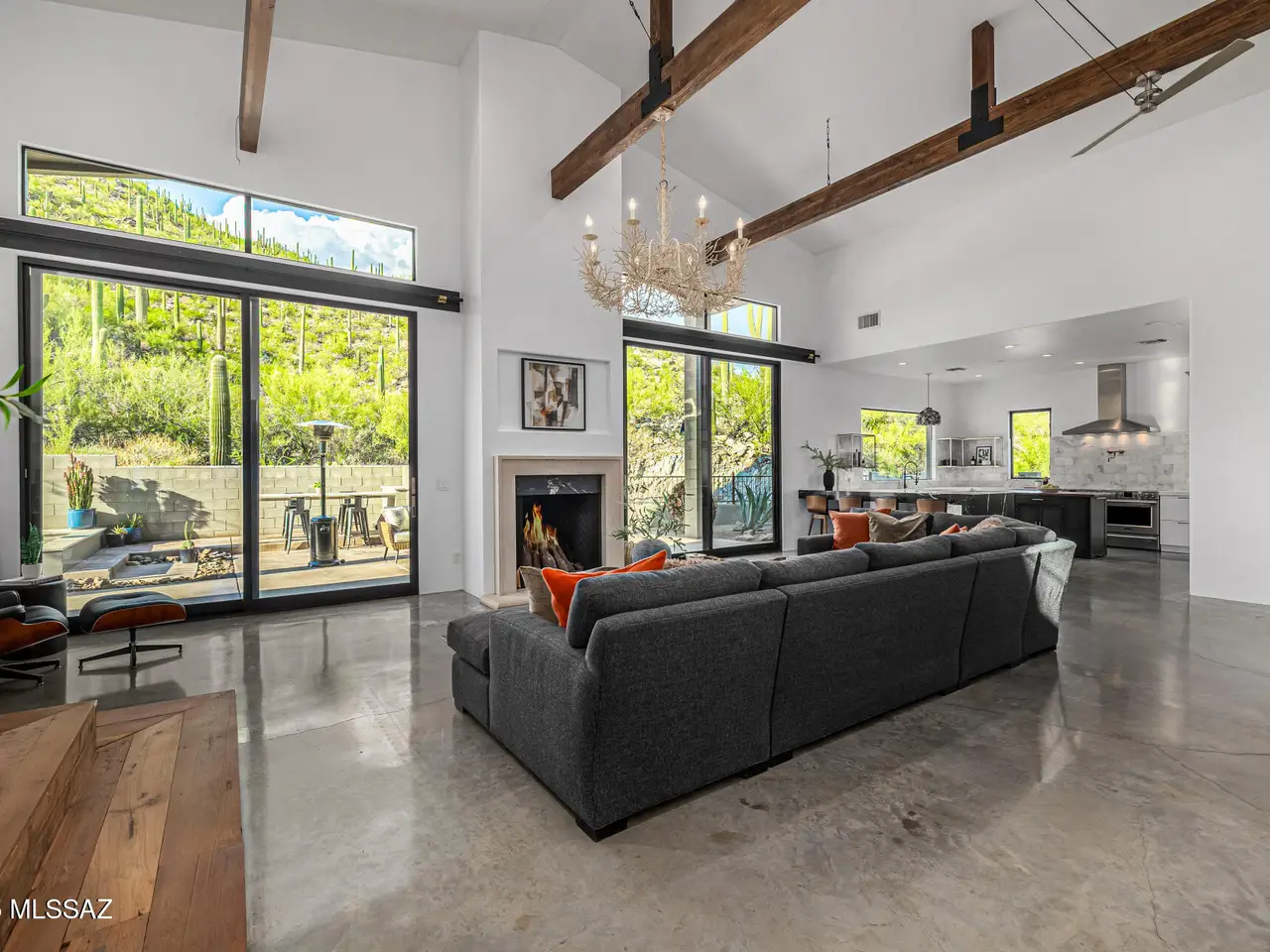 Nestled deep in the scenic Tortolita Mountains, this fully custom-built 2018 estate combines refined design with extensive upgrades inside and out. The property welcomes you with an asphalt driveway, elegant paver accents, and professionally landscaped grounds featuring outdoor lighting, solar lamps, a decorative fountain, and a custom-finished front entry. All the doors used in the home were from the historic Hotel Hidalgo! The roof has been resealed and the exteriors freshly repainted. Enjoy resort-style outdoor living with a sparkling pool (new heater), a mesquite-mantle fireplace with a custom screen, propane starter, built-in barbecue mechanics, and decorative fencing. Set against a backdrop of untouched desert beauty, the estate offers breathtaking 360-degree panoramic views of Tortolita Mountains. Expansive windows and outdoor living spaces capture glowing sunrises, dramatic sunsets, and sparkling city lights after dark. Natural desert wildlife surrounds the property, creating a private sanctuary with a front-row seat to the beauty of the Sonoran Desert. Inside, the upgrades continue with quartz kitchen countertops, a waterfall island, refinished cabinetry and hutch, and updated hardware and lighting. The great room showcases a propane fireplace setup with custom logs, while electrical dimmers and halogen bulbs create ambiance throughout. Additional features include refinished teak entry doors with glass panels, repainted interior doors and ceilings, ceiling fans in all bedrooms, a staircase runner, and polished concrete floors. Comfort is maximized with mini-splits in the master and first-floor bedrooms, as well as Tucson rolling shutter blinds in every bedroom plus electronic rolling shutter for the master suite's large glass doors and the second-floor landing. Perfectly designed for entertaining, the home is wired for interior and exterior sound, blending luxury, function, and style at every turn. This is a true desert sanctuary, offering both sophistication and serenity.