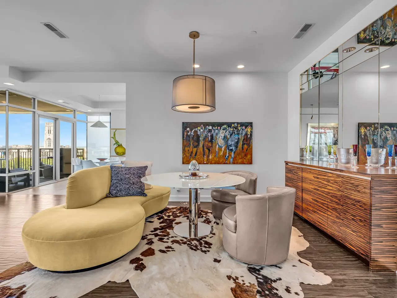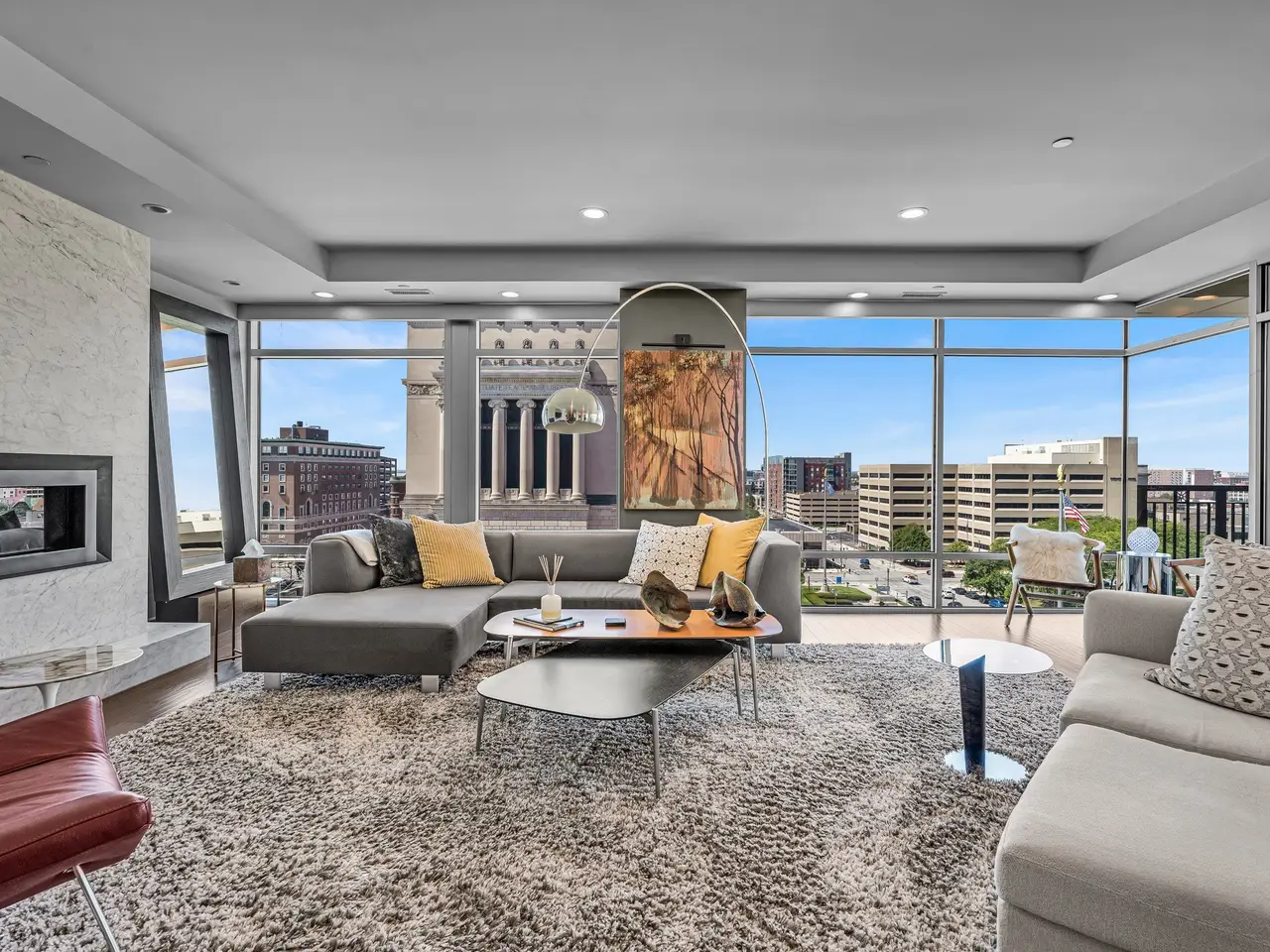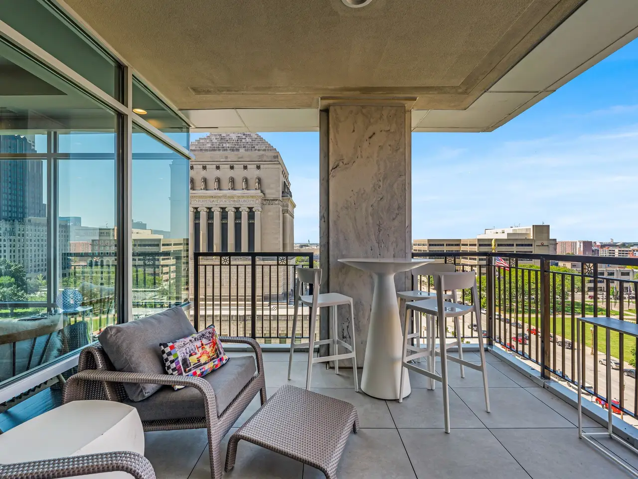 THE premier location in downtown Indy combined with unmatched expansive views makes this a MUST see property. Three bedrooms and two and 1/2 baths sets the stage for sophisticated living at its finest. Your journey begins: exit the secure elevator on the 8th floor, walk down the well decorated (and quiet) hallway to your oasis in the sky. As you enter this magnificent unit, you are first awed by the incredible views! You then turn your focus to the tastefully done lighting and wall mount display racks (art lover REJOICE!!!). The living/dining/breakfast areas are your personal canvas for creating distinct zones for relaxation and entertainment! The kitchen offers true functionality for all your culinary creations with an oversized island with seating for four. Step outside to the northwest facing patio to enjoy endless sunsets, incredible downtown views and oh btw - there is NO better view of the 500 festival parade that literally travels right below your feet! Three well appointed and well designed bedrooms are the perfect retreat for family and guests alike. The primary suite (perfectly located within the unit) features a huge walk-in closet, custom wall coverings and well positioned lighting to ensure peace and tranquility when it's time to retire. The primary bathroom is a spa lovers dream with dual sinks, a large walk-in shower and an oversized tub that is that is just what the doctor ordered after a great workout or long day at the office. The two guest bedrooms (one features a Murphy bed) share an J&J bathroom with dual sinks, oversized walk-in shower and a water closet. The art-deco 1/2 bath is ideally located for easy access. The utility/laundry room features plenty of space for full sized w/d units. Two assigned parking spots - ideally located right next to the pedestrian exit of the garage. This one of a kind property truly offers the best of all worlds. Located literally steps from Mass Ave and an easy walk to all that downtown offers, it is a MUST see.