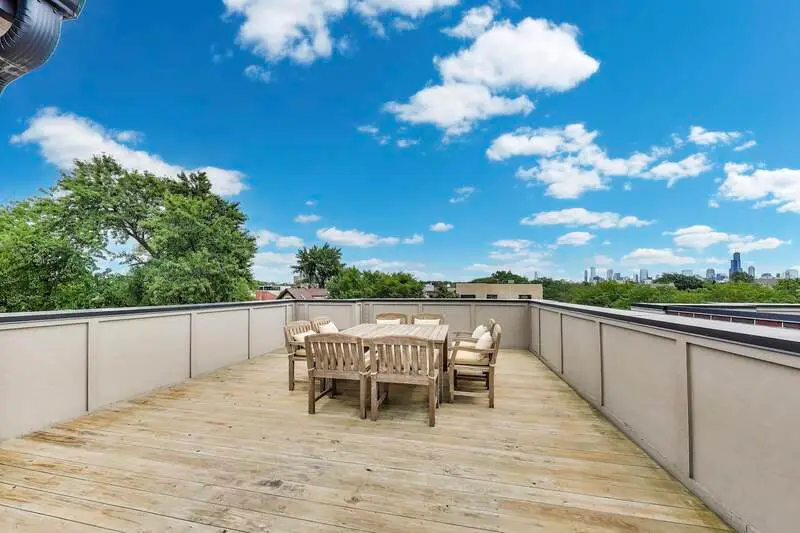Welcome to this stunning oversized 5-bedroom, 4.5-bath residence that blends luxury, comfort, and convenience in one of Chicago's most sought-after neighborhoods. Just steps from parks, schools, shopping, dining, and transportation, this home puts the best of city living right at your door. Inside, sophistication meets functionality: a chef's kitchen with top-grade appliances, quartz countertops, and timeless finishes anchors the home, while hardwood floors, detailed millwork, and custom window treatments create warmth throughout. Each of the three upstairs bedrooms comes with its own ensuite bath-a rare find in city living. Designed for entertaining, the home offers multiple indoor and outdoor spaces: gather around two cozy fireplaces inside or enjoy the outdoor fireplace on your private patio. Host summer barbecues on the garage-top deck or take in sweeping views of Downtown Chicago from your rooftop oasis. Built by one of Chicago's premier luxury builders, this residence is packed with thoughtful recent upgrades, including Sonos surround sound, security cameras, and a coveted 2-car garage. It lives better than new construction-and it's truly move-in ready. If you've been searching for a home that balances sophistication, comfort, and location-your Wicker Park dream home awaits.
