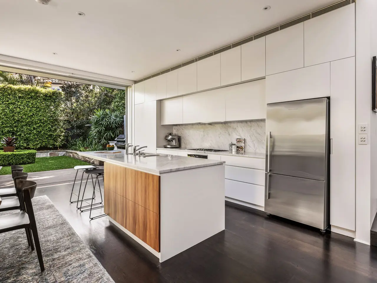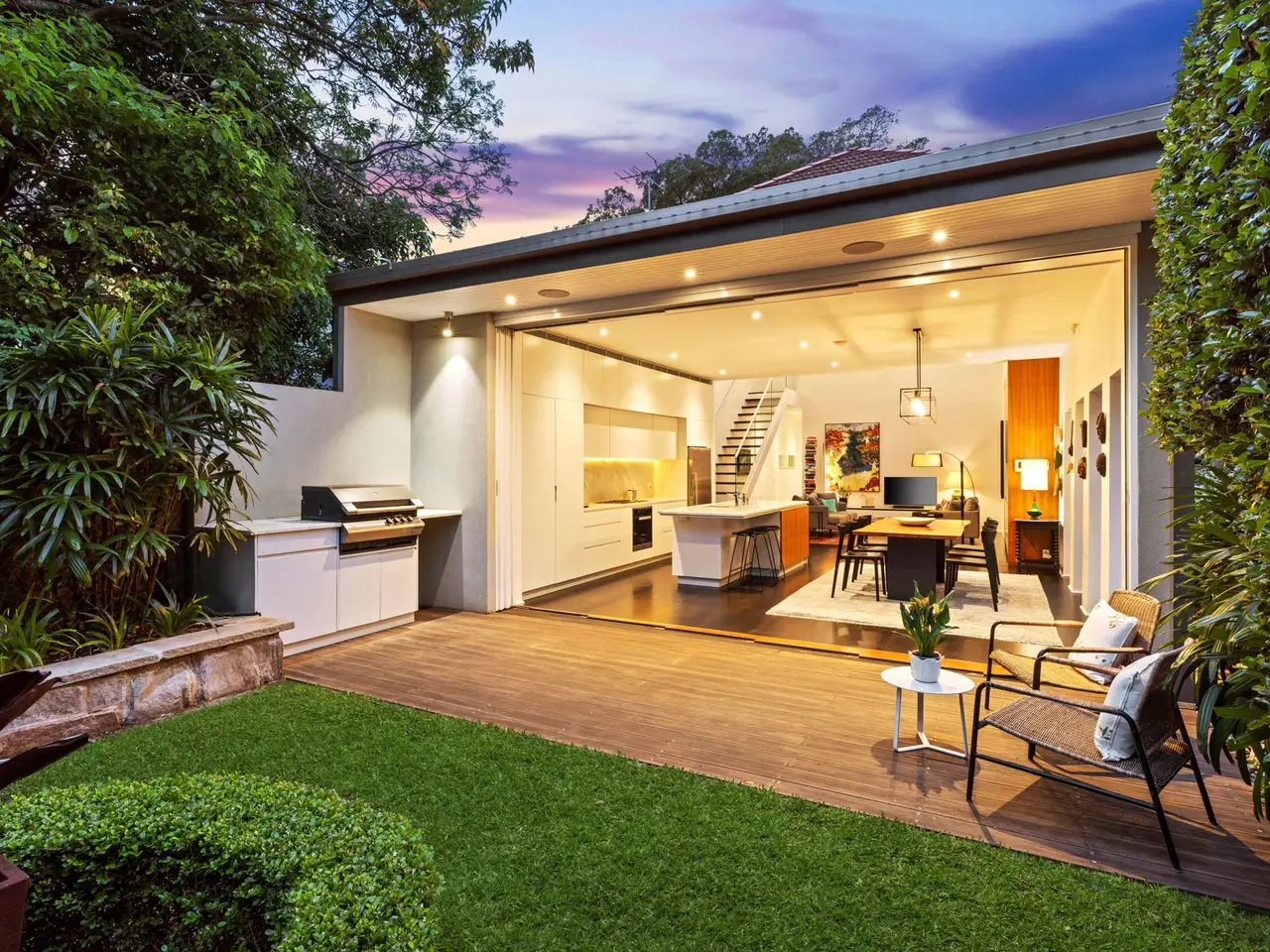 Tucked away in an exclusive cul-de-sac between Queen Street village and Cooper Park, this chic Victorian terrace offers the perfect blend of timeless elegance and laidback luxury with effortless indoor/outdoor transitions. Showcasing exquisite interiors with bespoke custom finishes and inclusions, it reveals a select palette of textural materials with European Oak, rich American Walnut and marble accents complemented by soaring cathedral ceilings and clerestory windows drawing the sunshine in. A gourmet stone kitchen with Miele appliances serves as the social heart of the home, while stunning living and dining areas transition seamlessly to an entertainers' deck with an integrated BBQ and a manicured garden oasis awash with sunshine. Accommodation comprises four well-sized bedrooms, three of which are on the lower level and the designer upper-level master suite features a walk-in wardrobe/dressing area and a deluxe Parisi appointed ensuite. Further highlights include a study adjoining the master or ideal nursery, zoned ducted air conditioning, designer lighting and extensive custom joinery. Summary of Features: - Expansive open plan living with soaring cathedral ceilings - Spacious dining enjoys a seamless transition to outdoors - Entertainers' sun deck with Ziegler & Brown integrated BBQ - Wonderfully private with landscaped child-friendly garden - Sleek stone island kitchen, premium Miele appliances - Four double bedrooms appointed with built-in wardrobes - Master suite with cathedral ceilings and dressing area - The master adjoins a separate study or potential nursery - Zoned ducted air conditioning, bespoke designer lighting - Full height pivot door, wall-to-wall glass stacker doors - Parisi-appointed marble bathrooms, plush carpet bedrooms - American walnut and marble joinery, extensive storage - 7.5m frontage and 14.3m2 underhouse storage - Clerestory windows, engineered European Oak flooring - Security intercom access, fully irrigated gardens, watering system and alarm - Peaceful cul-de-sac, plenty of and easy on street parking available - 300m to the green expanse of Cooper Park via pathway - Minutes to Queen Street village, cosmopolitan Double Bay